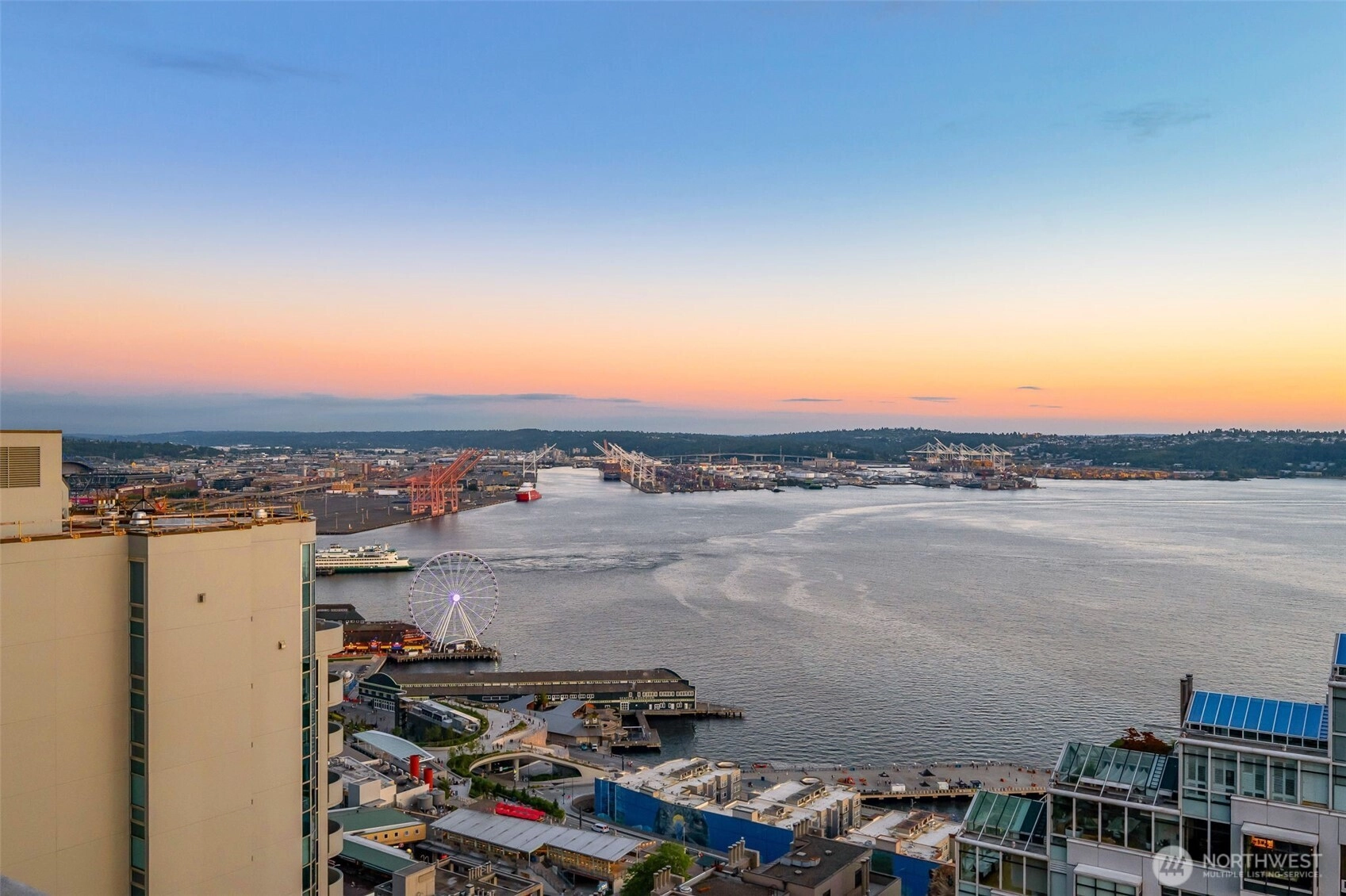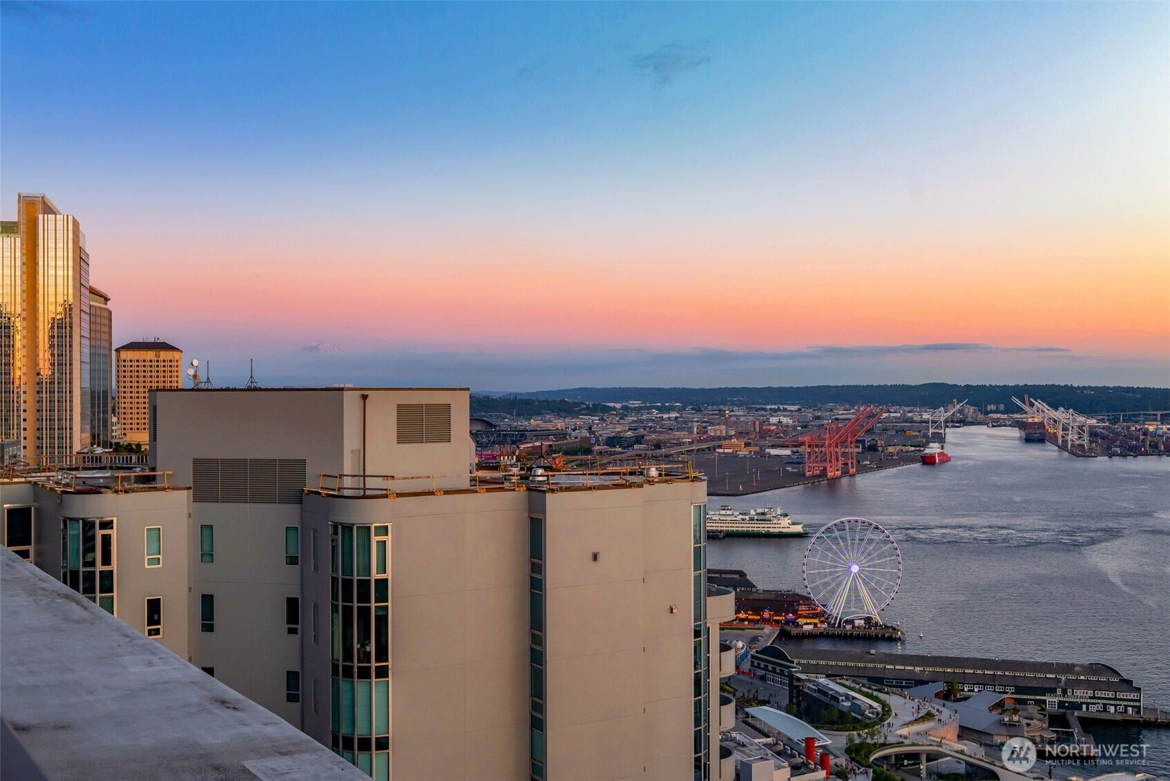 Soak in sweeping views of Puget Sound, the Olympics, & downtown Seattle from every room in this stunning Belltown home. Recently reimagined with a custom renovation that nails every detail—from the expansive open layout to the chef-worthy kitchen. Primary suite is a dream with spa-inspired bath & massive walk-in closet. Remote-controlled shades, built-in entertainment bar with wine fridge & flexible bonus nook perfect for desk or extra storage. Two rare parking spaces & storage unit included. View balcony. Luxe building amenities: rooftop deck with panoramic views, full gym & spa, multiple lounges, business center, wine storage & tasting room, & attentive 24-hour concierge service. Walk to world-class dining, waterfront & Pike Place Market