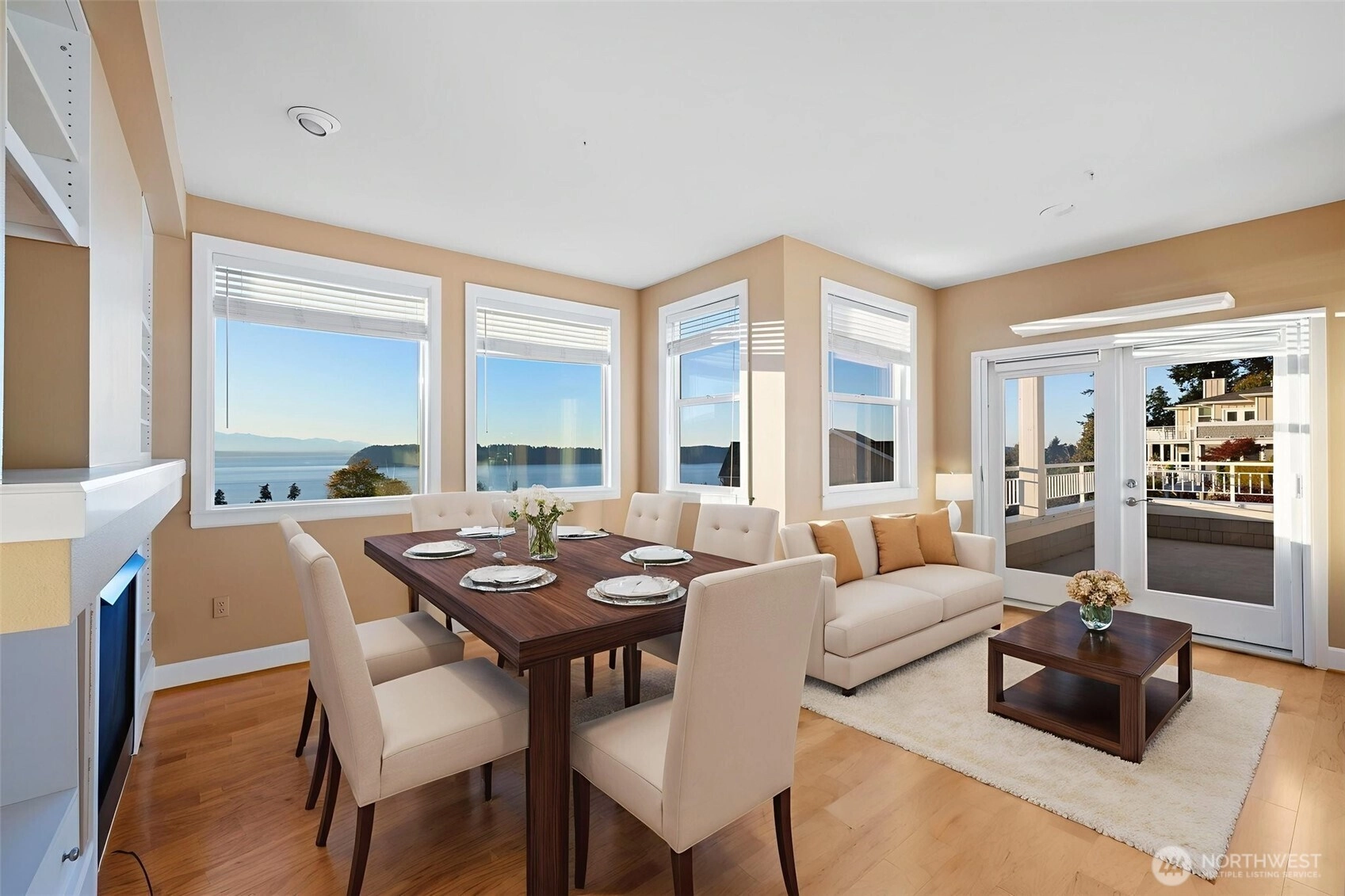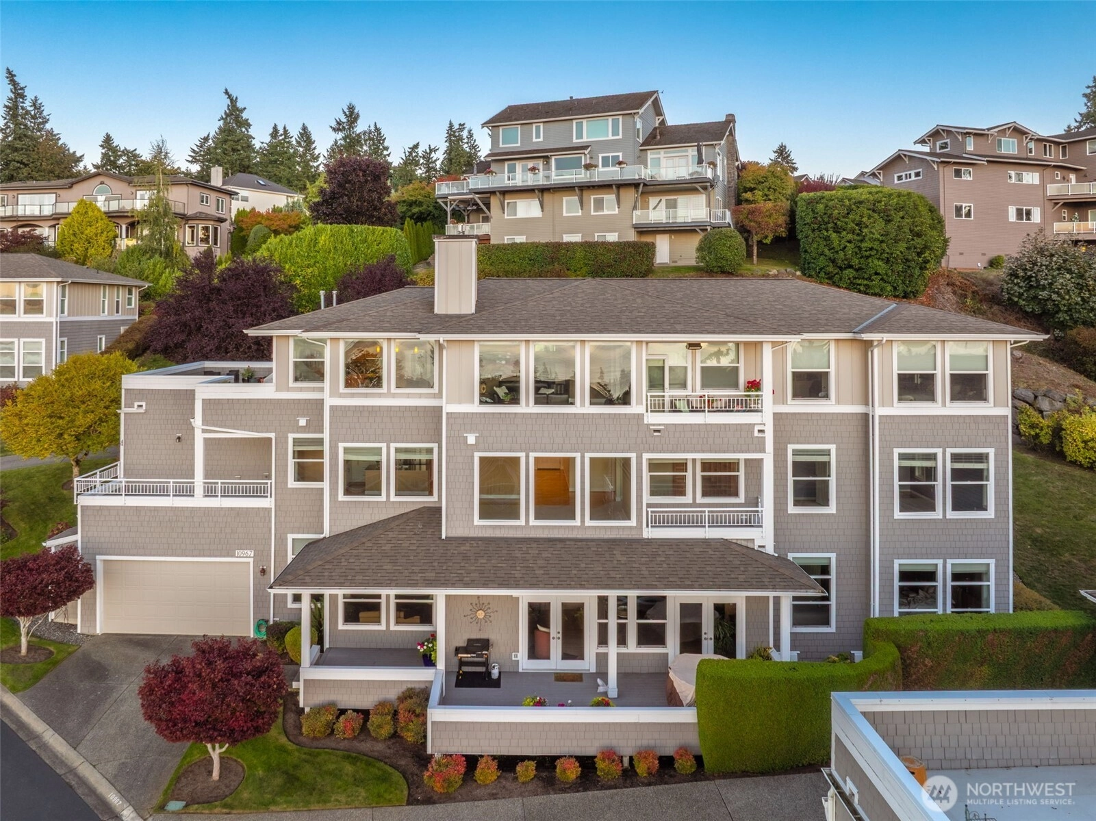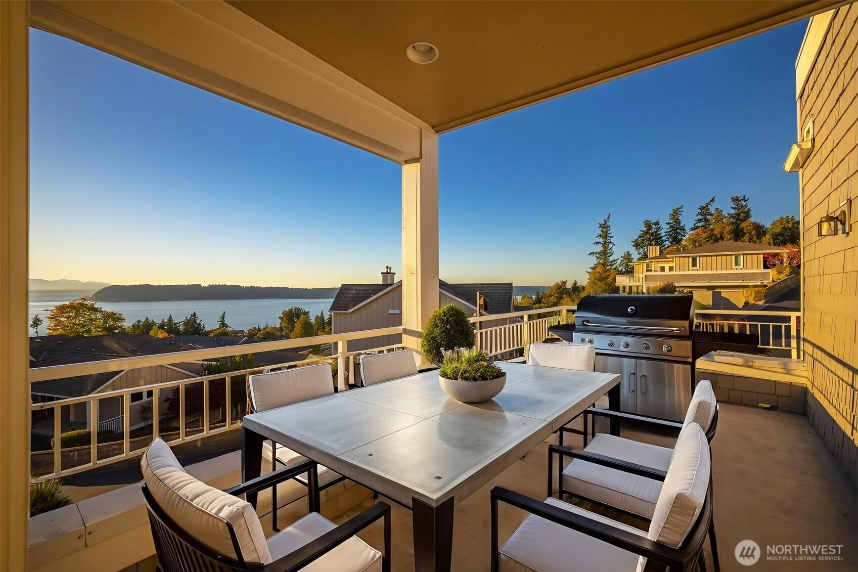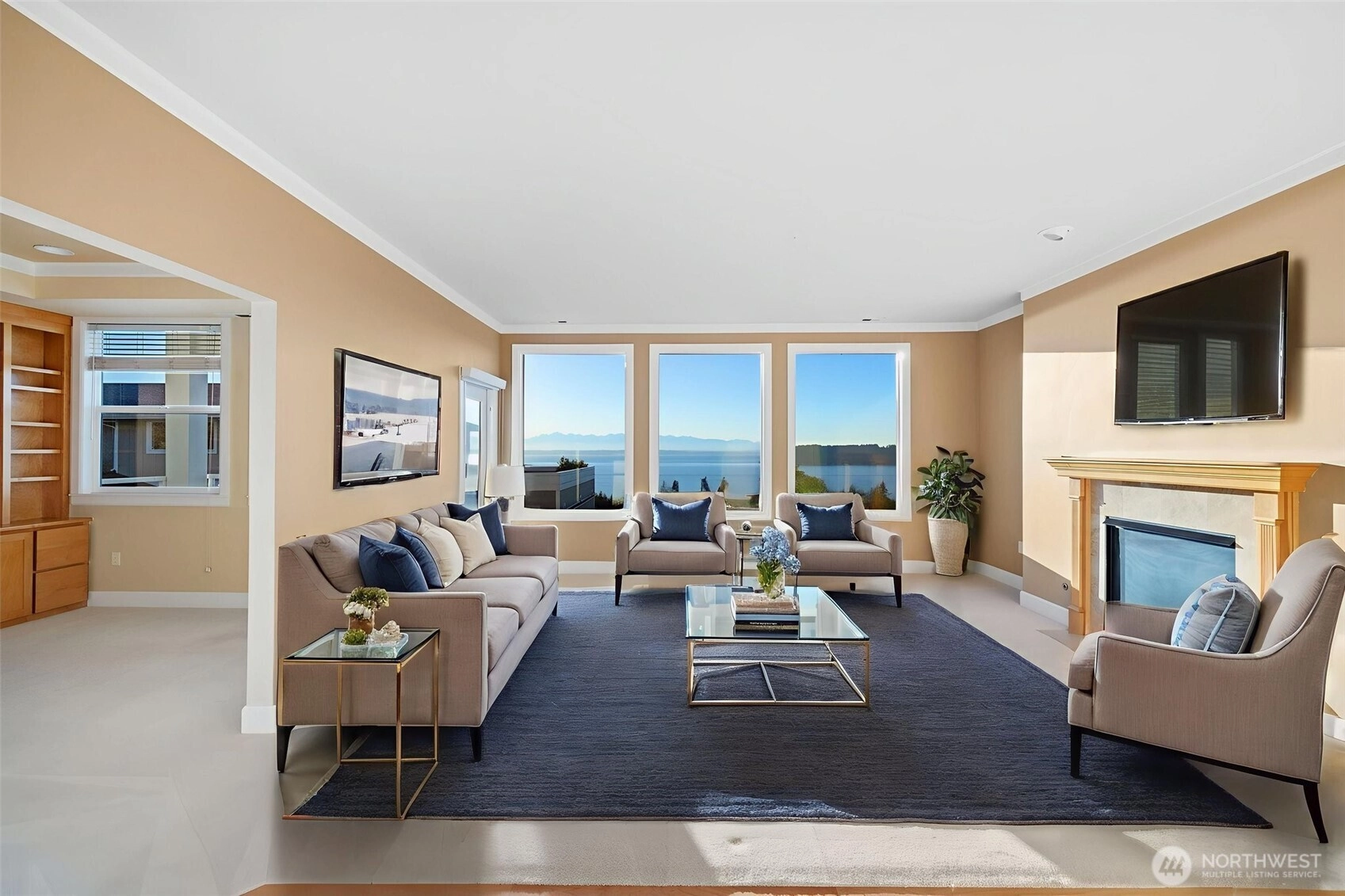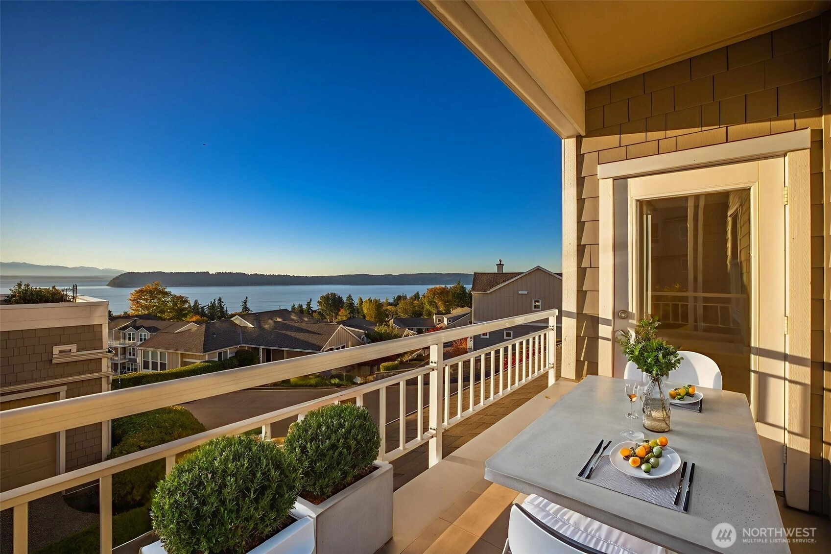 Harbour Pointe Stunner with Panoramic Views of Puget Sound, Olympics & Whidbey Island! This one-level Villa Monte townhome offers 2133 sq ft w/ 2 spacious bedrooms, 2.5 baths, a bonus room that easily converts to a 3rd bdrm & office/den. Gourmet kitchen w/ ss appl, qrtz counters, gas cooktop, dble ovens, soft close cabinets/drawers, large island & pantry. The family room & living room share a double-sided gas fireplace, primary suite has walk in closet & 5-piece bath. 2 private decks, both perfect for entertaining, or relaxing and taking in the unforgettable sunsets & maritime views. There is a 2-car garage, covered breezeway to the entry, and a side yard. Sunsets for days, whale watching, boats galore & all on one floor!