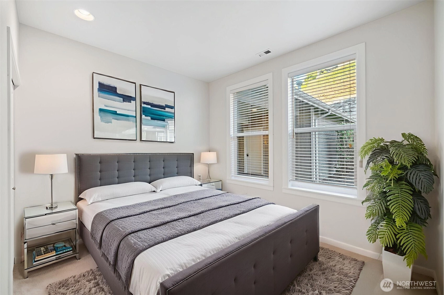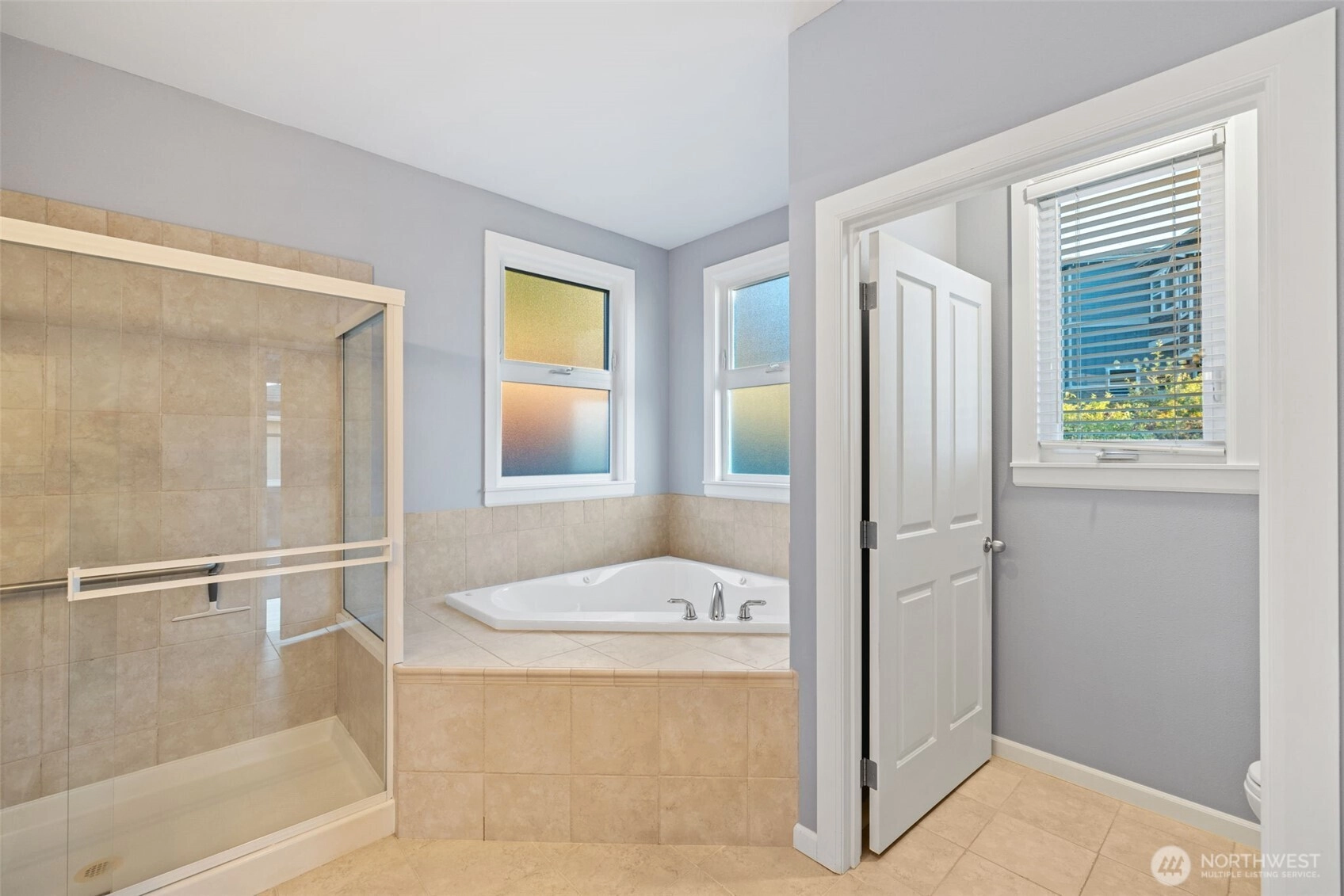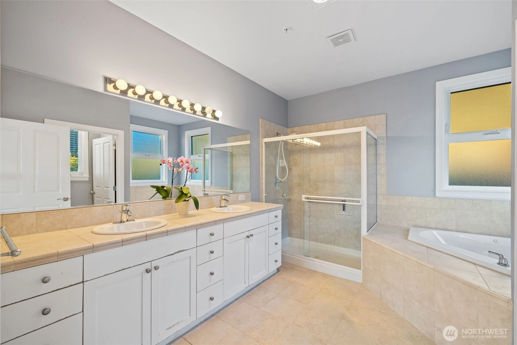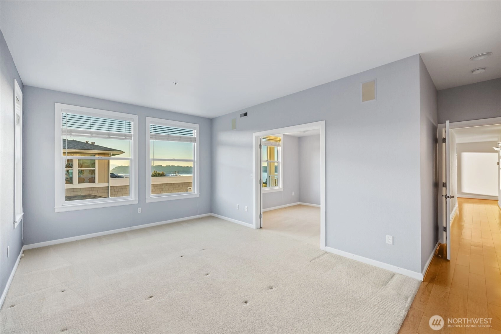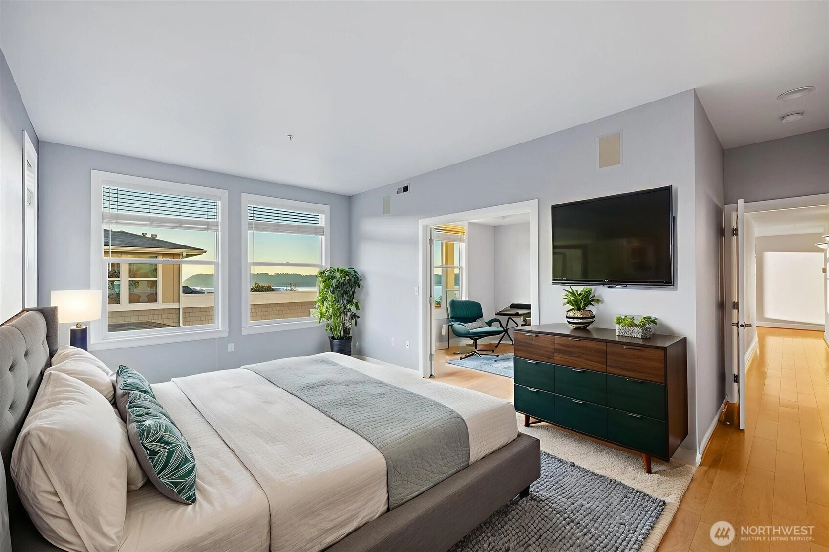 Harbour Pointe Stunner with Panoramic Views of Puget Sound, Olympics & Whidbey Island! This one-level Villa Monte townhome offers 2133 sq ft w/ 2 spacious bedrooms, 2.5 baths, a bonus room that easily converts to a 3rd bdrm & office/den. Gourmet kitchen w/ ss appl, qrtz counters, gas cooktop, dble ovens, soft close cabinets/drawers, large island & pantry. The family room & living room share a double-sided gas fireplace, primary suite has walk in closet & 5-piece bath. 2 private decks, both perfect for entertaining, or relaxing and taking in the unforgettable sunsets & maritime views. There is a 2-car garage, covered breezeway to the entry, and a side yard. Sunsets for days, whale watching, boats galore & all on one floor!
