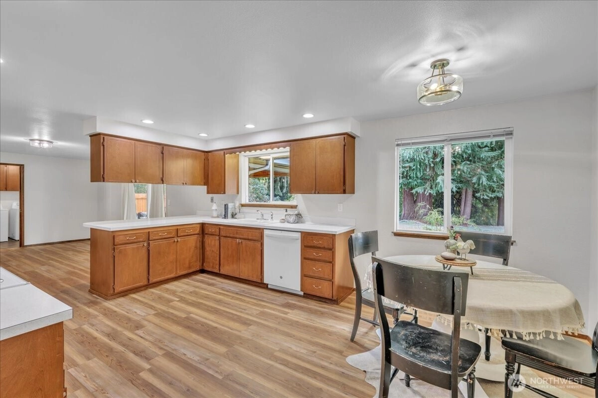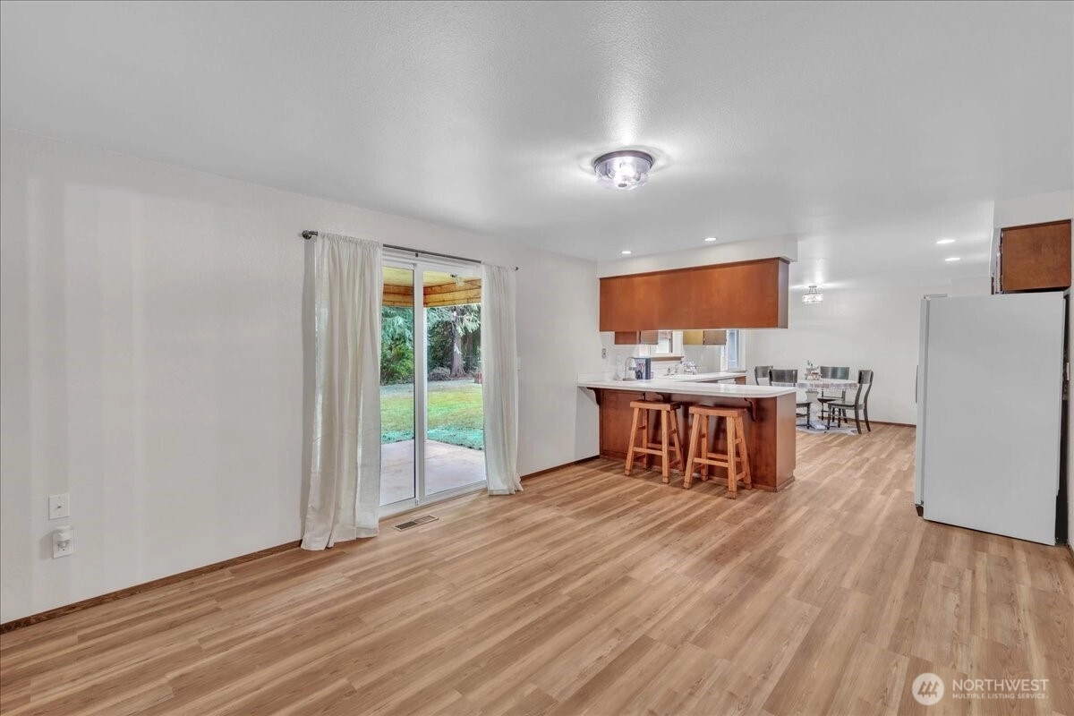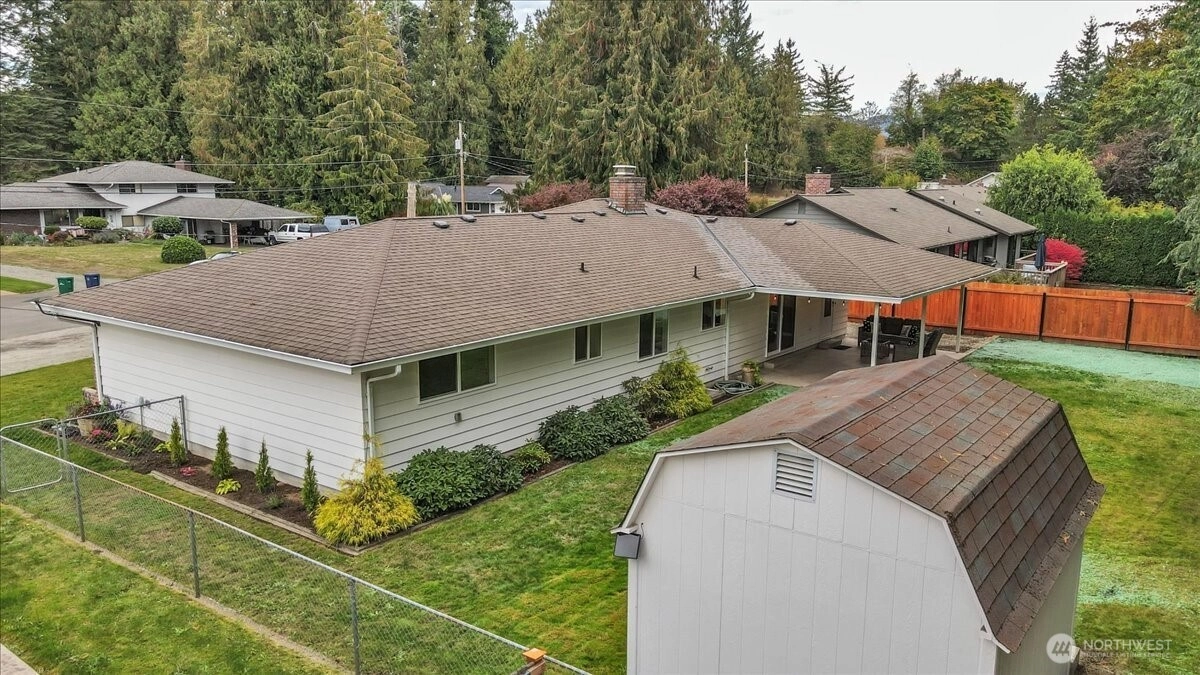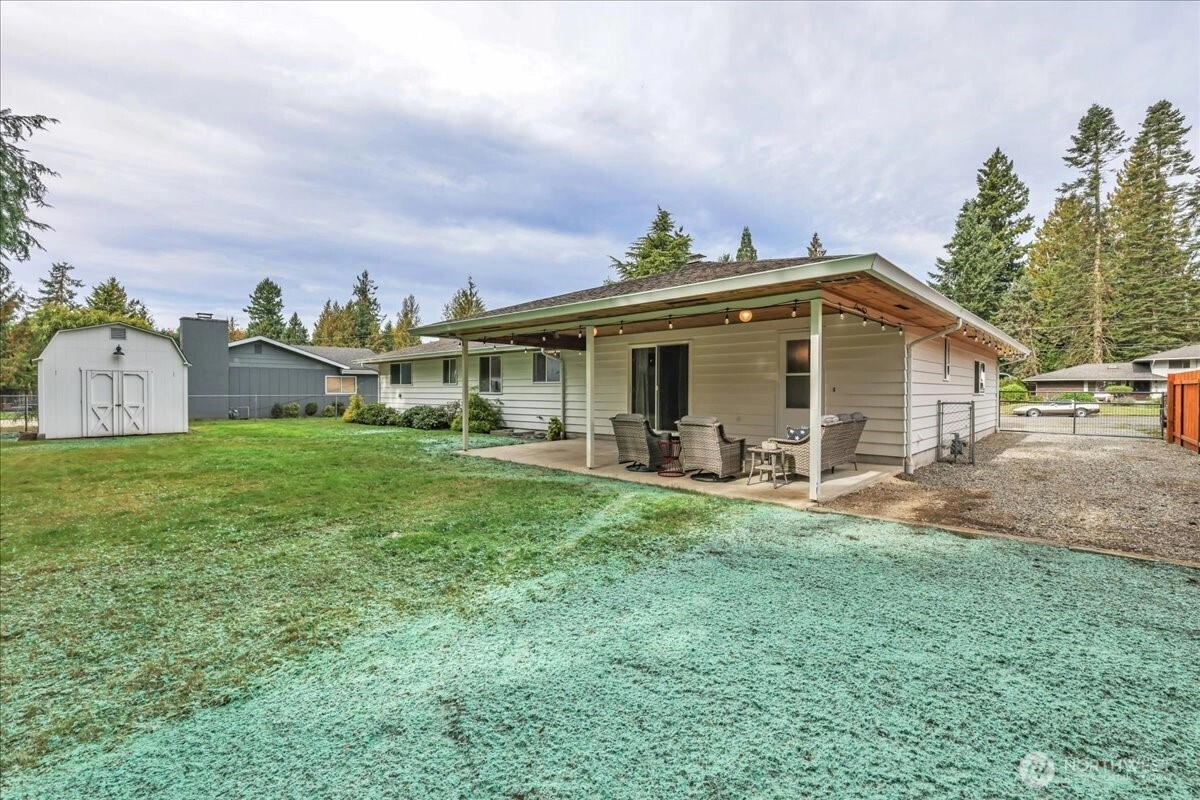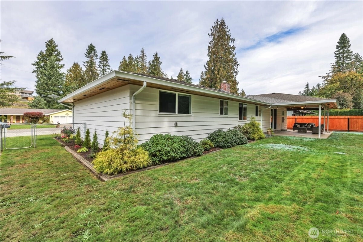 Superbly maintained 1,650 SF, 3-bedroom, 1.75-bath Glacier Vista rambler situated on a 14,400 SF lot backing to the White River corridor for added privacy. Spacious living room w/ brick fireplace & hardwood entry. Kitchen w/ abundant cabinet space, bar seating, luxury vinyl plank floors, eating area, & forest views. Sliding glass door leads to lgcovered back patio & maturely landscaped backyard. Full bath w/ oversized vanity. Laundry rm w/ adjacent 3/4 bath. Updated vinyl windows throughout. Architectural composition roof, forced-air gas furnace, front sprinkler system, & newer water heater. Detached garden shed w/ concrete floor for extra storage. Oversized 2-car garage. All in a desirable neighborhood near amenities & outdoor recreation.
