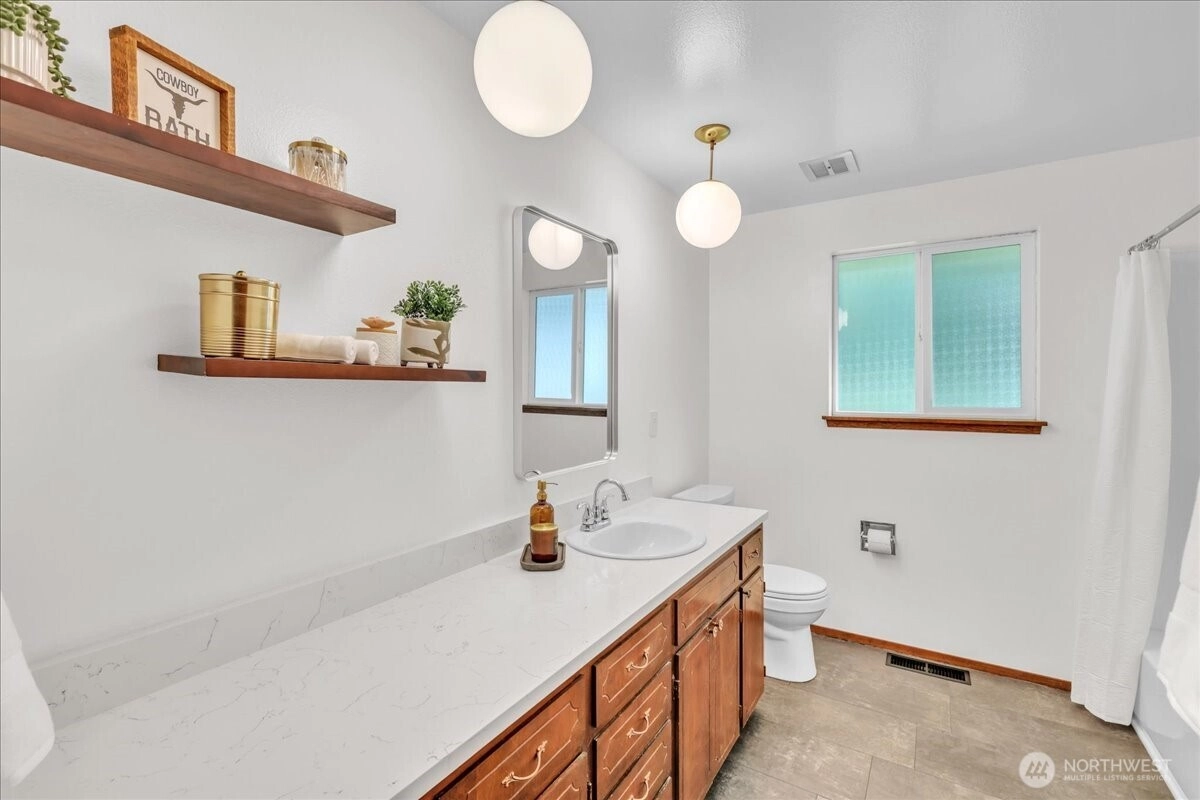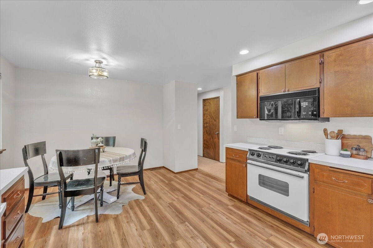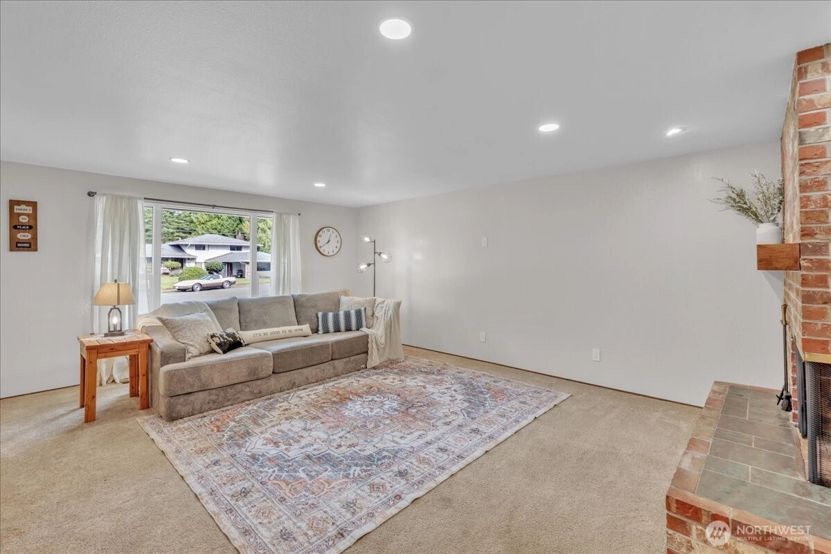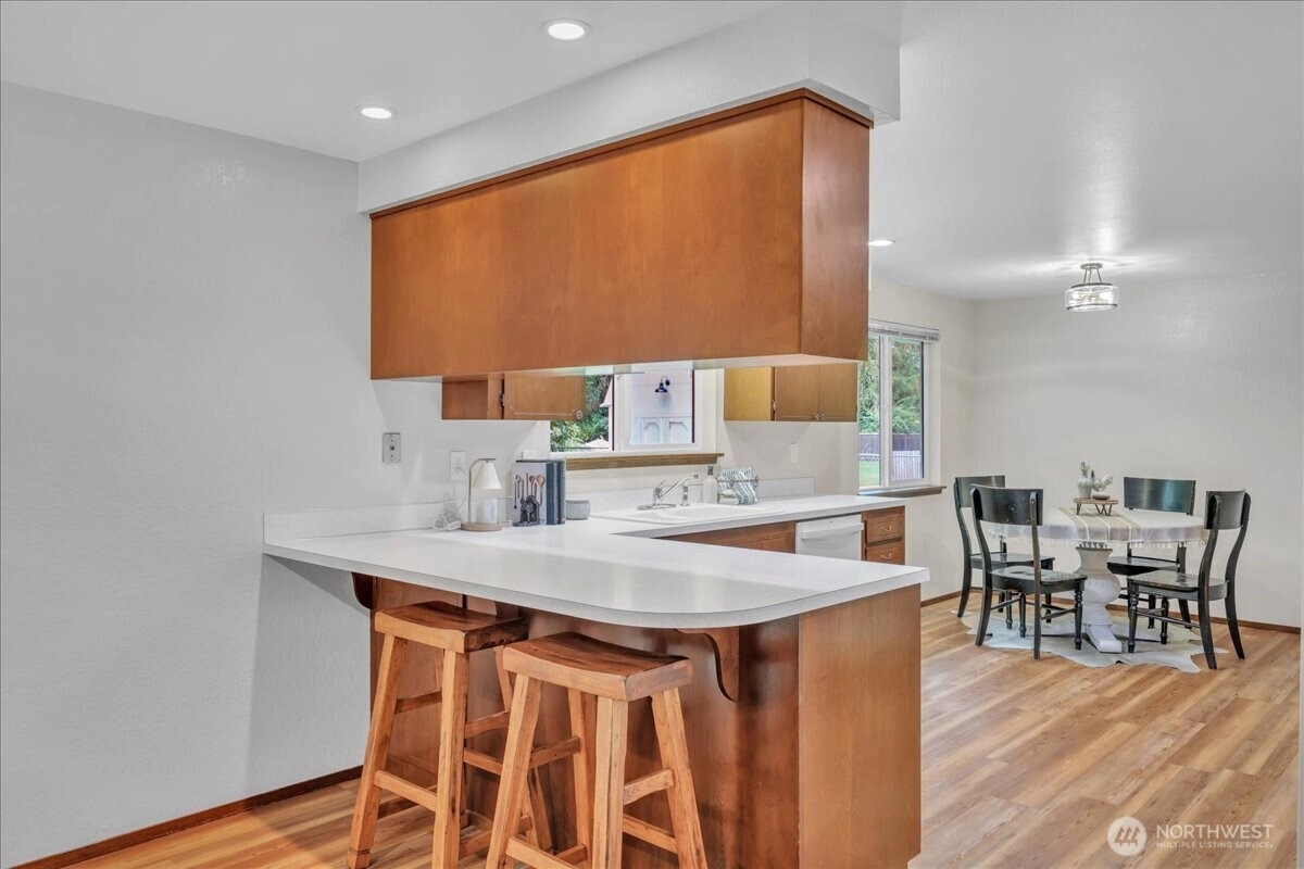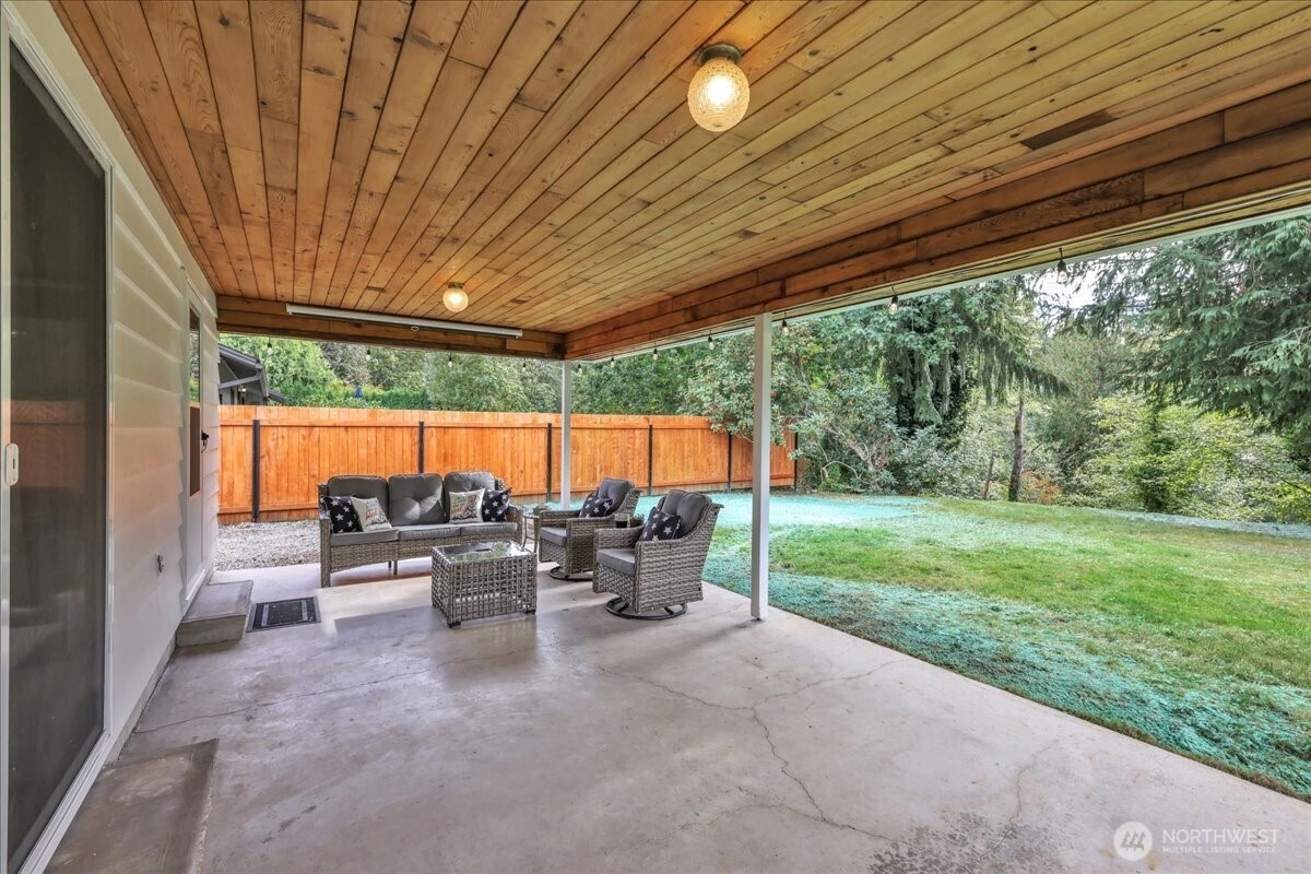 Superbly maintained 1,650 SF, 3-bedroom, 1.75-bath Glacier Vista rambler situated on a 14,400 SF lot backing to the White River corridor for added privacy. Spacious living room w/ brick fireplace & hardwood entry. Kitchen w/ abundant cabinet space, bar seating, luxury vinyl plank floors, eating area, & forest views. Sliding glass door leads to lgcovered back patio & maturely landscaped backyard. Full bath w/ oversized vanity. Laundry rm w/ adjacent 3/4 bath. Updated vinyl windows throughout. Architectural composition roof, forced-air gas furnace, front sprinkler system, & newer water heater. Detached garden shed w/ concrete floor for extra storage. Oversized 2-car garage. All in a desirable neighborhood near amenities & outdoor recreation.
