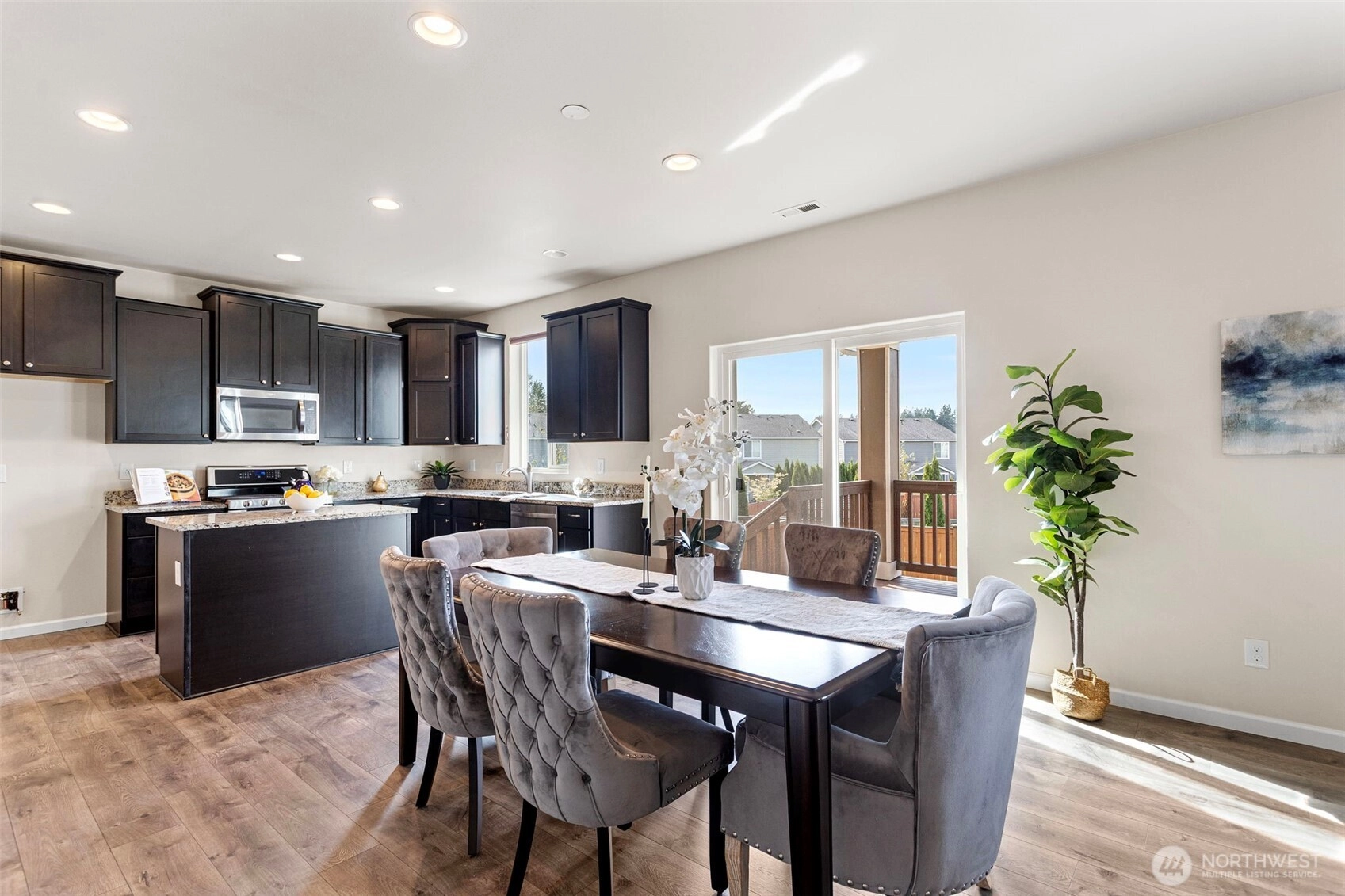 Step into this beautifully designed 5-bedroom, 3-bath home in Puyallup! Built in 2017, it offers the perfect blend of modern comfort and thoughtful design. The open floor plan flows effortlessly from the granite kitchen to the dining and living spaces—ideal for gatherings big or small. Retreat to your master suite with a walk-in closet and spa-like bath, or unwind in the spacious bonus room upstairs. Enjoy summer evenings in the fully fenced backyard—private, peaceful, and ready for your next barbecue!