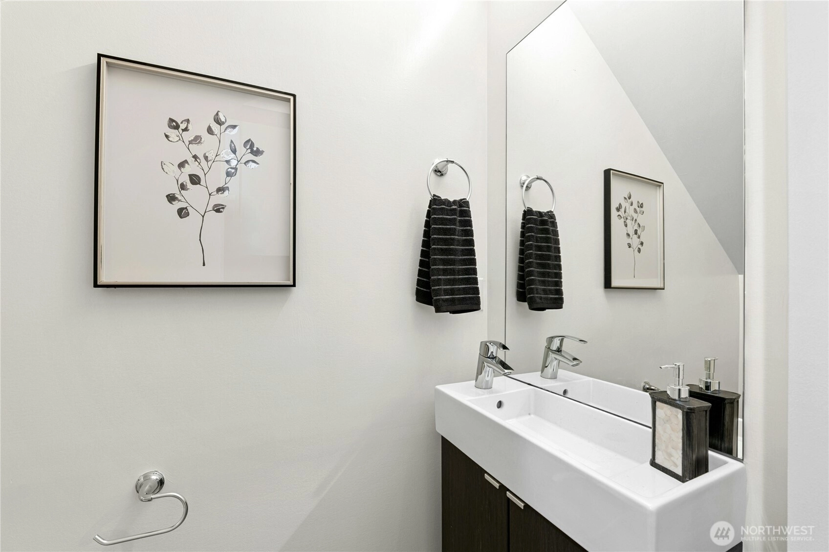 Modern townhome with thoughtful updates and light-filled spaces! The open kitchen with generous eating area flows into a spacious living room with basket weave linen curtains and deck. Upstairs, the primary bedroom, office/bedroom with built-in Italian desk / Murphy bed, and primary bath create a versatile top-floor suite. Lower level features a bedroom with deck, ¾ bath, and compact garage ideal for storage, projects, or exercise. Two rooftop decks offer space to entertain, garden, or unwind. Upgrades include engineered hardwood oak floors, rolling blinds that provide privacy without sacrificing natural light, fresh paint, and new carpet. Convenient location situated adjacent to downtown, Capitol Hill, stadiums, and I-90/I-5.