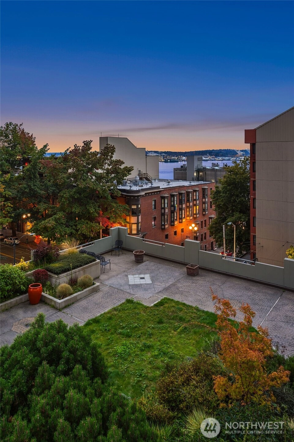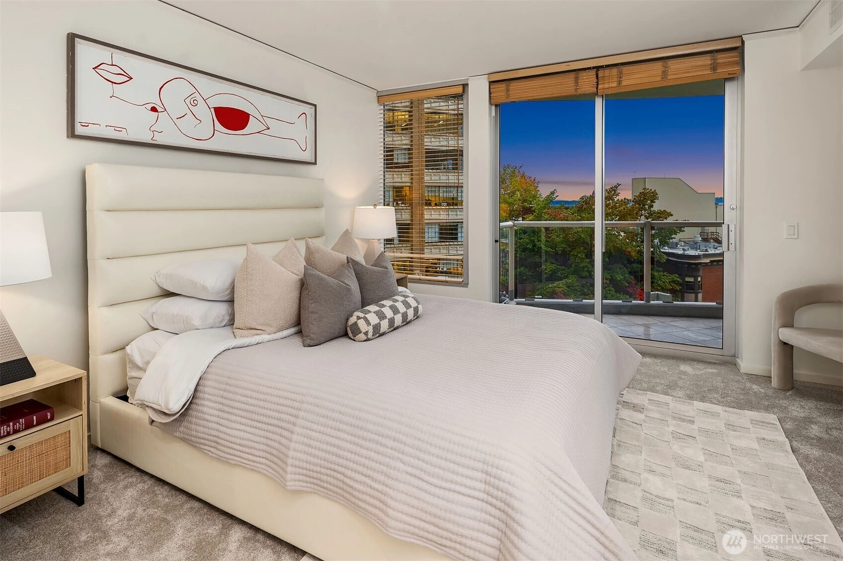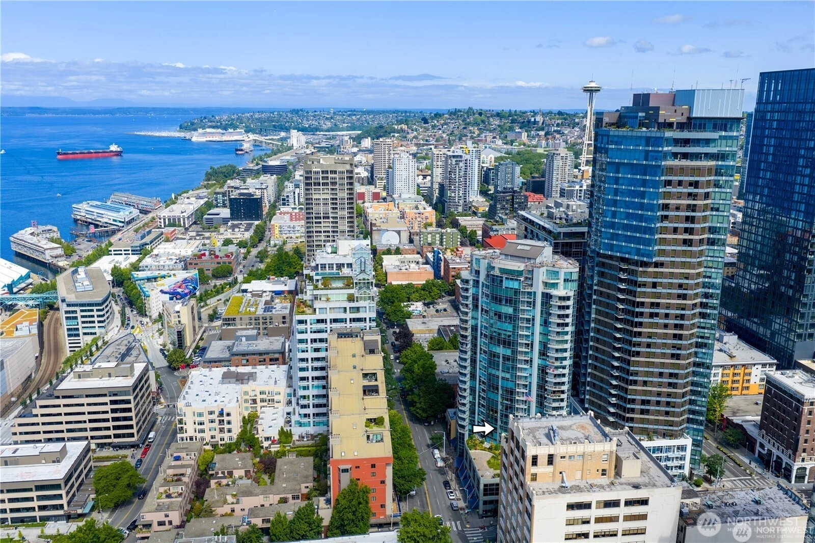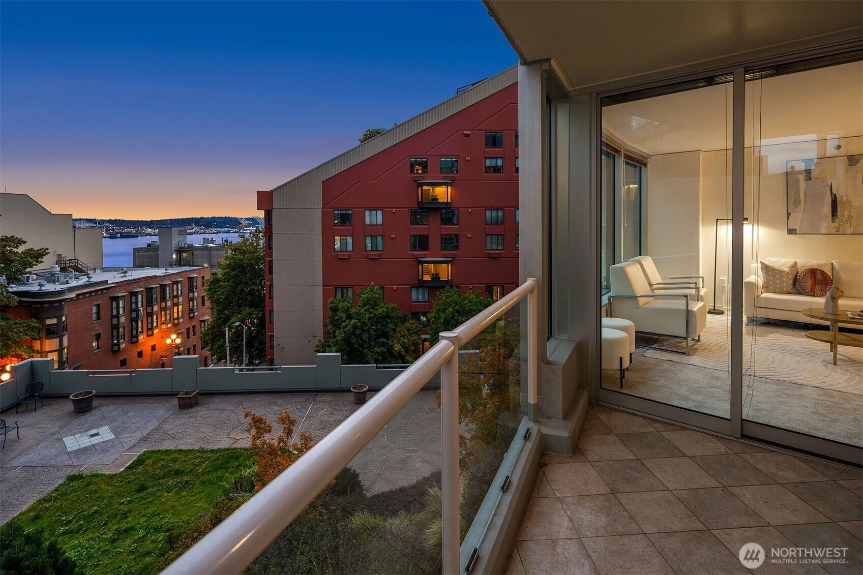Best value available in Downtown Seattle! Spacious 1BR+DEN, which could double as a 2nd BR w/ its own bath. Steps to Pike Place & the revamped waterfront. This SW-facing home is drenched in natural light through oversized windows framing tranquil views of the garden terrace & protected views of Elliott Bay, visible from both main room & bedroom. Features incl. Central A/C, newly refinished patio, Sub-Zero fridge, granite kitchen counters/floors, fresh paint/carpet, limestone entry. Versatile den w/pocket doors doubles as guest room/flex space. Primary BR offers full en-suite bath + separate 3/4 bath for guests. Amenities: 24/7concierge, indoor pool/spa, gym, event room, view terrace. Garage parking. No rental cap & well-managed building!