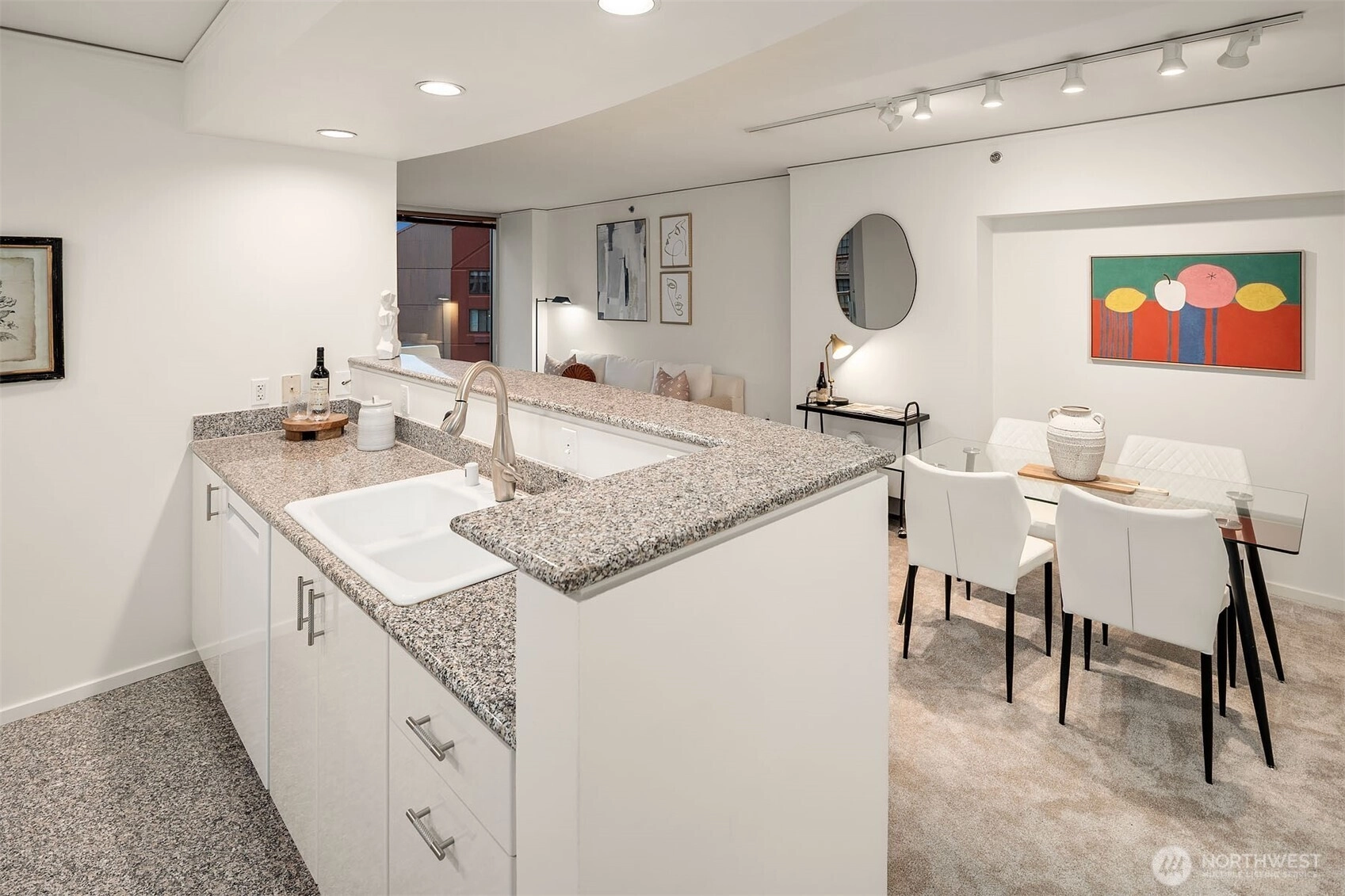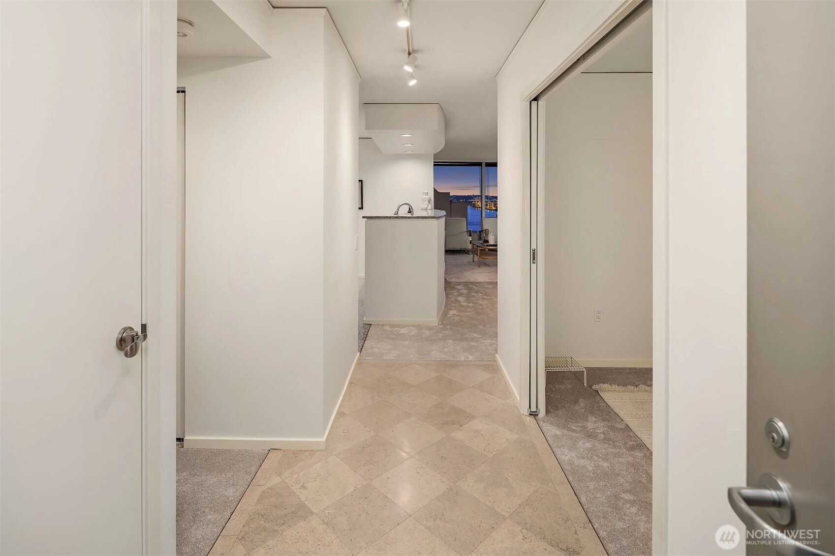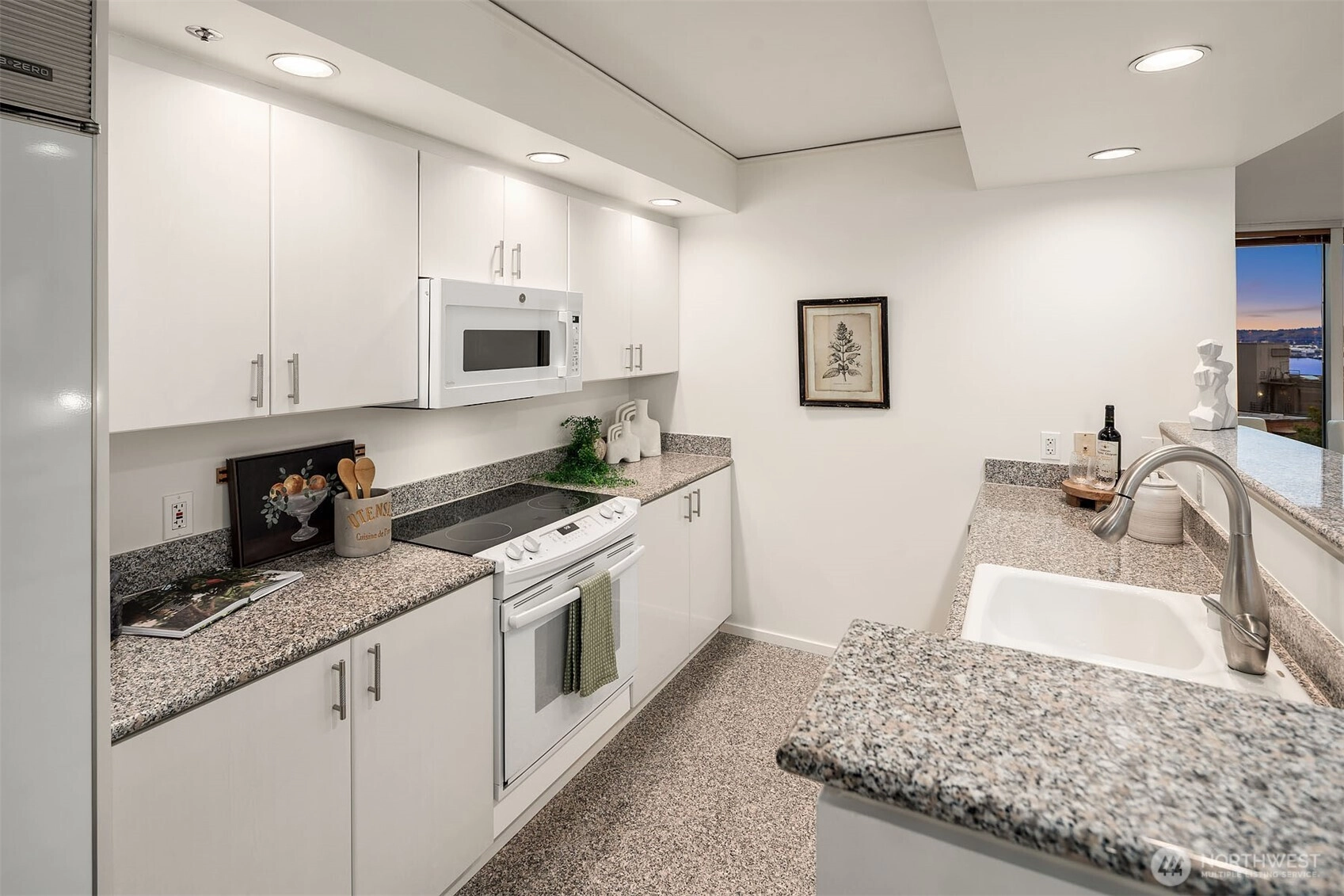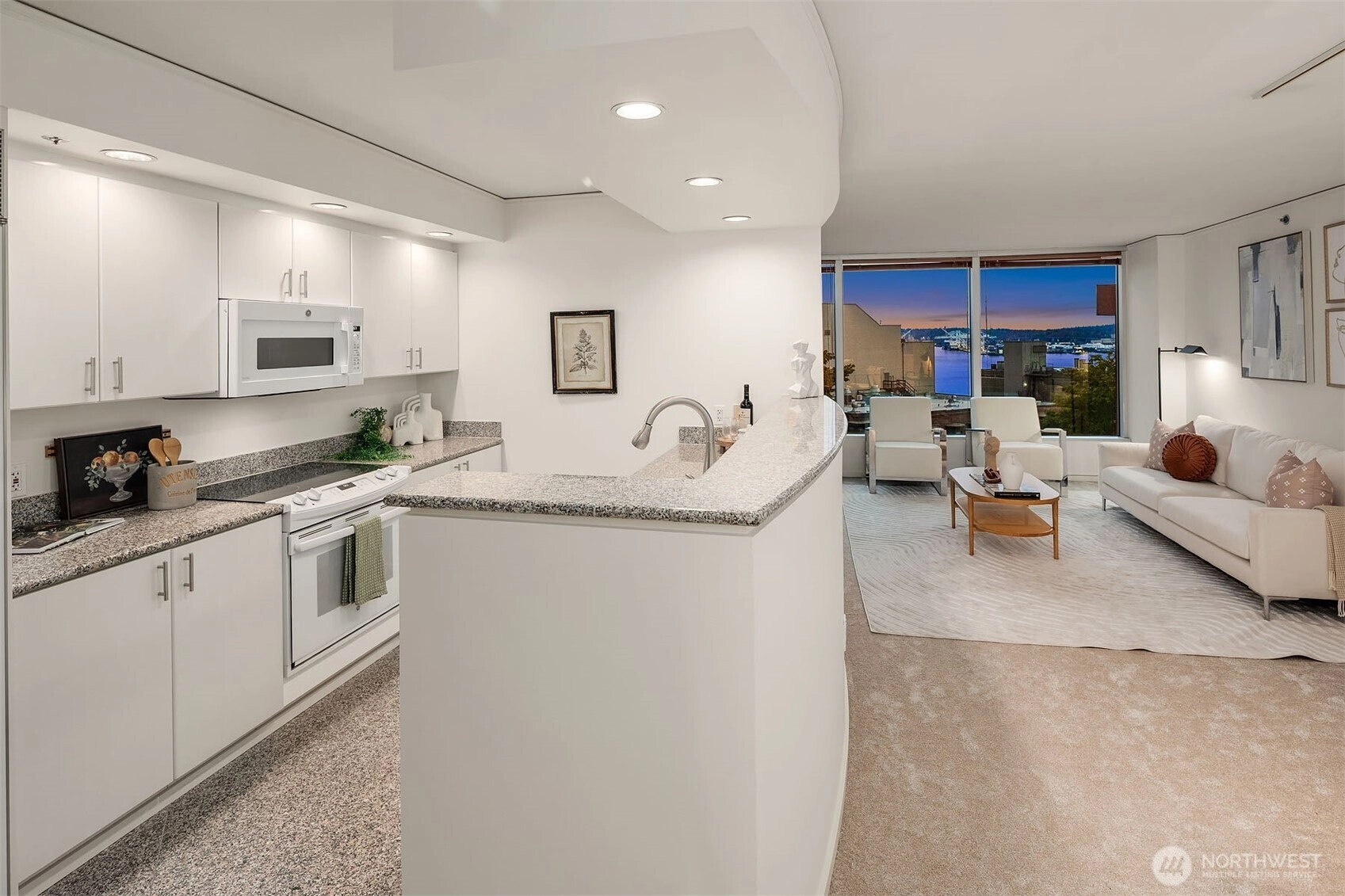 Best value available in Downtown Seattle! Spacious 1BR+DEN, which could double as a 2nd BR w/ its own bath. Steps to Pike Place & the revamped waterfront. This SW-facing home is drenched in natural light through oversized windows framing tranquil views of the garden terrace & protected views of Elliott Bay, visible from both main room & bedroom. Features incl. Central A/C, newly refinished patio, Sub-Zero fridge, granite kitchen counters/floors, fresh paint/carpet, limestone entry. Versatile den w/pocket doors doubles as guest room/flex space. Primary BR offers full en-suite bath + separate 3/4 bath for guests. Amenities: 24/7concierge, indoor pool/spa, gym, event room, view terrace. Garage parking. No rental cap & well-managed building!