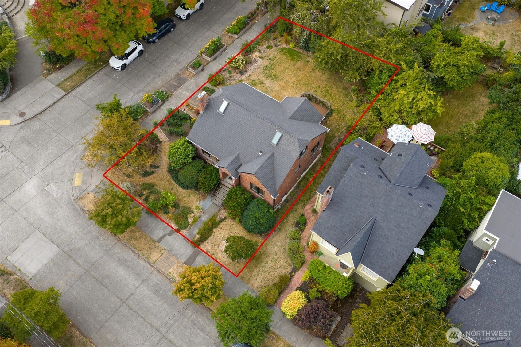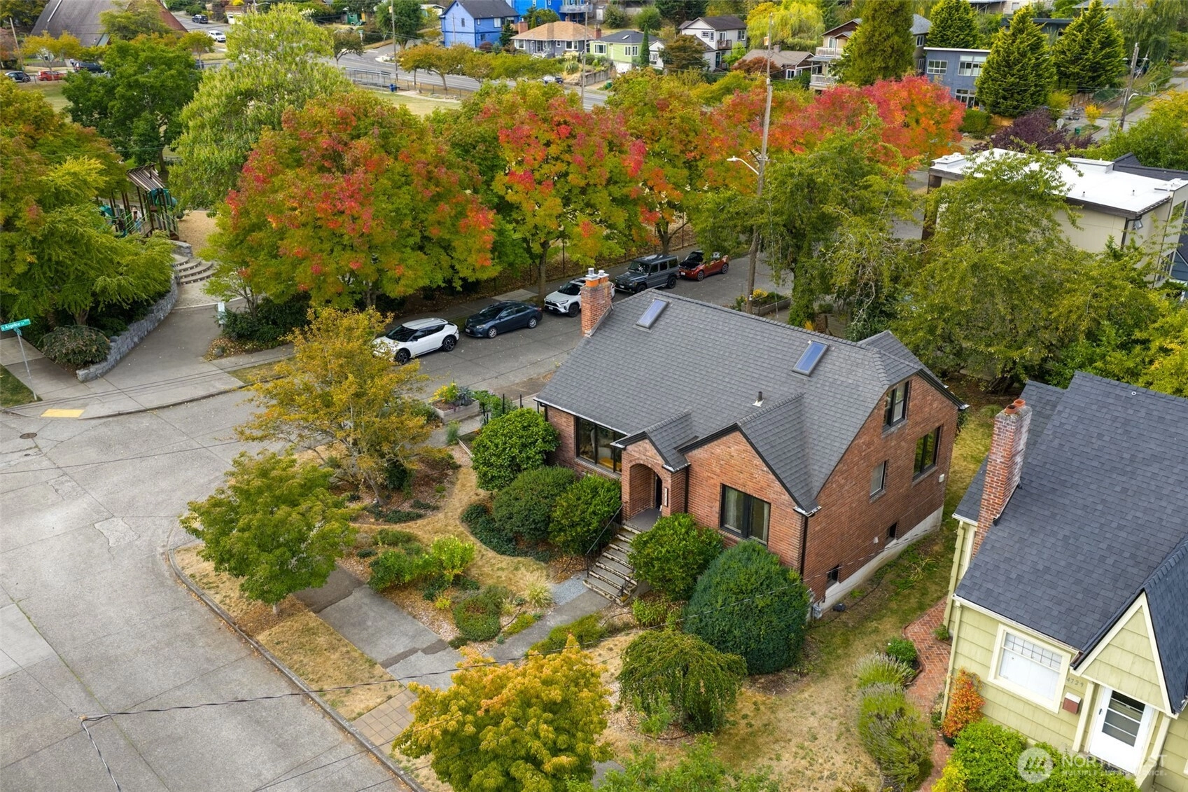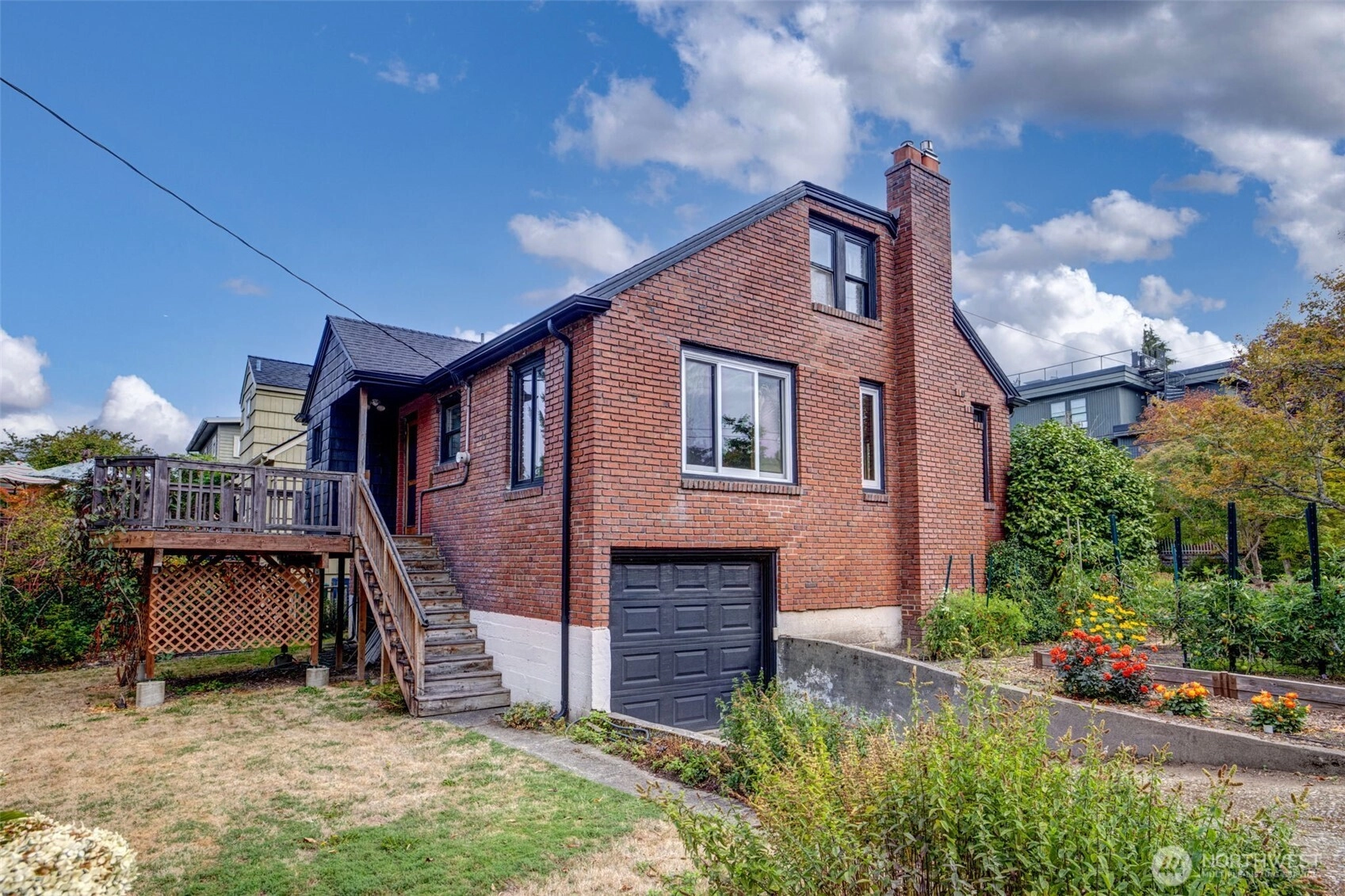 Beautiful brick Tudor on a Sunny corner, on a friendly street! Right across from a wonderful park and it's a short walk to the lake! You are moving into a gem of a location. This house gets lots of light from East, South, and West. There's a solid deck off the kitchen with a few stairs down to a large magical side yard. Gleaming hardwoods and nice woodwork in the living and dining rooms. High quality windows throughout. The basement has nice high ceilings for a future build out. Check out the narrated walkthrough video.