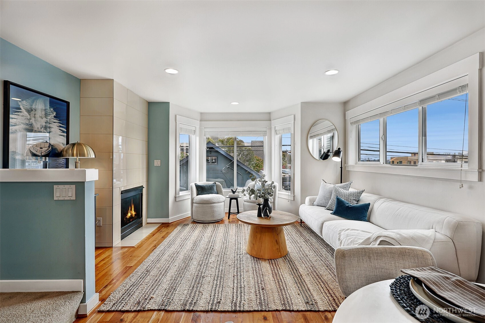 Imagine having access to it all: the vibrant & diverse Fremont community, great eats in Phinney & Wallingford, easy access to downtown, and waking up to views of Rainier & the Cascades. It can be your reality in this fantastic upper Fremont home! Tucked in back & set just across the street from BF Day's fabulous playground, you'll love both privacy & proximity from this unbeatable location. The efficient layout bathes in warm light, updated w/ AC, newer ext paint & a new gas range. Large upstairs primary + office/3rd bed share vaulted ceilings & a full bath. Private patio is perfect for quiet afternoons while the lower bed+bath works great for guests. Enjoy effortless living: no HOA, off-street parking, & all your favorites within blocks.