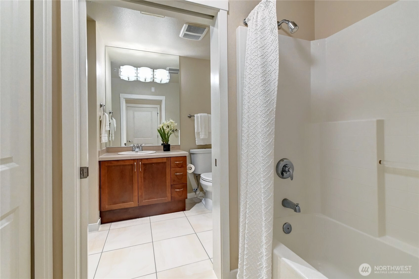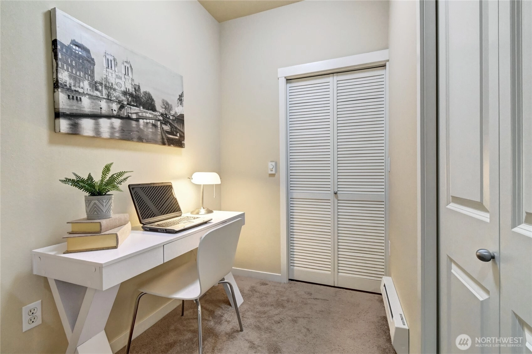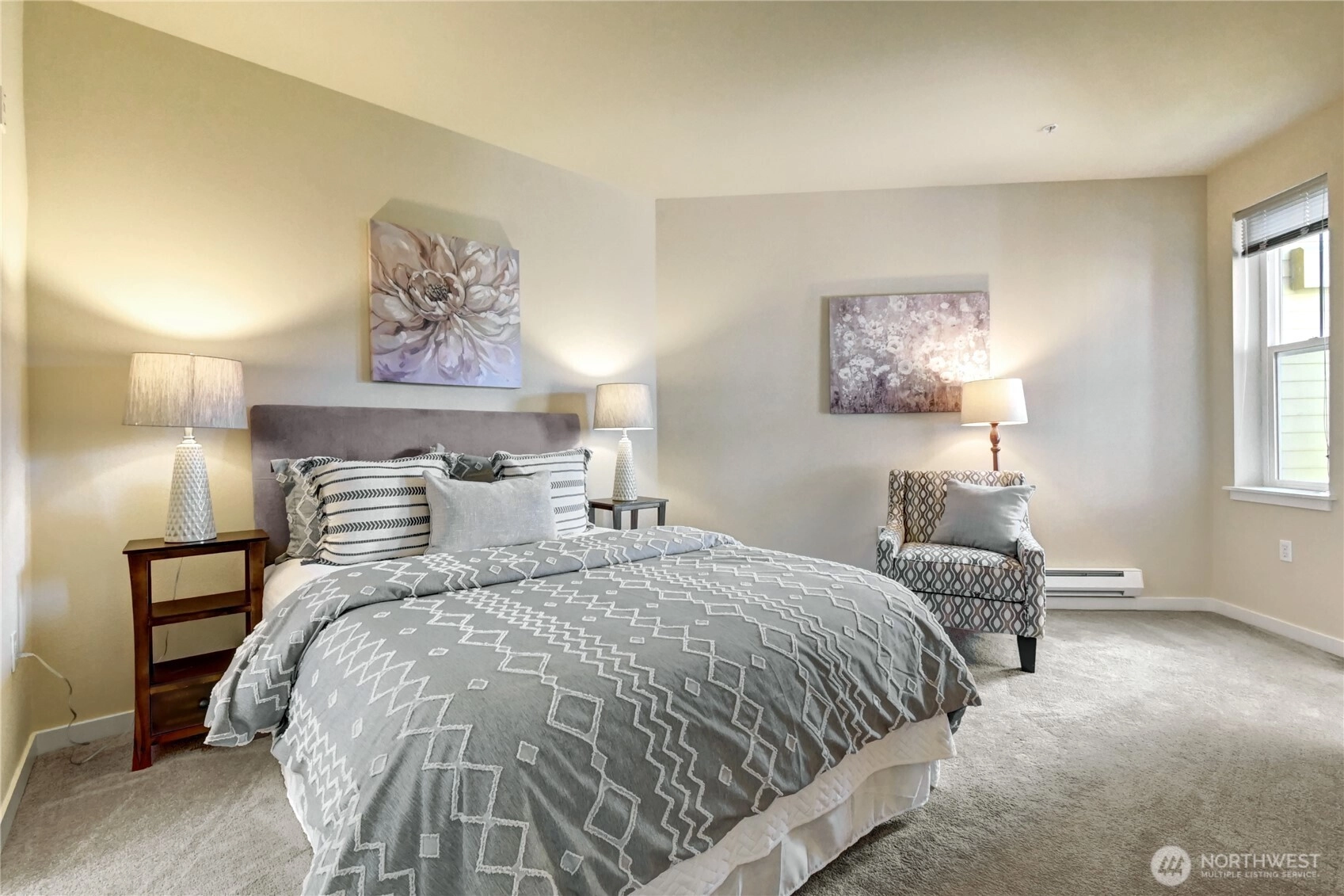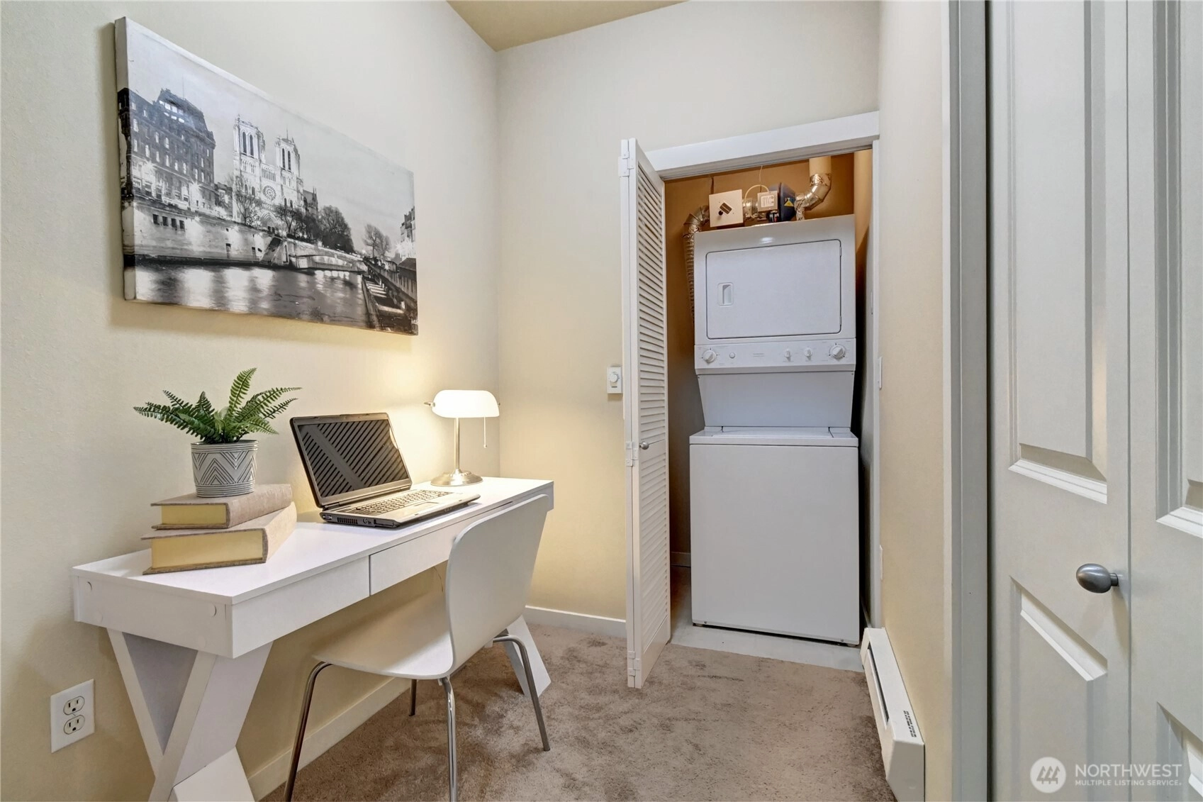 Perfectly positioned 1 bedroom + den condo in the heart of downtown Redmond with sunny southern exposure. Move-in ready with newer flooring and fresh paint. Open floor plan with high ceilings, beautiful finishes and contemporary details. Kitchen has granite countertops, Craftsman-style maple cabinets, moveable island & stainless appliances. Cozy fireplace with stone surround. Patio off of living room overlooks the courtyard and Redmond Connector Park and trail. In-unit laundry and separate additional storage. Secure building & parking with media room and fitness center. Walk to shopping, restaurants, transit, parks & trails. Easy access to 520 and just blocks away from the light rail station. Solid HOA and No Rental Cap!