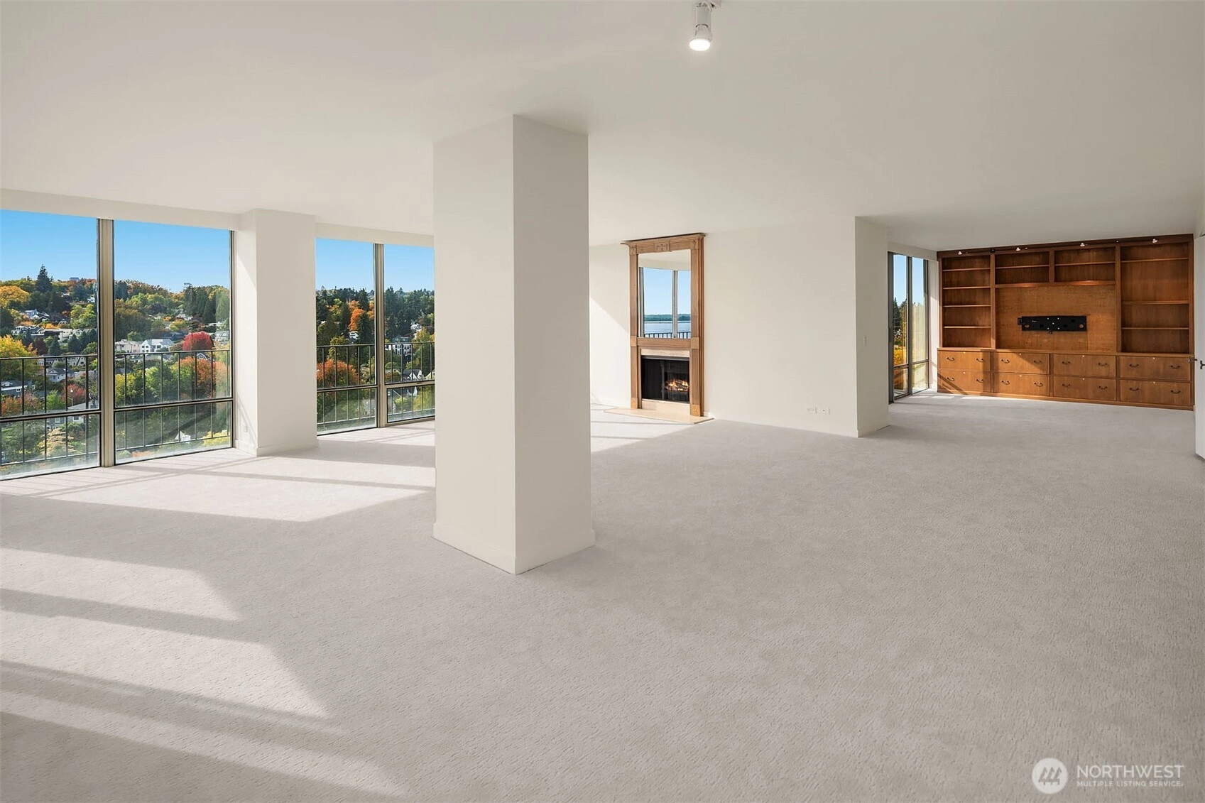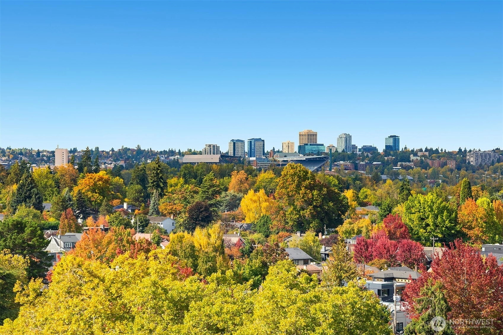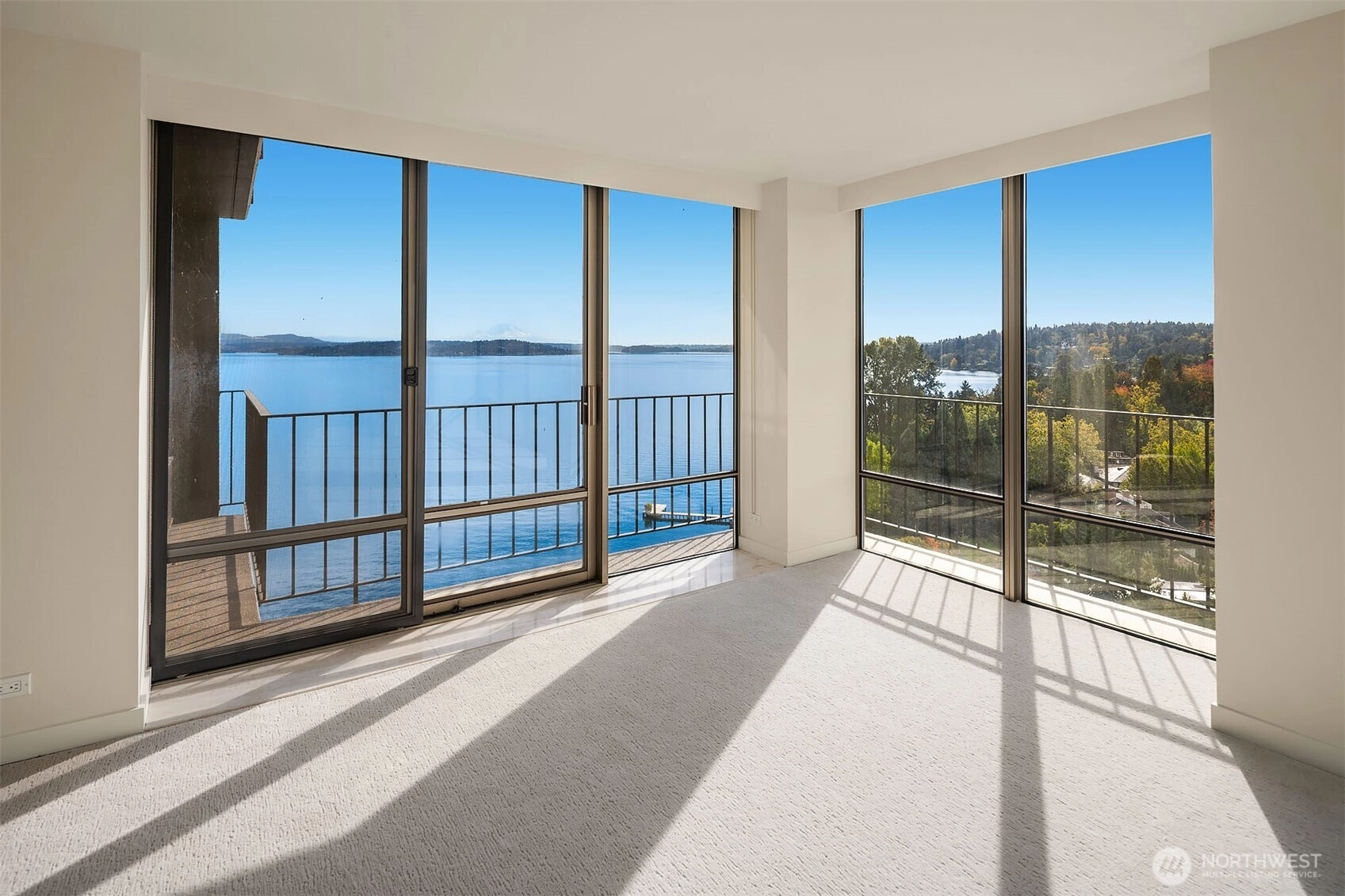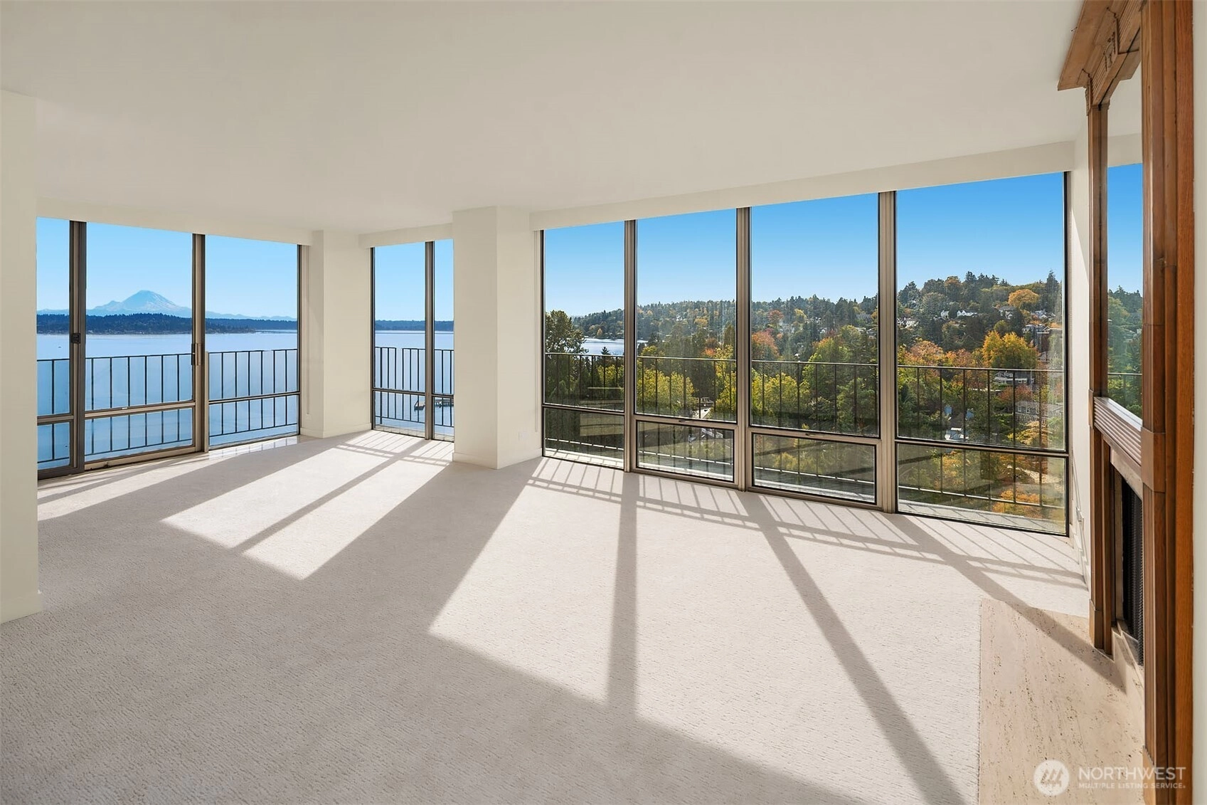 Welcome to Washington Park Towers! This beautifully remodeled unit features stunning views of Lake Washington and Mt. Rainier. The open floor plan flows seamlessly. Living room features a fireplace and wall of windows to the view. Remodeled kitchen with vertical grain oak cabinetry, honed slab granite counters and top of the line appliances. The primary bedroom with walk in closet and a full travertine bath enjoys a sliding door to the private balcony with gorgeous territorial views including Husky stadium. Wonderful amenities include 24 hour concierge, work out room, pool, rooftop deck and day dock.