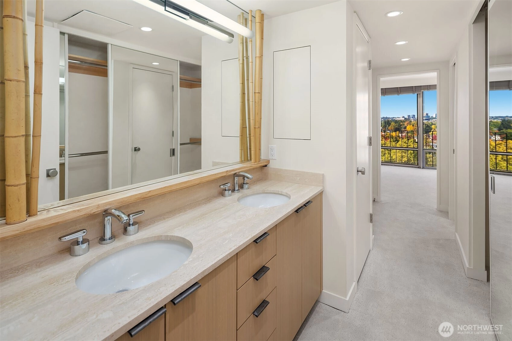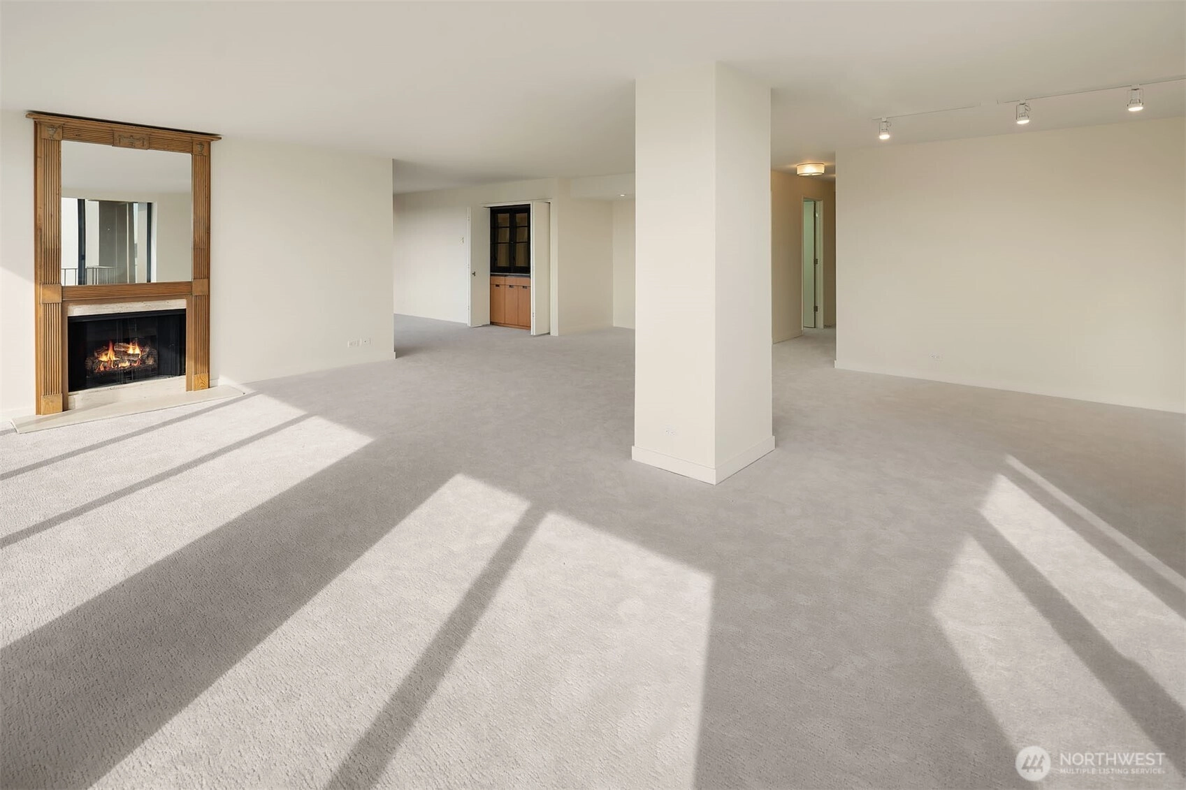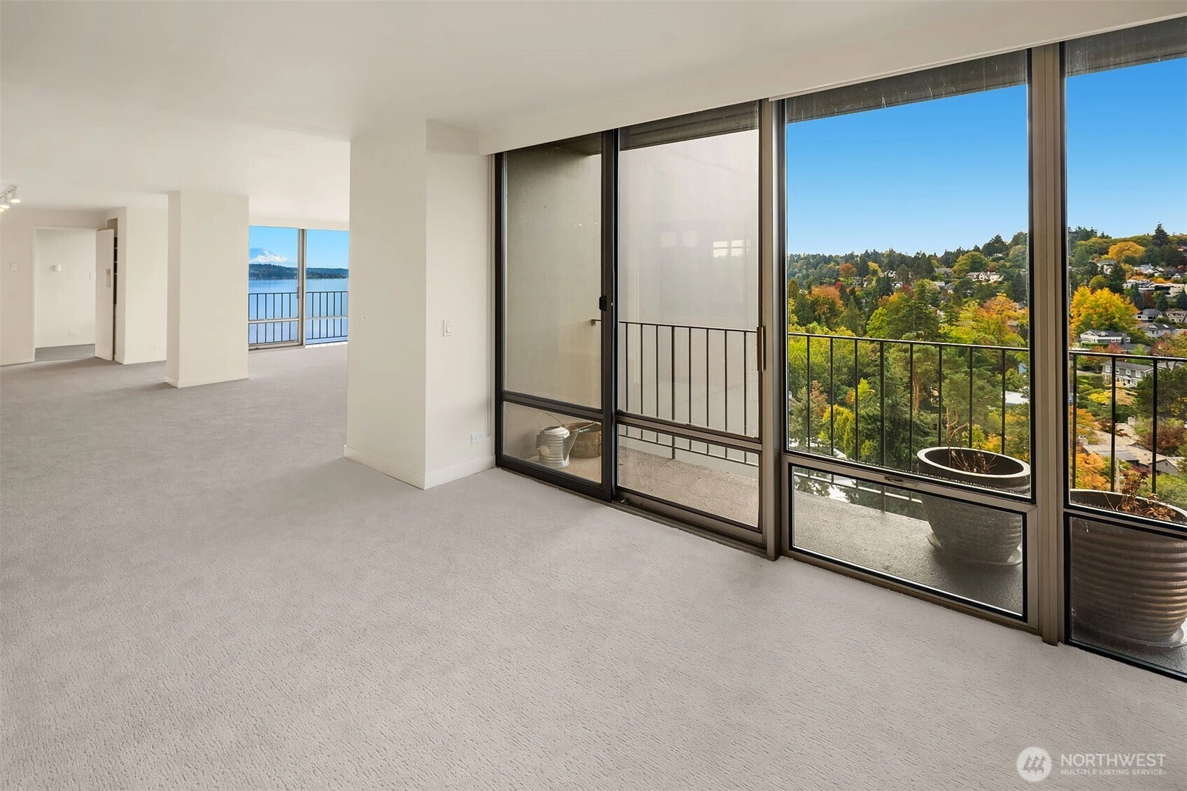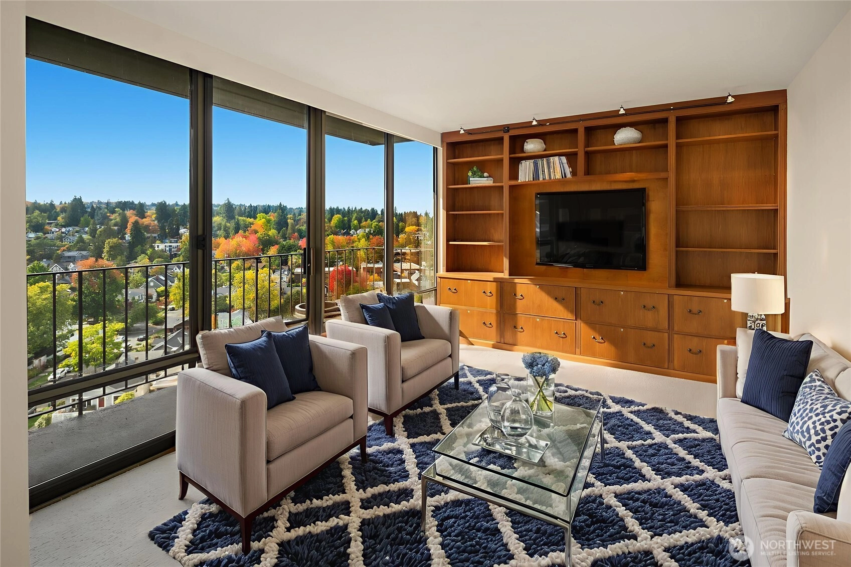 Welcome to Washington Park Towers! This beautifully remodeled unit features stunning views of Lake Washington and Mt. Rainier. The open floor plan flows seamlessly. Living room features a fireplace and wall of windows to the view. Remodeled kitchen with vertical grain oak cabinetry, honed slab granite counters and top of the line appliances. The primary bedroom with walk in closet and a full travertine bath enjoys a sliding door to the private balcony with gorgeous territorial views including Husky stadium. Wonderful amenities include 24 hour concierge, work out room, pool, rooftop deck and day dock.
