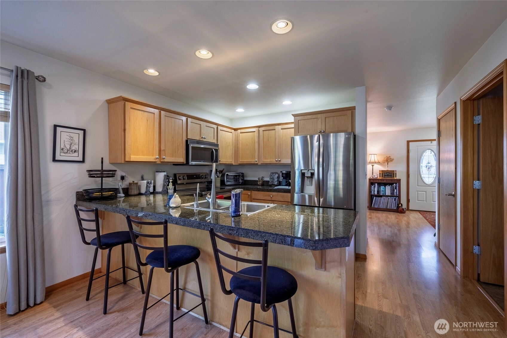Beautiful one-owner custom home in desirable Baycrest! Built in 2005, this thoughtfully designed 4-bed, 2.5-bath home offers a main-floor primary suite with jetted tub, walk-in closet, and full wheelchair accessibility—36” doorways and a ramp from the 3-car garage. Enjoy an inviting living room with gas fireplace, open dining area, and spacious kitchen filled with natural light and ample storage. Upstairs features three bedrooms, a full bath, and a large bonus/rec room perfect for entertainment or hobbies. The fully fenced backyard includes a patio, manicured landscaping, and space for gardening or play. Located near Birch Bay beaches, state park, local shops, and well-kept neighborhood that shows pride of ownership throughout!