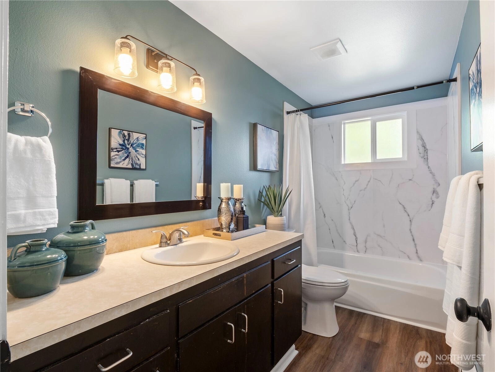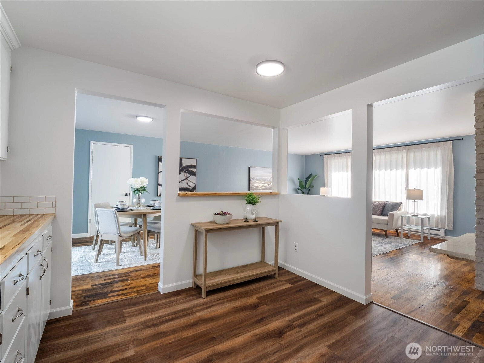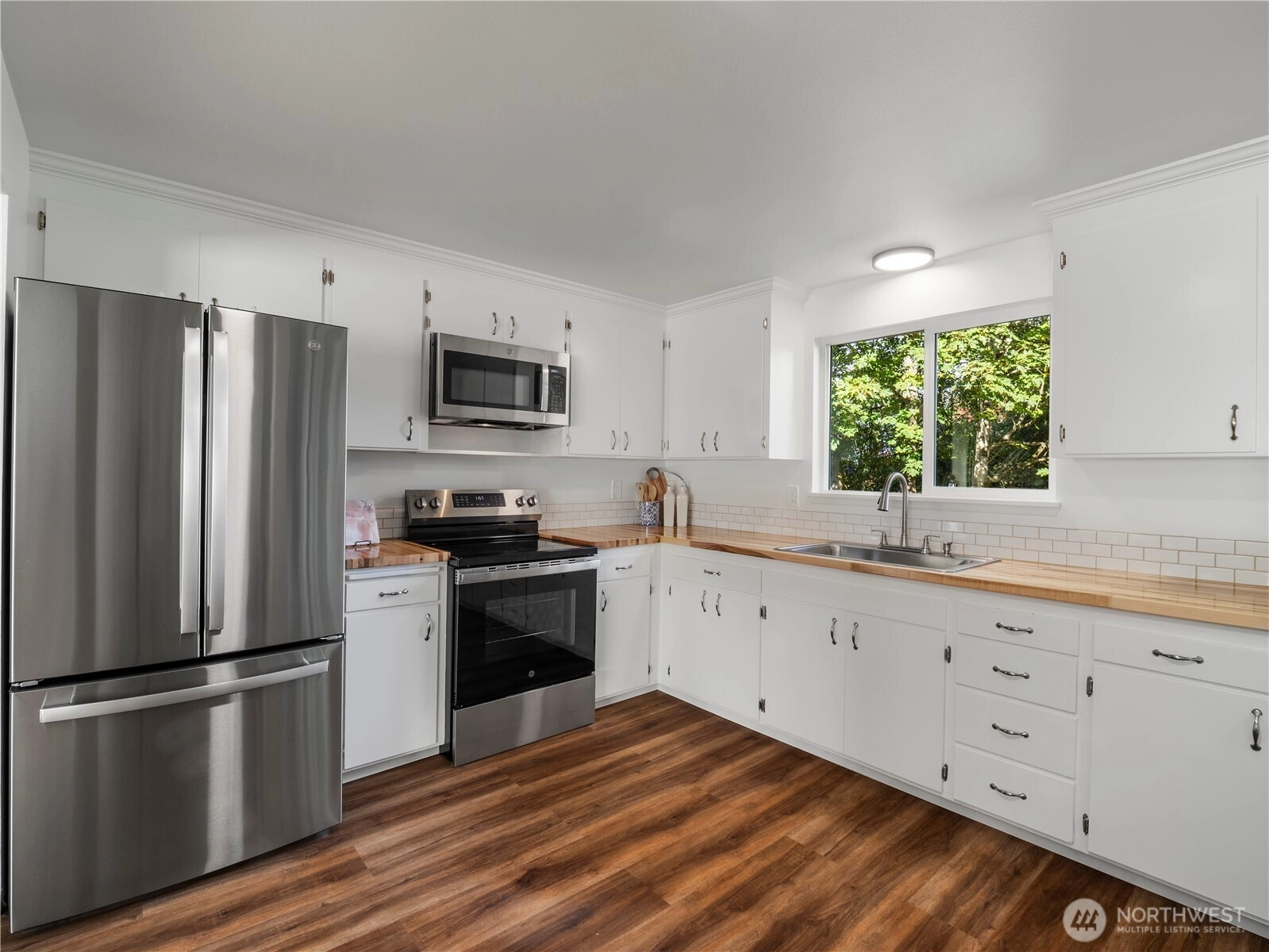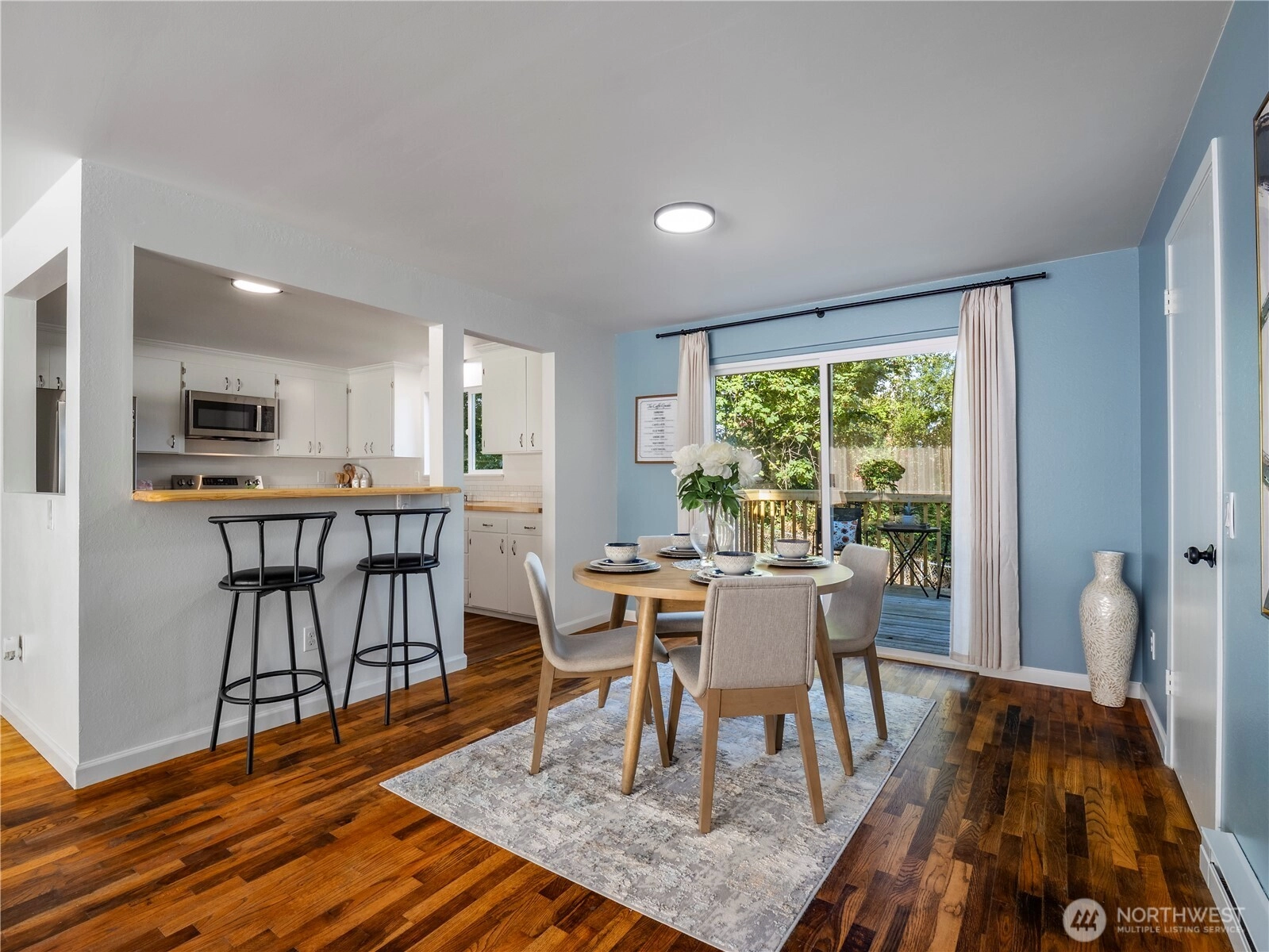This beautifully renovated Lynnwood rambler combines classic charm with modern updates. Featuring 3 bedrooms and 1.75 bathrooms, the home offers fresh interior and exterior paint, new stainless steel appliances, updated lighting, and new flooring in the kitchen and baths. Original hardwood floors flow throughout the living spaces, highlighted by a cozy wood-burning fireplace. Enjoy the spacious, private backyard with a large entertaining deck and fire pit, plus fresh front-yard landscaping with new sod and bark. Conveniently located near parks, shopping, and I-5!