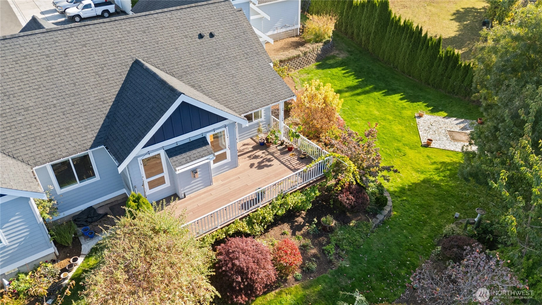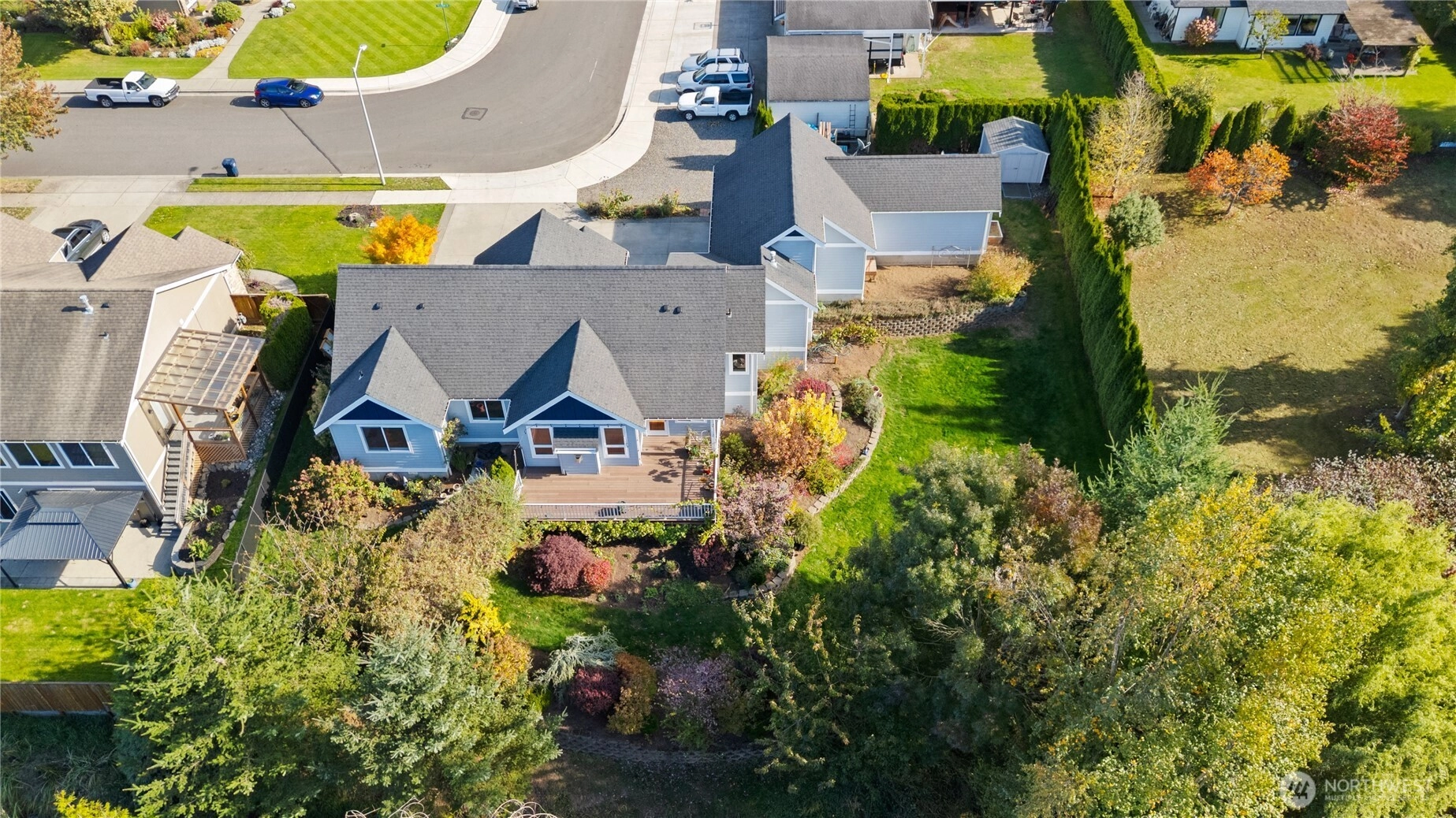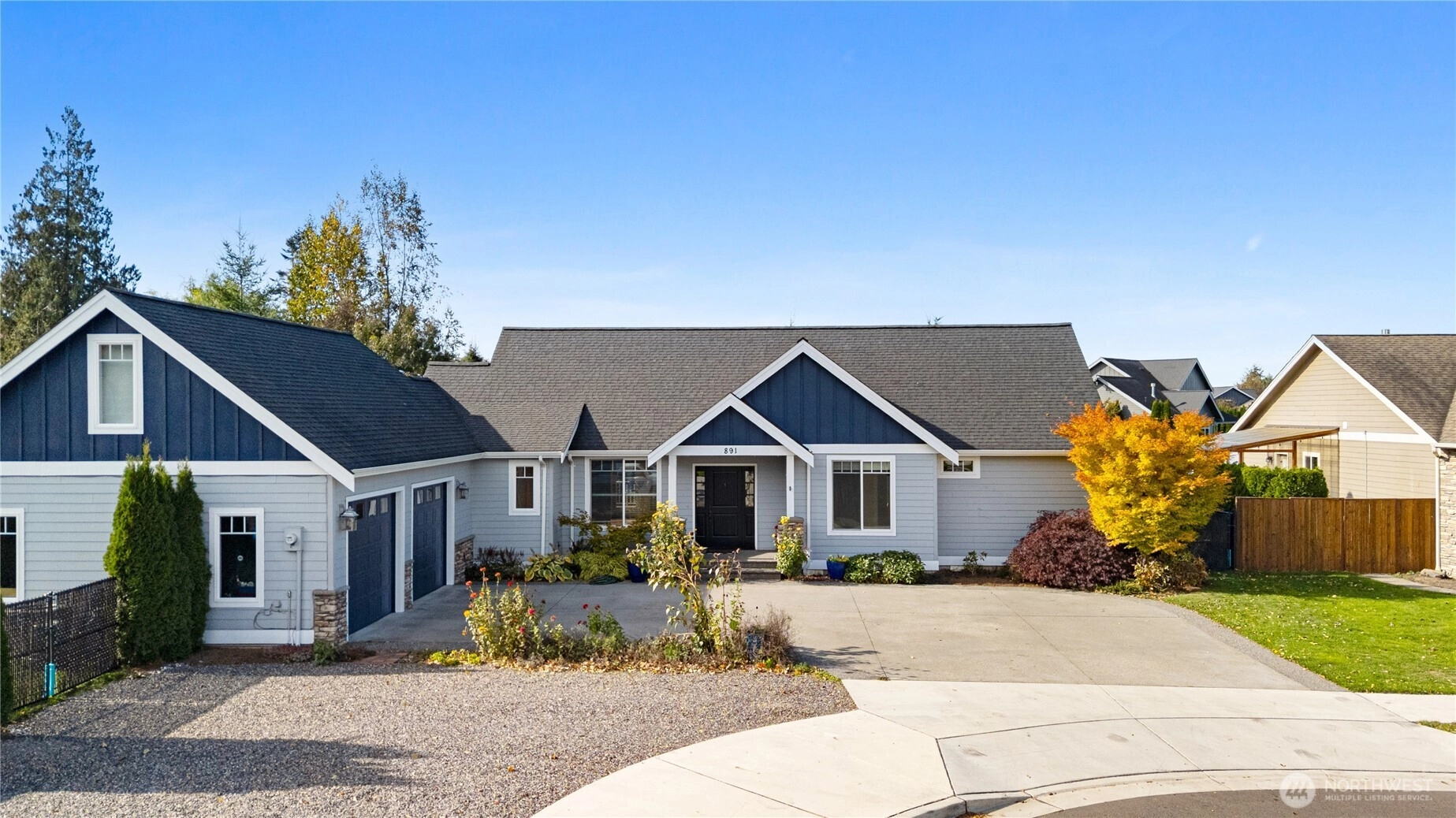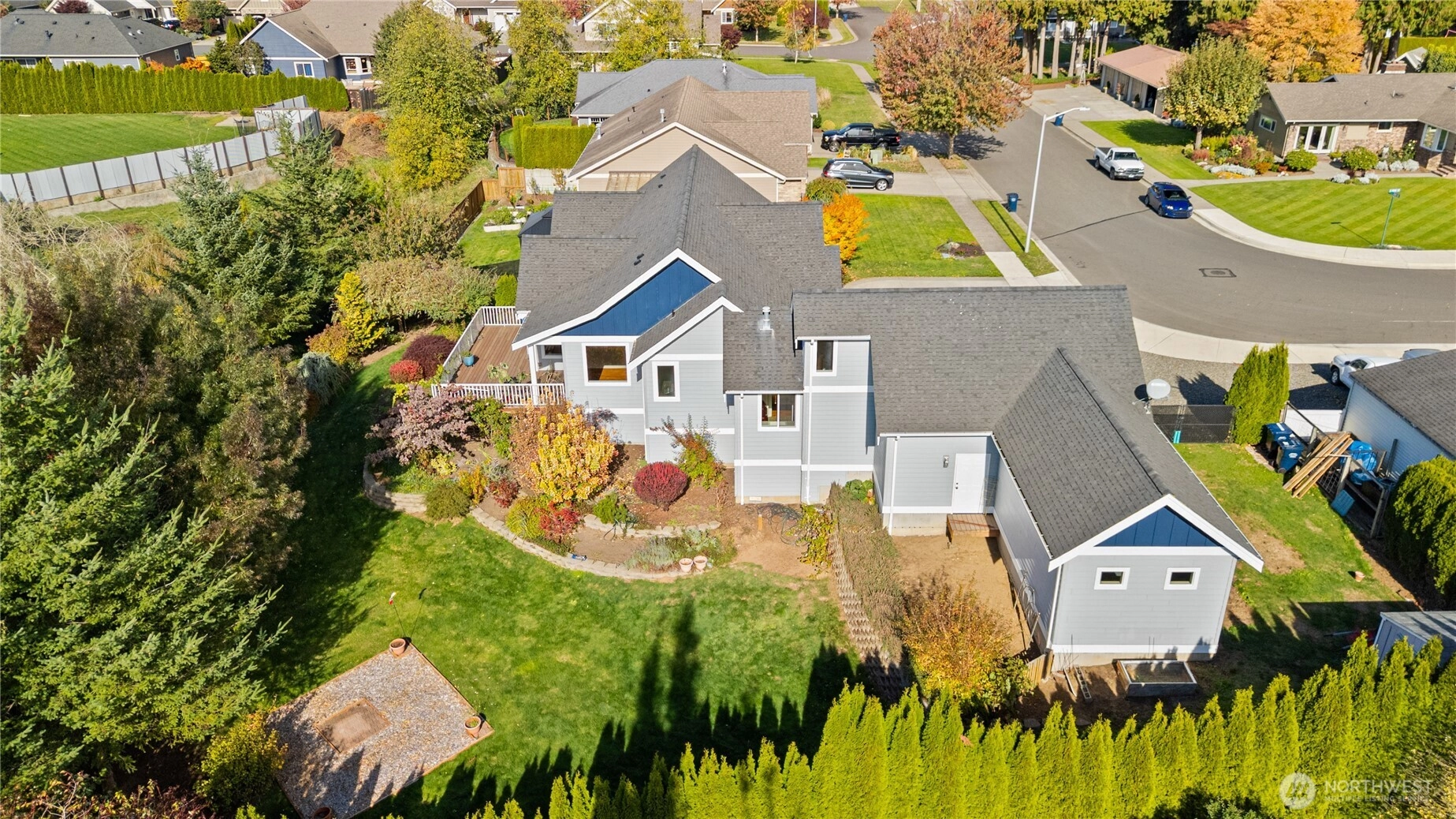 Tucked away on a quiet street, this 3-bed, 2.5-bath home offers privacy, space, and comfort on an incredible 17,000+ sq ft lot. With 2,250 sq ft of living space, the home feels bright and inviting throughout, featuring an open floor plan, granite kitchen counters, and stainless appliances—all included. A cozy gas fireplace warms the main living area, and the bonus room above the oversized tandem 3-car garage adds flexibility. The large, level driveway offers ample parking, plus space beside the garage for an RV or boat. Enjoy the spacious deck, mature landscaping, fruit trees, and peaceful wildlife just minutes from downtown Lynden.