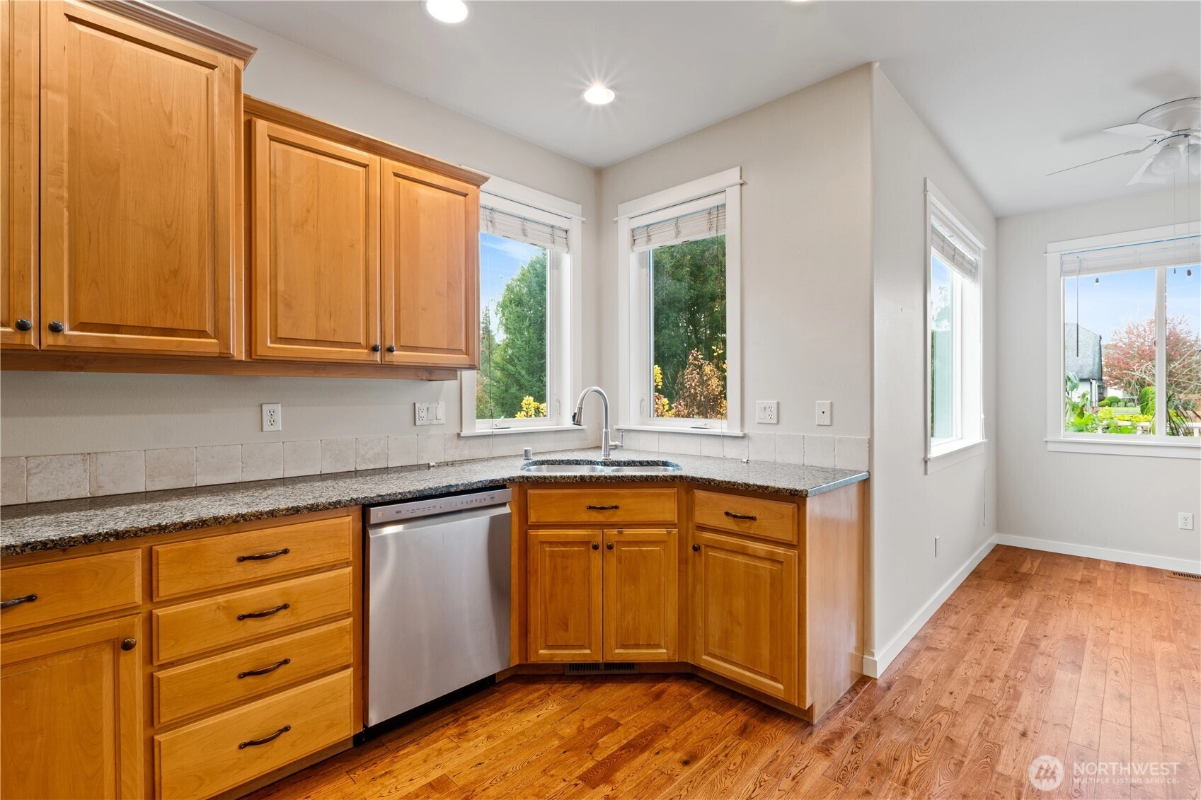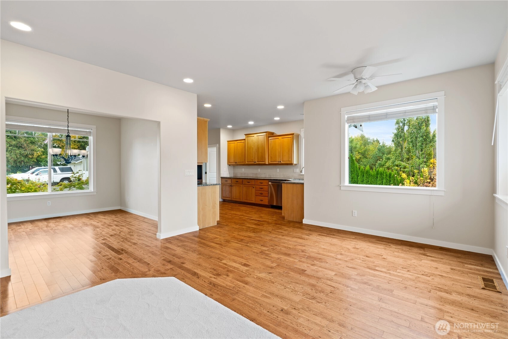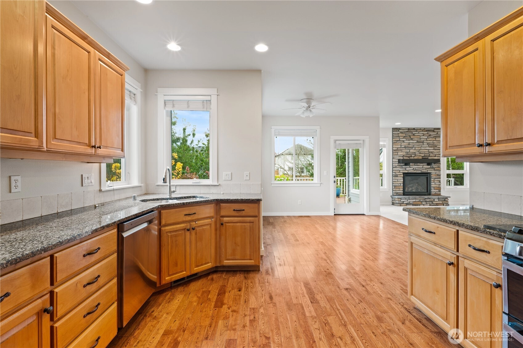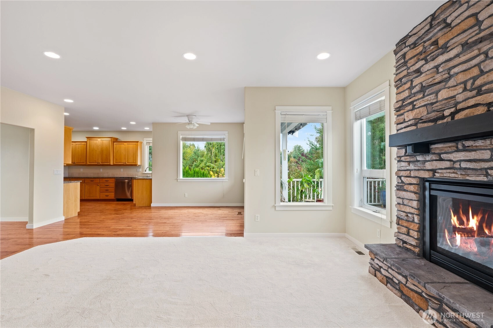 Tucked away on a quiet street, this 3-bed, 2.5-bath home offers privacy, space, and comfort on an incredible 17,000+ sq ft lot. With 2,250 sq ft of living space, the home feels bright and inviting throughout, featuring an open floor plan, granite kitchen counters, and stainless appliances—all included. A cozy gas fireplace warms the main living area, and the bonus room above the oversized tandem 3-car garage adds flexibility. The large, level driveway offers ample parking, plus space beside the garage for an RV or boat. Enjoy the spacious deck, mature landscaping, fruit trees, and peaceful wildlife just minutes from downtown Lynden.