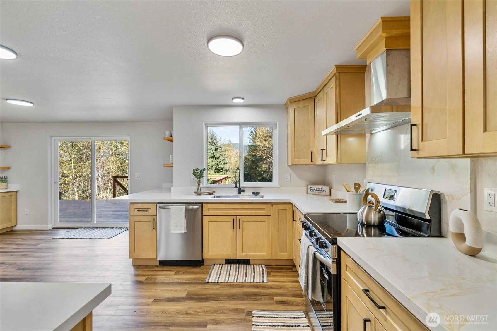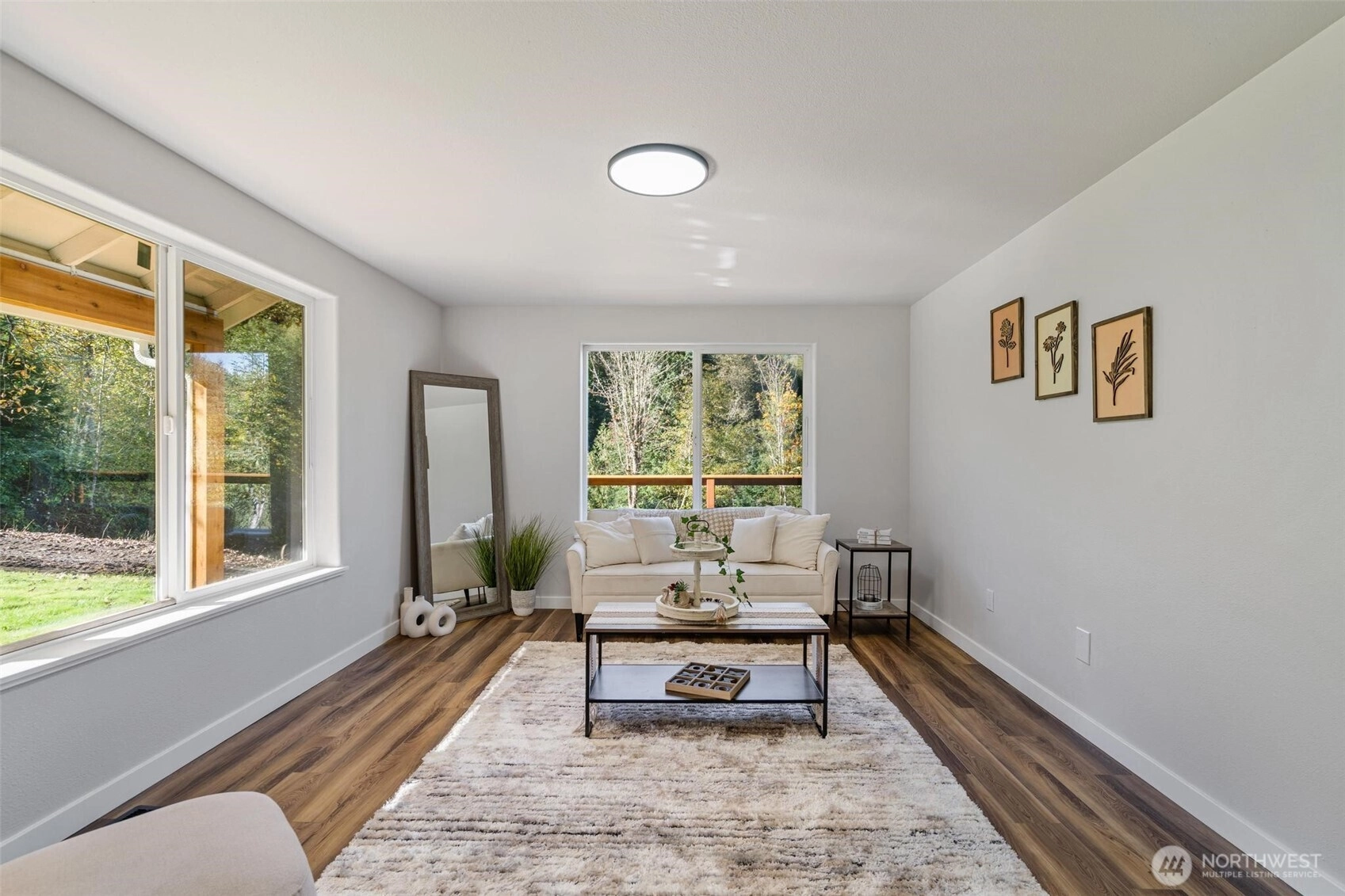 Rare find! Sitting on 37 private acres, this beautiful 4 bedroom (plus den w/ closet) has been updated from top to bottom! New kitchen cabinets, quartz counters, stainless steel appliances, waterproof LVP flooring, carpet, led lighting, doors and trim, plumbing fixtures, roof, interior and exterior paint and much more. Front covered porch has a wrap-around deck leading to an expansive back deck. The large rooms and upstairs vaulted ceilings make this home feel much larger than the listed sq footage. Abundant wildlife abounds! The gated driveway provides the privacy you've been looking for! Less than 1 hour from both, Mount Rainier National Park & White Pass Ski Resort!