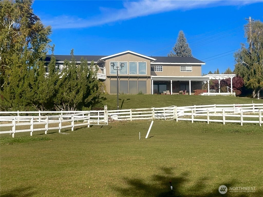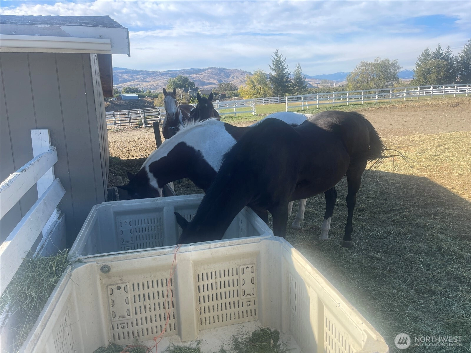 Breathtaking 11-acre property overlooking the Okanogan River Valley! This spacious home features a master suite, 3 bedrooms, 4 bathrooms, and 2 fully equipped kitchens. Enjoy upstairs living with panoramic views, downstairs cozy propane fireplace. The home offers granite countertops, large pantries, new carpet, and laminate floors. Outside boasts 2 hay barns, a tack room, 3 enclosed stalls, 4 fenced pastures with irrigation, 4 outbuildings, a covered patio, large deck, mature landscaping, and an attached 2-car garage with electric doors. There are two very peaceful spaces among the trees for those private times of rest and relaxation. Perfect blend of comfort, function, and natural beauty. Just minutes to town.