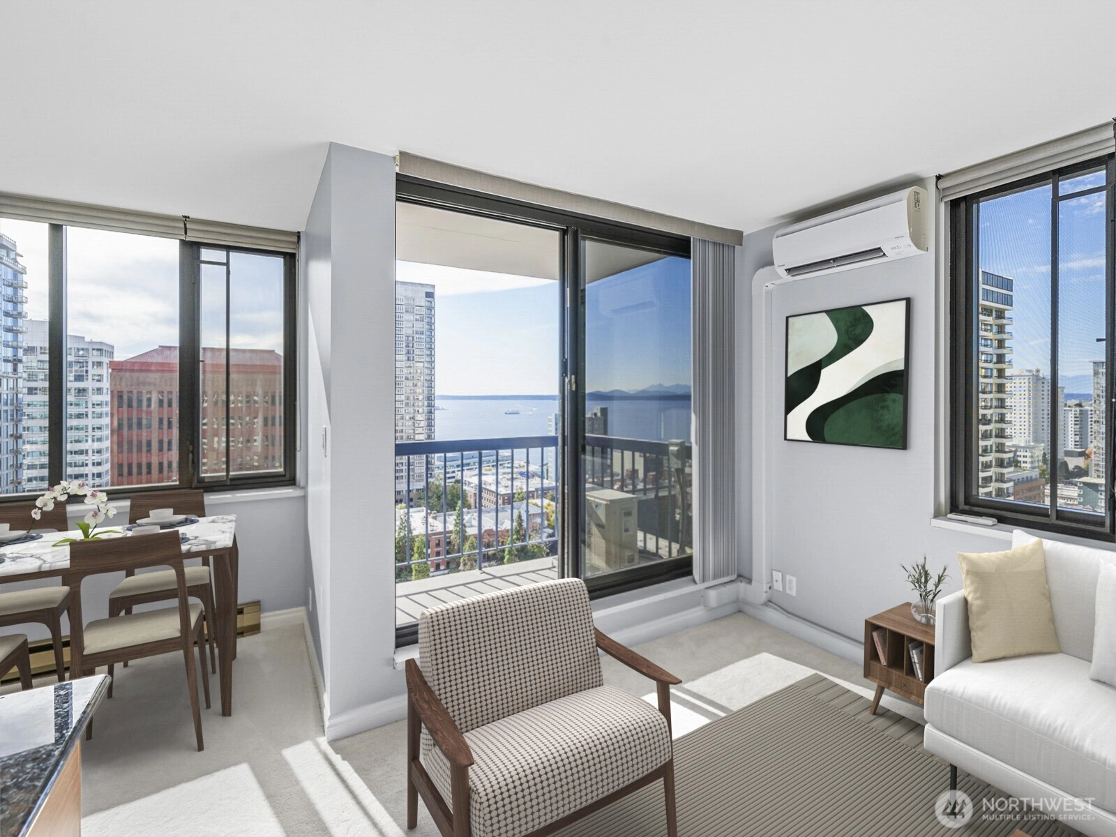 Unbeatable value in the heart of Seattle! This updated corner unit offers stunning views of the Space Needle, Elliott Bay, and city skyline—all at one of the best price-per-sqft values around. Enjoy premium amenities including a pool, gym, sauna, patio, and storage. HOA covers all utilities! Prime location with restaurants, shops, Pike Place Market, waterfront, stadiums, and transit just minutes away. Bright, modern finishes and a smart layout make this condo the perfect blend of comfort, convenience, and value.