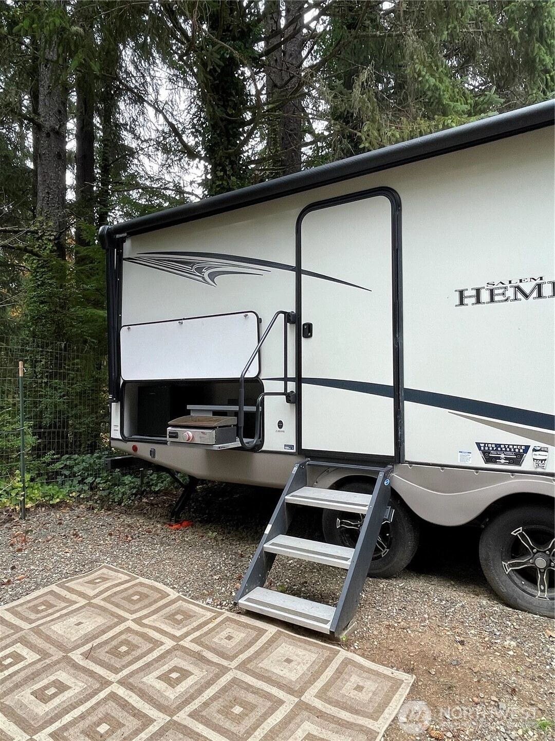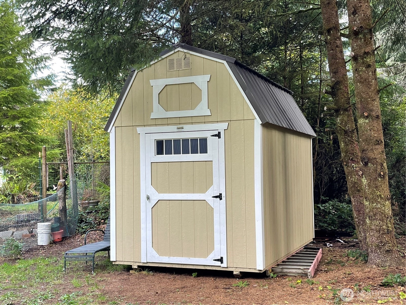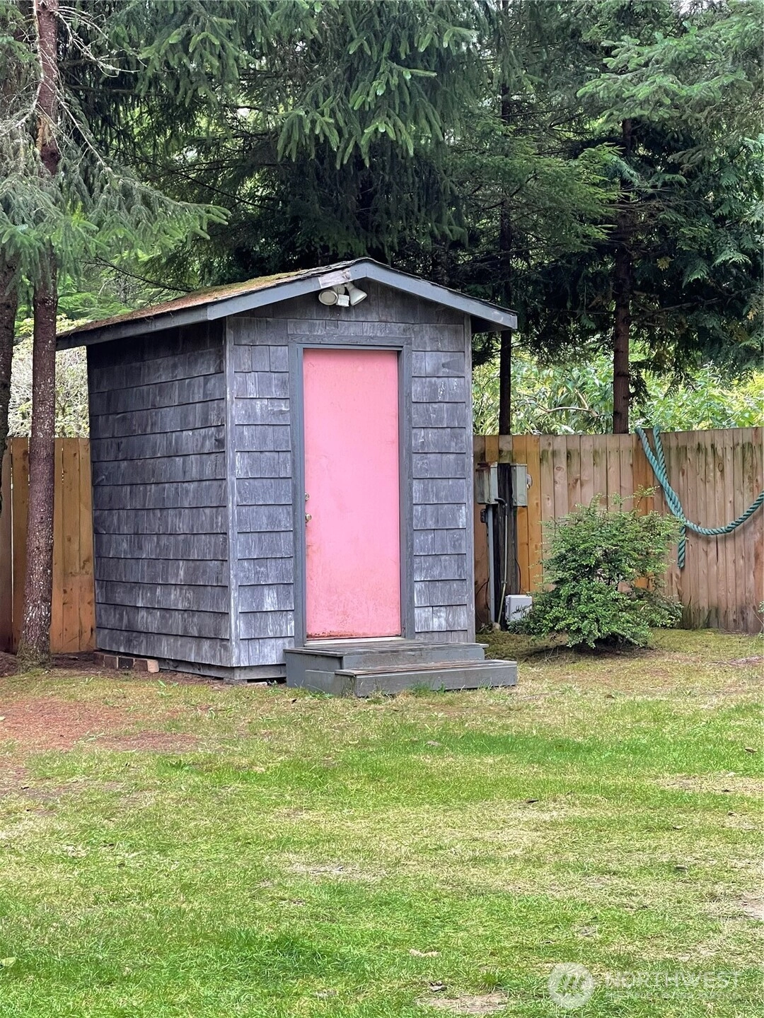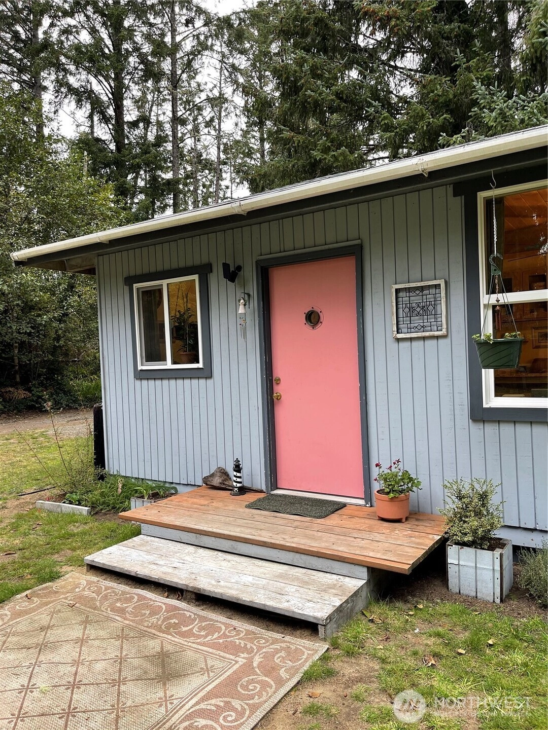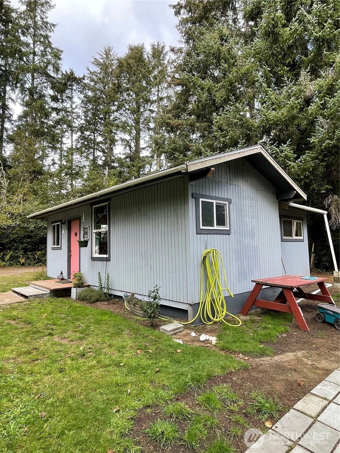 TINY HOUSE, BIG LOT, DOWN A ROAD LESS TRAVELED. On a secluded dead end road in the forest this incredible tiny home shines. Much to offer for low asking price. Double lot room to add garage, newer large shed + storage in pump house. Cedar fence, fire pit, patio, garden, ample R.V. parking area. Beautiful 2021 Forest River 23 ft. R.V. available outside escrow. You'll say Home Sweet Home as you step into this enchanted cottage. Vintage cabin with newer roof had a renovation that transformed it into a comfortable & inviting living space. User friendly kitchen has propane. Plenty of cupboards & counters. Big trees & open space. Park like setting, quiet oasis. Awesome huge soaker tub with tile. W & D. Check out this gem quick before it's gone!!