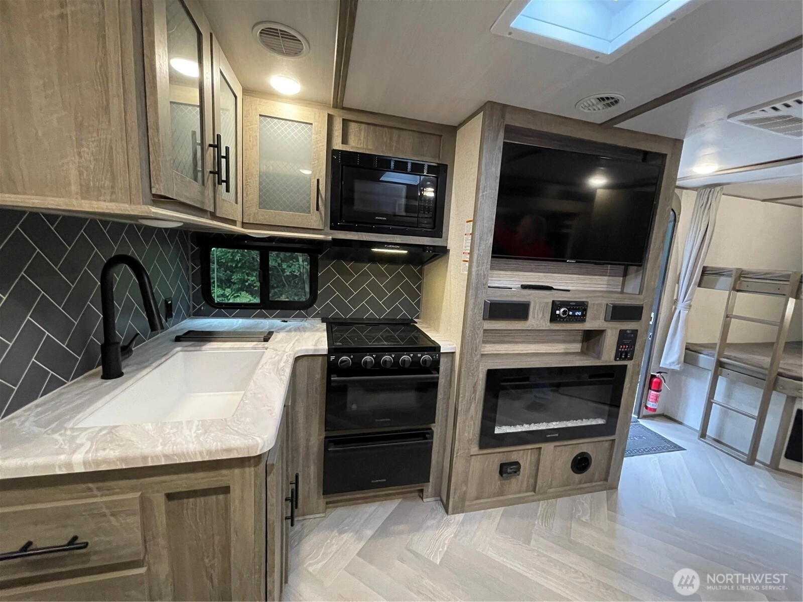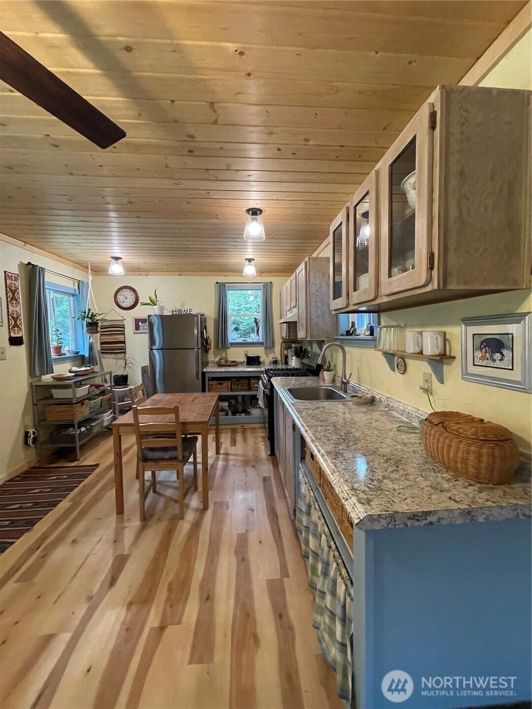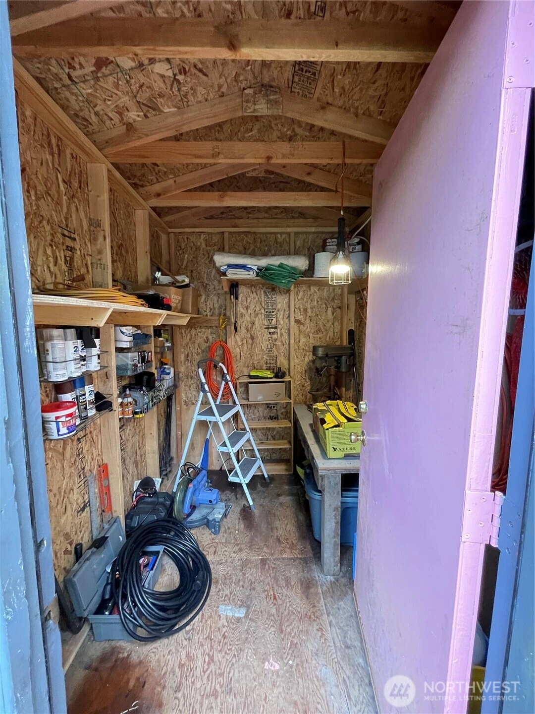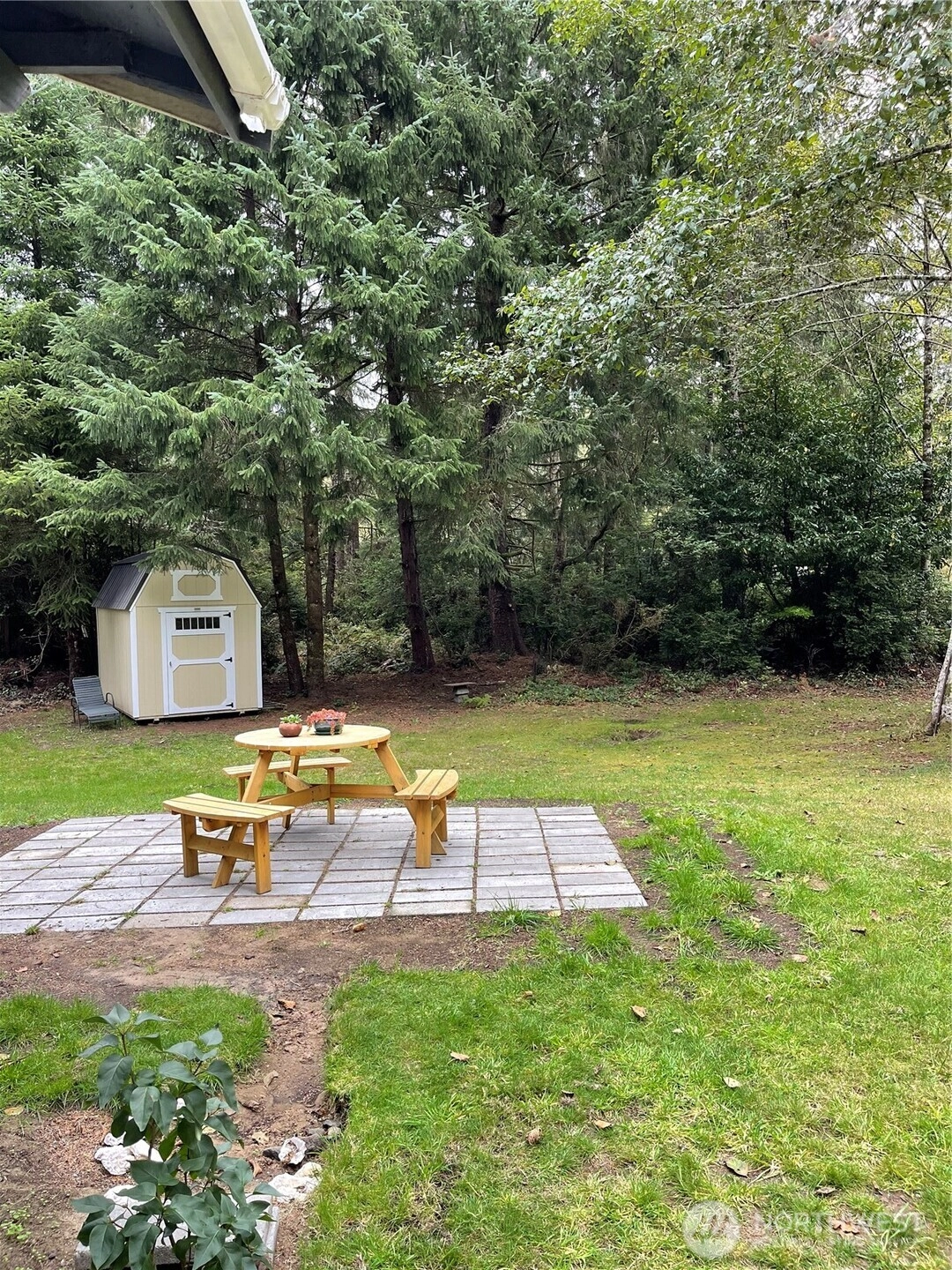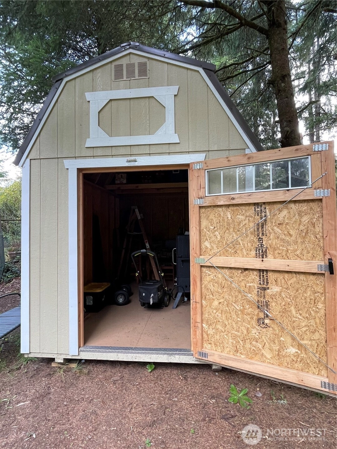 TINY HOUSE, BIG LOT, DOWN A ROAD LESS TRAVELED. On a secluded dead end road in the forest this incredible tiny home shines. Much to offer for low asking price. Double lot room to add garage, newer large shed + storage in pump house. Cedar fence, fire pit, patio, garden, ample R.V. parking area. Beautiful 2021 Forest River 23 ft. R.V. available outside escrow. You'll say Home Sweet Home as you step into this enchanted cottage. Vintage cabin with newer roof had a renovation that transformed it into a comfortable & inviting living space. User friendly kitchen has propane. Plenty of cupboards & counters. Big trees & open space. Park like setting, quiet oasis. Awesome huge soaker tub with tile. W & D. Check out this gem quick before it's gone!!