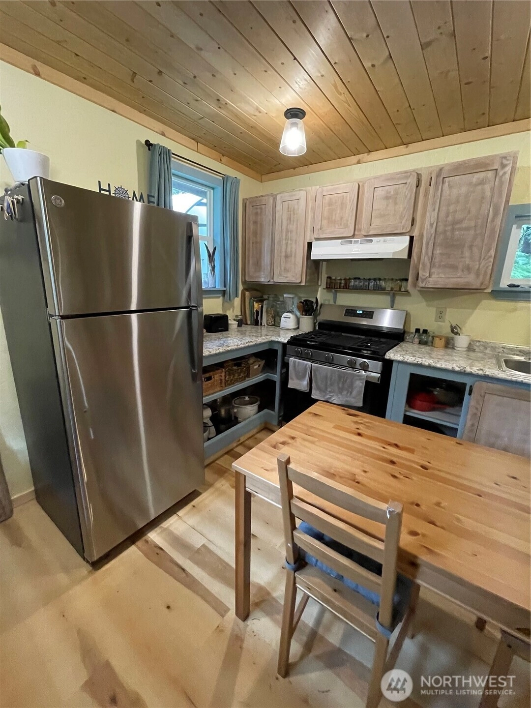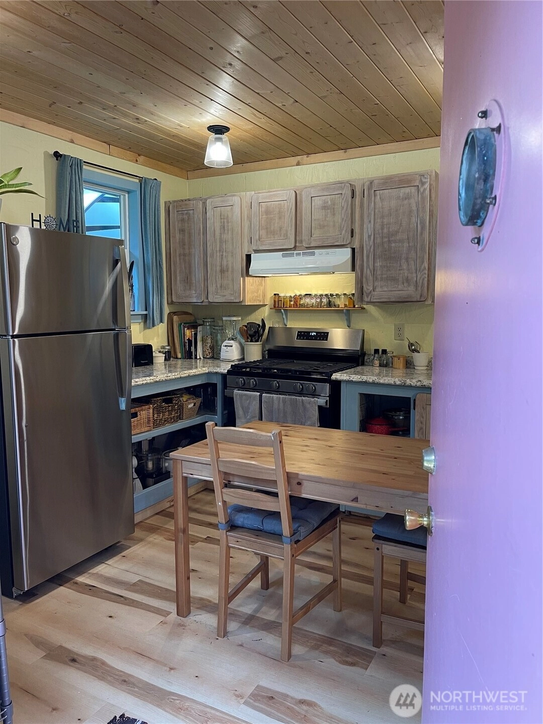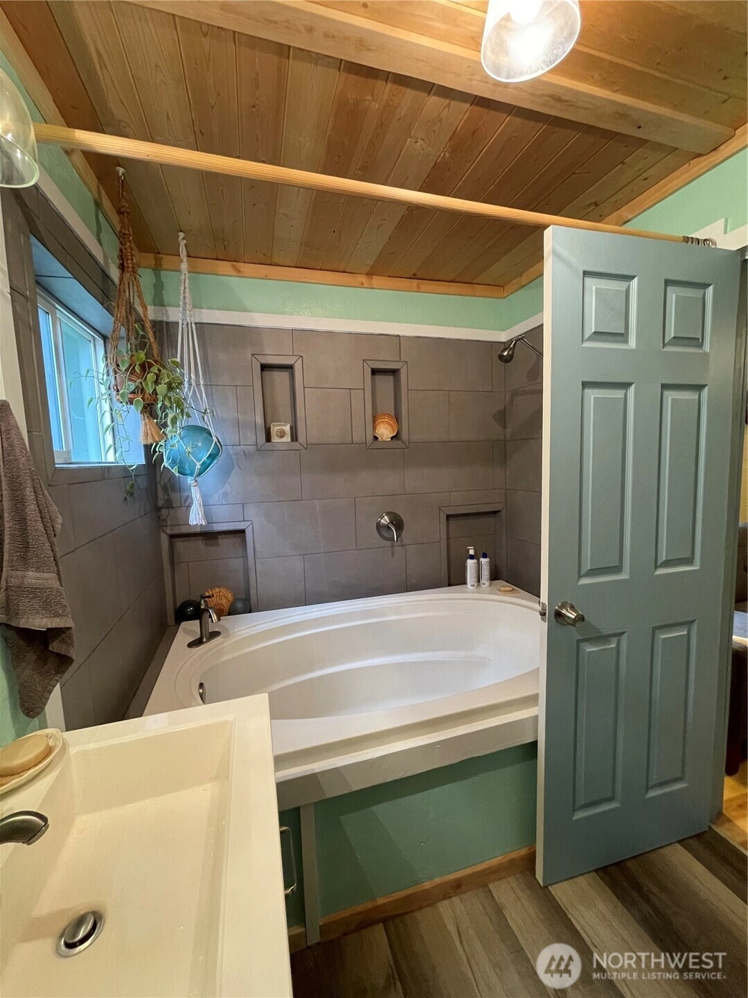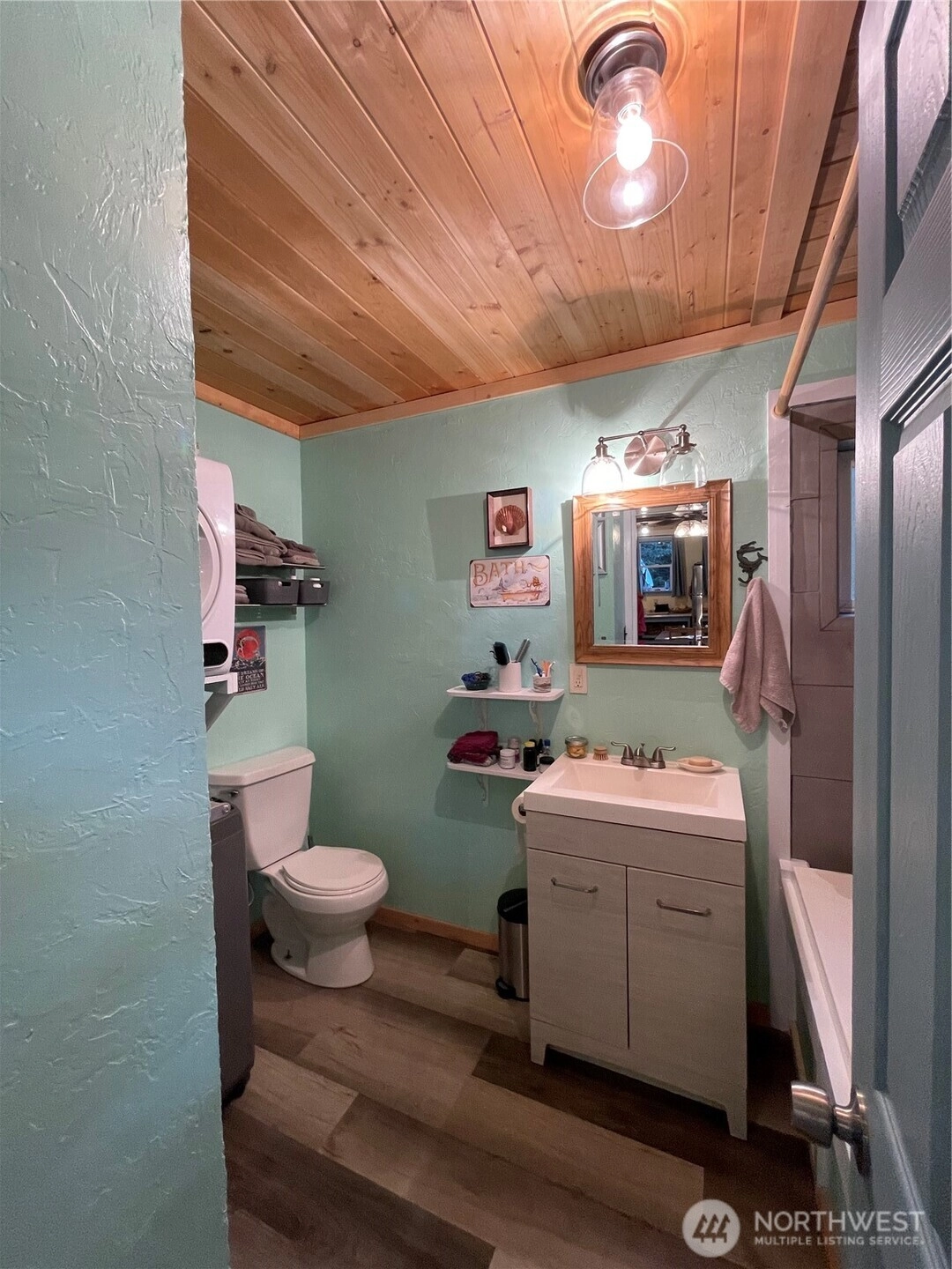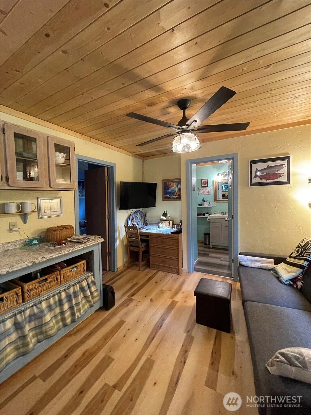 TINY HOUSE, BIG LOT, DOWN A ROAD LESS TRAVELED. On a secluded dead end road in the forest this incredible tiny home shines. Much to offer for low asking price. Double lot room to add garage, newer large shed + storage in pump house. Cedar fence, fire pit, patio, garden, ample R.V. parking area. Beautiful 2021 Forest River 23 ft. R.V. available outside escrow. You'll say Home Sweet Home as you step into this enchanted cottage. Vintage cabin with newer roof had a renovation that transformed it into a comfortable & inviting living space. User friendly kitchen has propane. Plenty of cupboards & counters. Big trees & open space. Park like setting, quiet oasis. Awesome huge soaker tub with tile. W & D. Check out this gem quick before it's gone!!