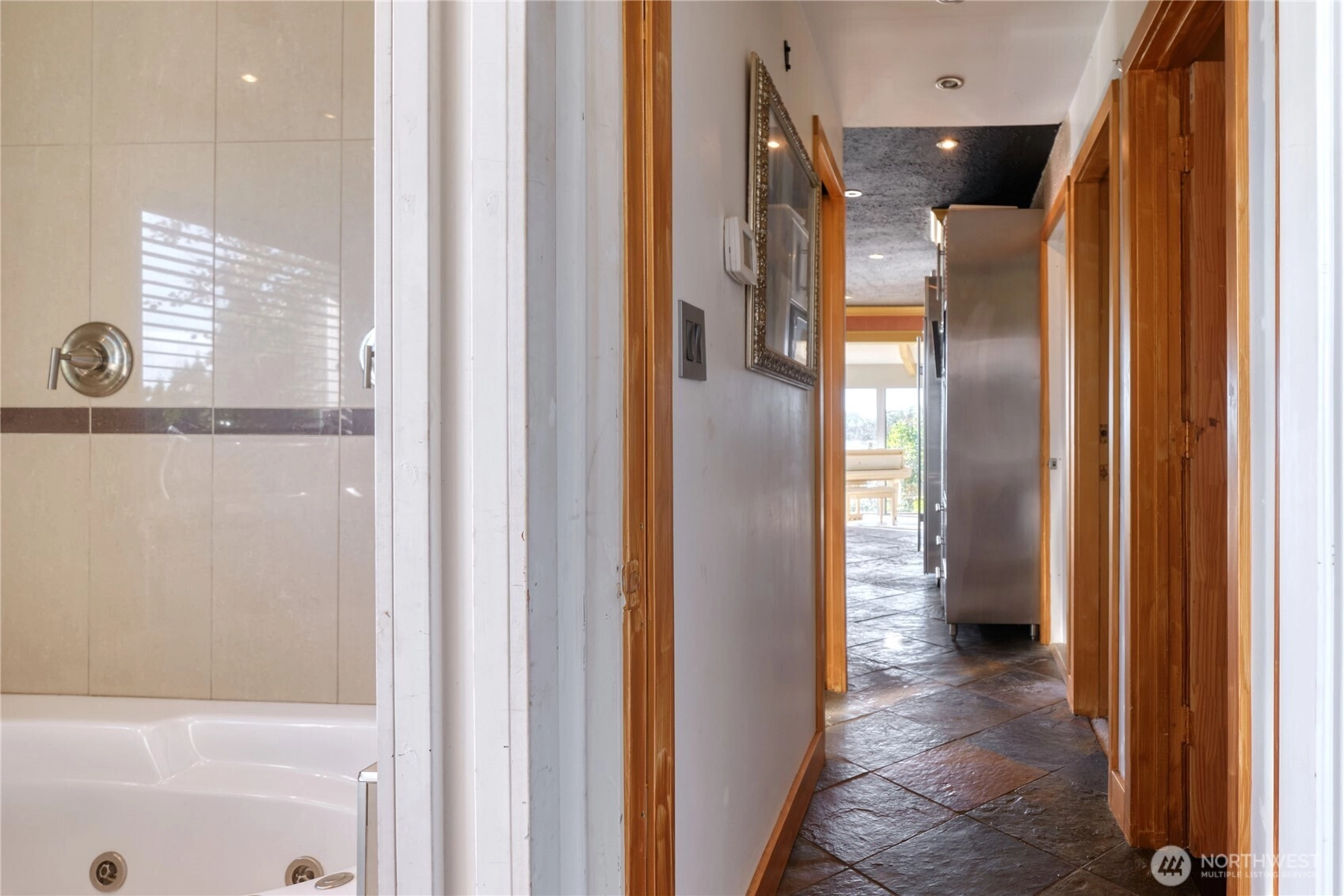 Spectacular Oceanview! This bright and inviting 3-bedroom, 3-bathroom residence offers exceptional versatility with multiple flex rooms and a fully finished walk-out basement—ideal for an in-law suite or guest accommodation. Natural light fills the home. Enjoy breathtaking sunsets from the 220 sqft sunroom or the expansive south-facing deck. The chef-inspired gourmet kitchen is a standout, featuring sleek stainless steel countertops, premium appliances, and custom drawers. The daylight basement also includes a full bathroom, laundry area, and a large workshop space.Priced well below replacement, this is a rare find in sunny Point Roberts—just a short walk to Lily Point Marine Park, offering 275 acres of walking trails & beach access.