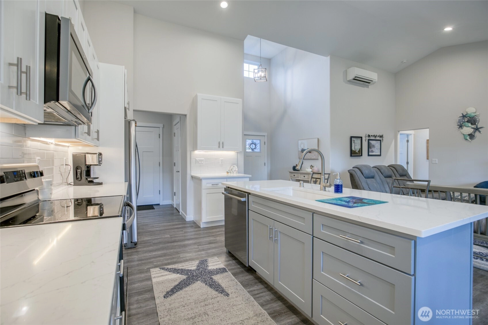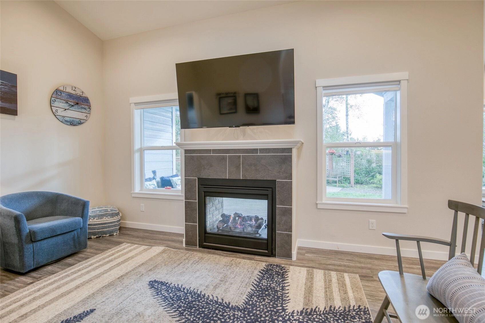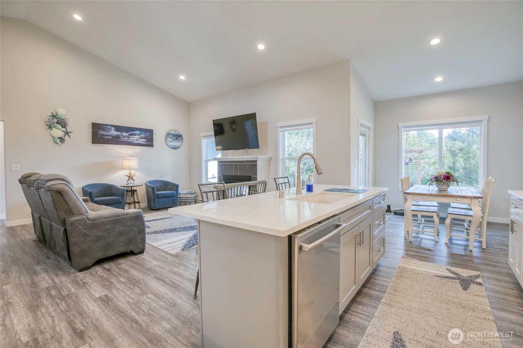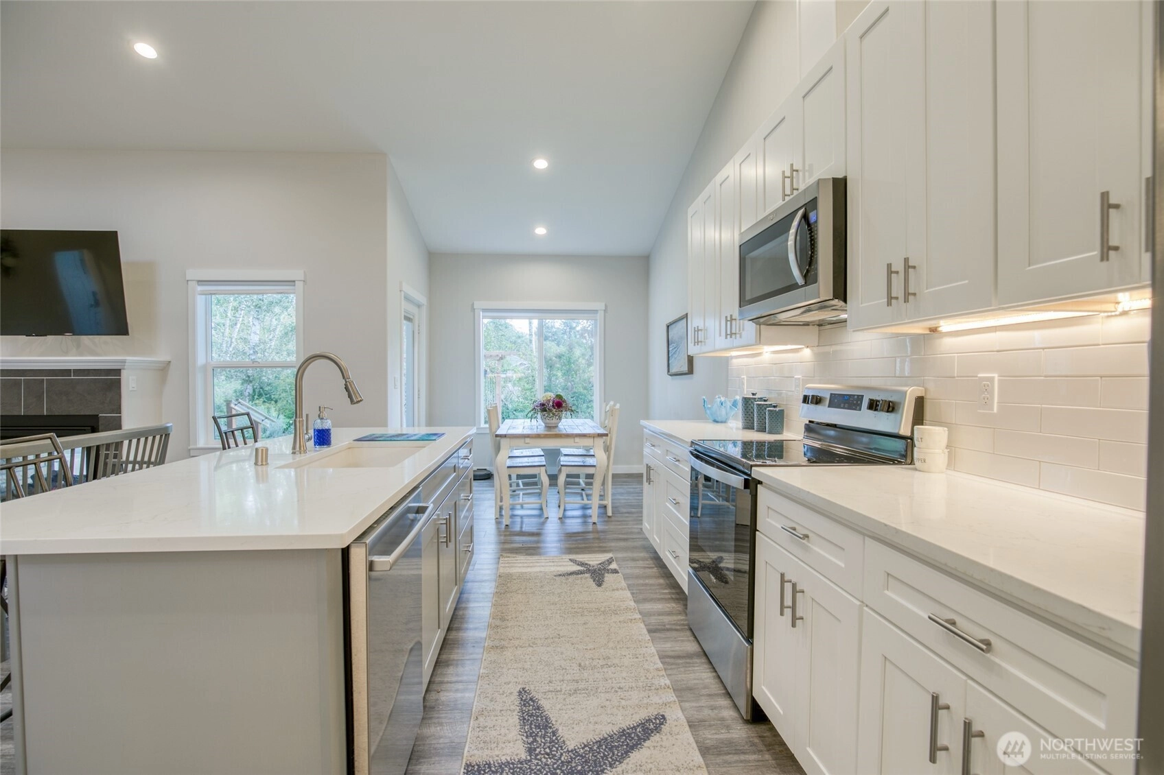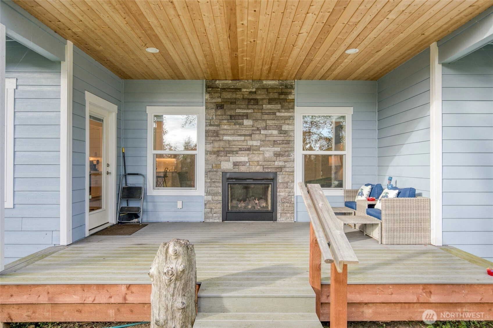 This stunning 3 bedroom, 2 bath home showcases high-quality craftsmanship & thoughtful design throughout. Enjoy a bright & open concept living space featuring quartz countertops, stainless steel appliances, & stylish finishes. The smart split floor plan places the primary suite on one side of the home, while the two additional bedrooms & full bath are on the other offering ideal privacy. A striking see through fireplace connects the cozy living room to the spacious back deck, creating a seamless indoor outdoor lifestyle perfect for relaxing or entertaining. Step outside to a fully fenced and beautifully landscaped backyard, complete with a garden.