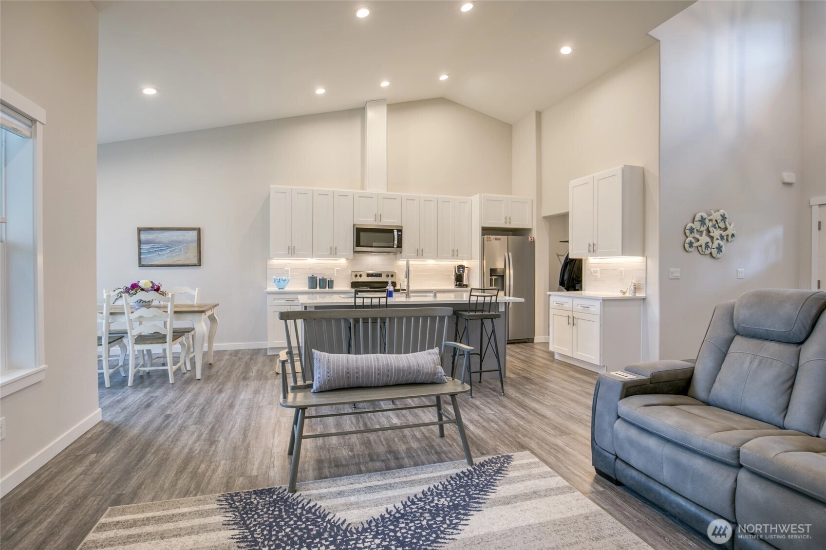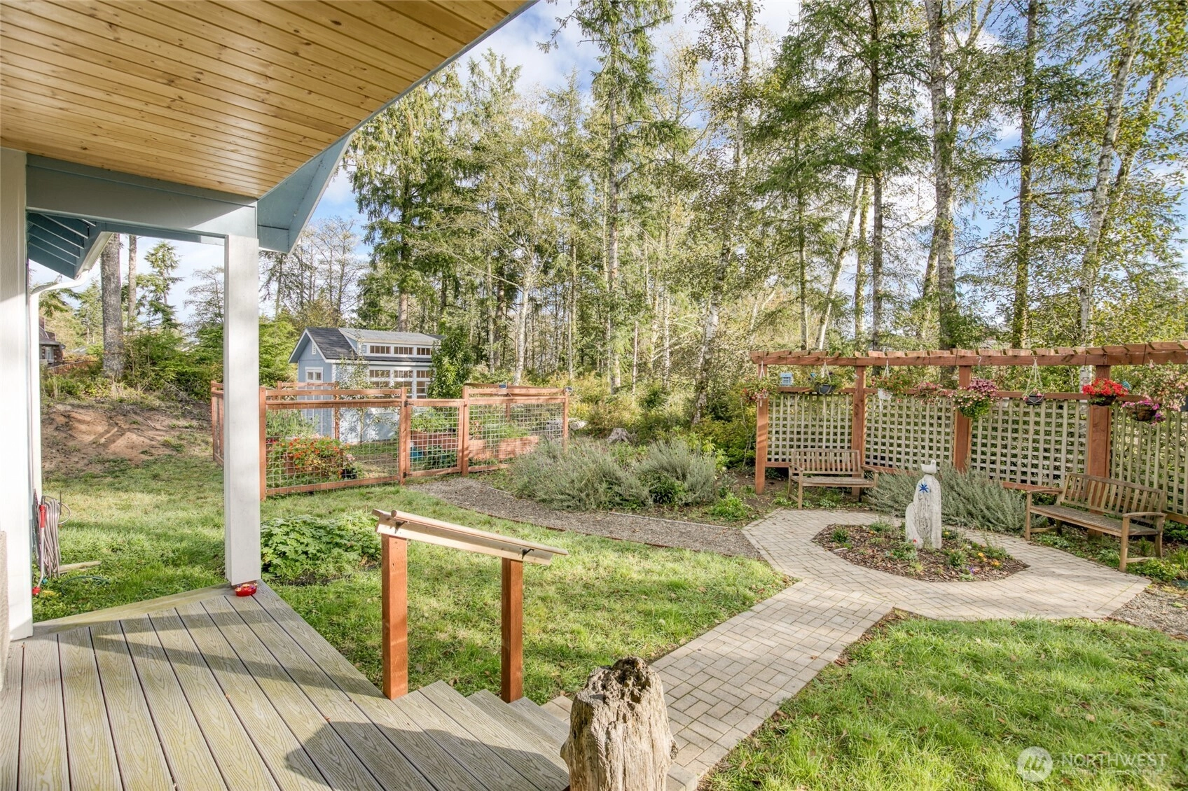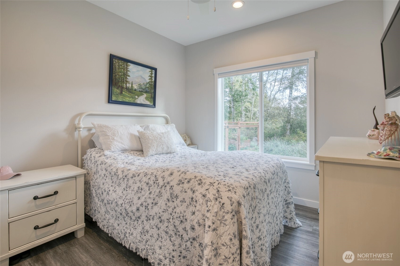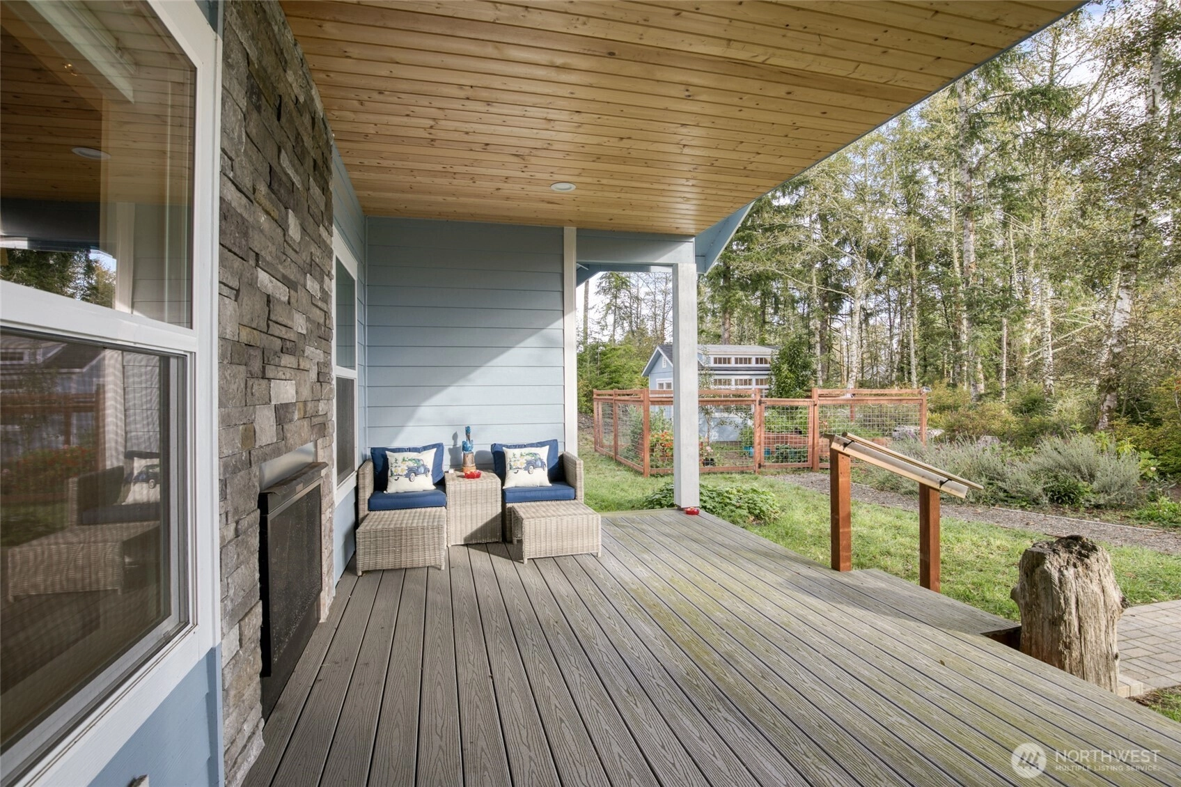This stunning 3 bedroom, 2 bath home showcases high-quality craftsmanship & thoughtful design throughout. Enjoy a bright & open concept living space featuring quartz countertops, stainless steel appliances, & stylish finishes. The smart split floor plan places the primary suite on one side of the home, while the two additional bedrooms & full bath are on the other offering ideal privacy. A striking see through fireplace connects the cozy living room to the spacious back deck, creating a seamless indoor outdoor lifestyle perfect for relaxing or entertaining. Step outside to a fully fenced and beautifully landscaped backyard, complete with a garden.