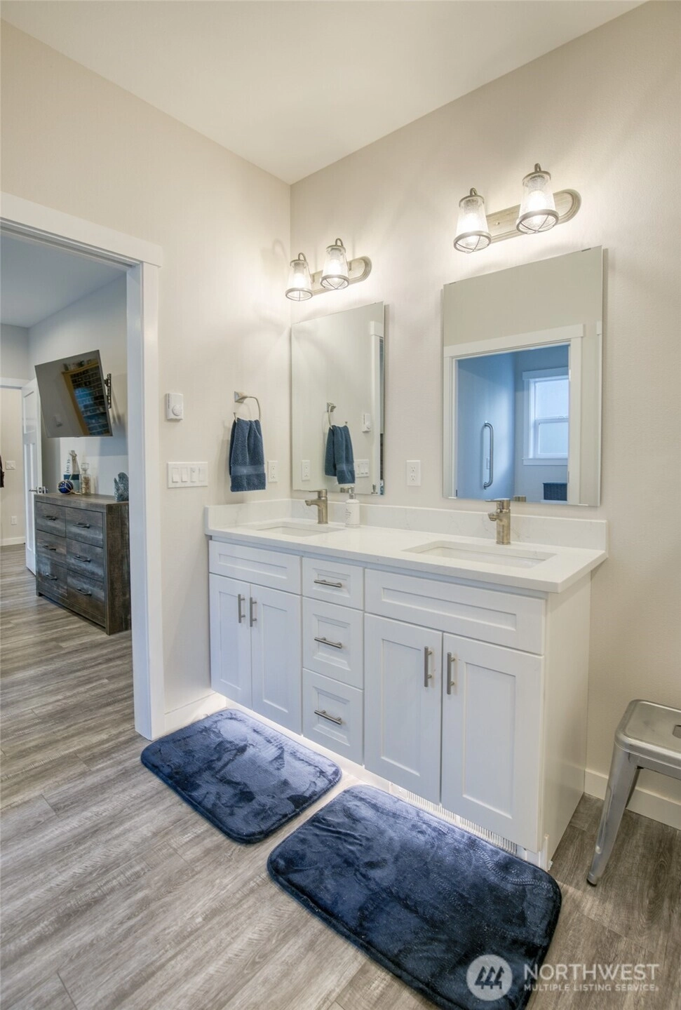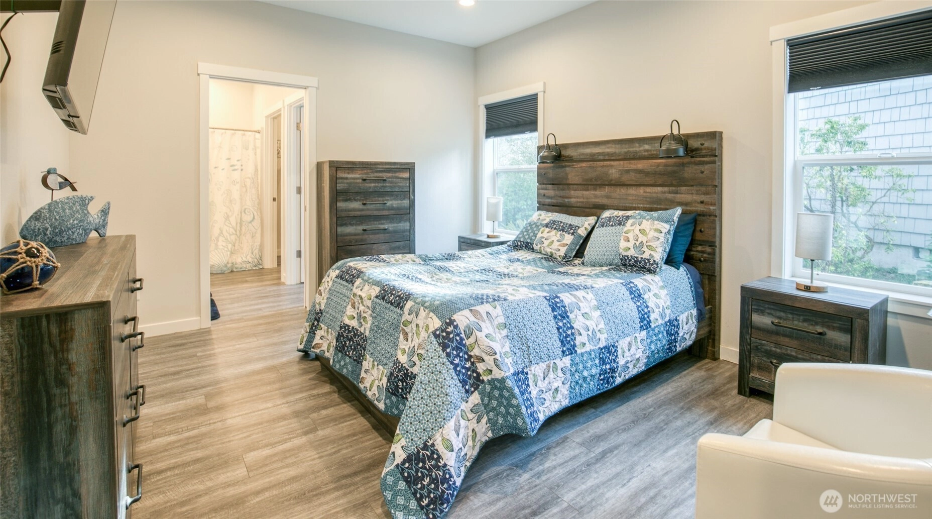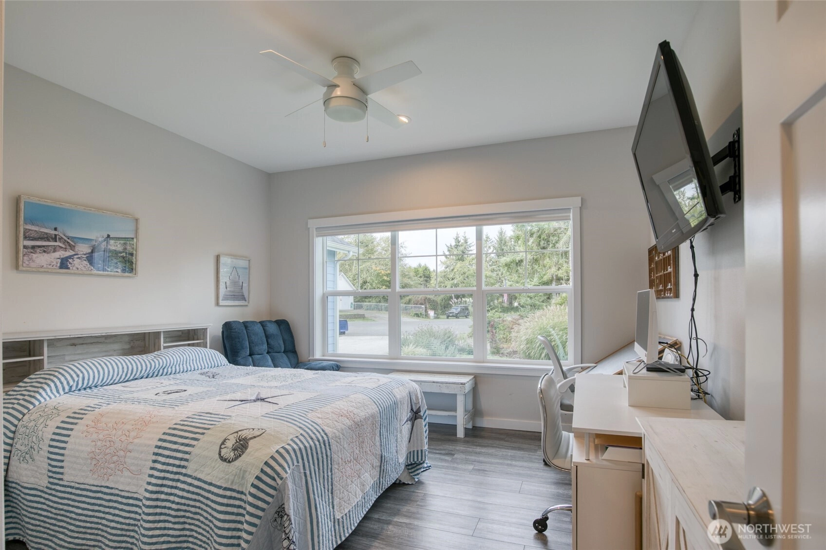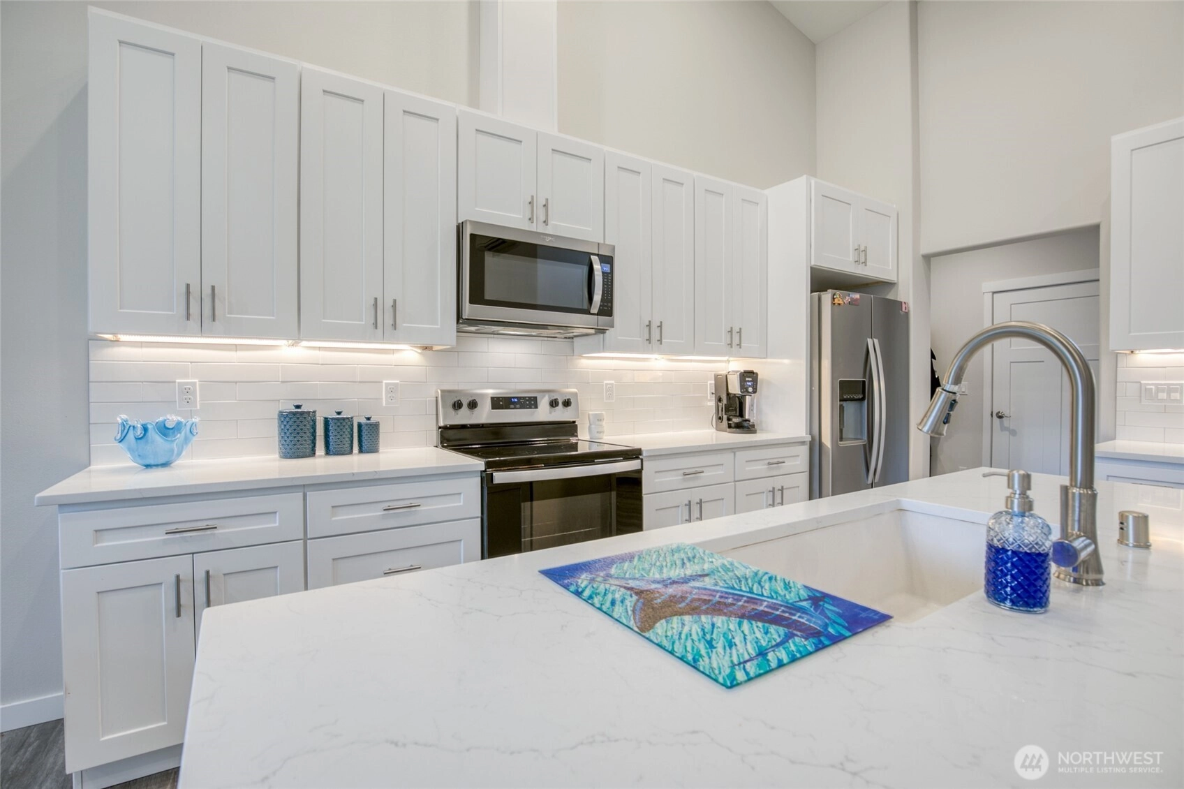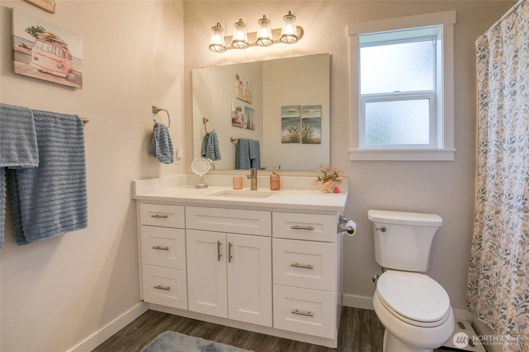 This stunning 3 bedroom, 2 bath home showcases high-quality craftsmanship & thoughtful design throughout. Enjoy a bright & open concept living space featuring quartz countertops, stainless steel appliances, & stylish finishes. The smart split floor plan places the primary suite on one side of the home, while the two additional bedrooms & full bath are on the other offering ideal privacy. A striking see through fireplace connects the cozy living room to the spacious back deck, creating a seamless indoor outdoor lifestyle perfect for relaxing or entertaining. Step outside to a fully fenced and beautifully landscaped backyard, complete with a garden.