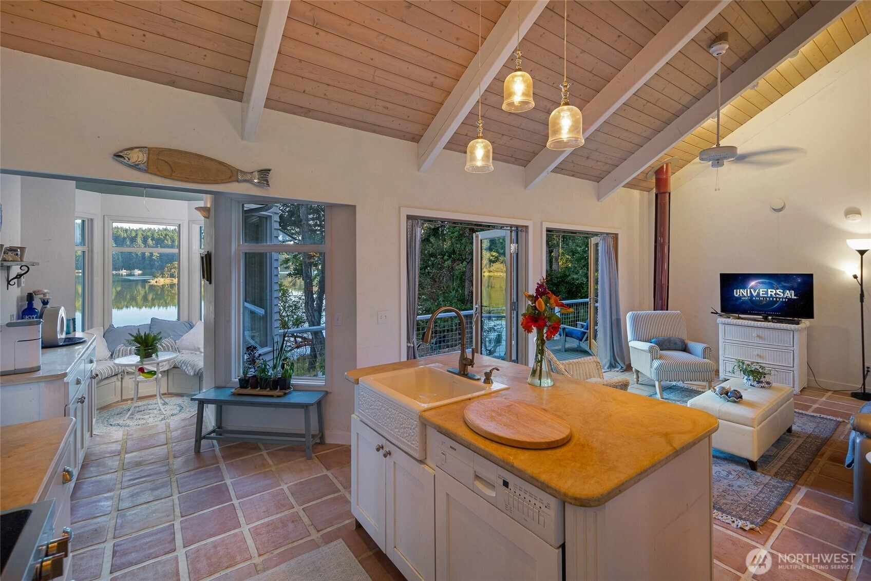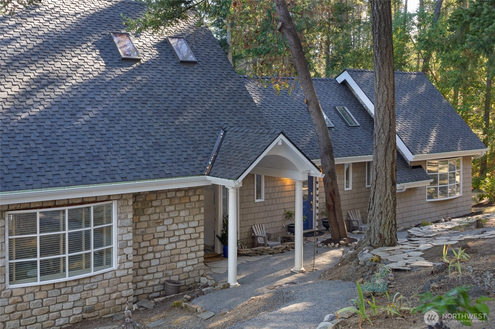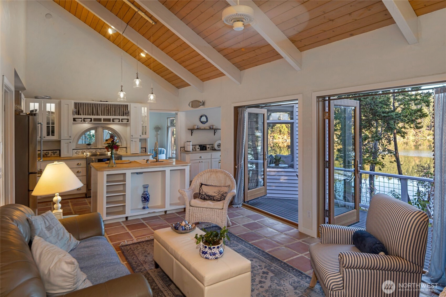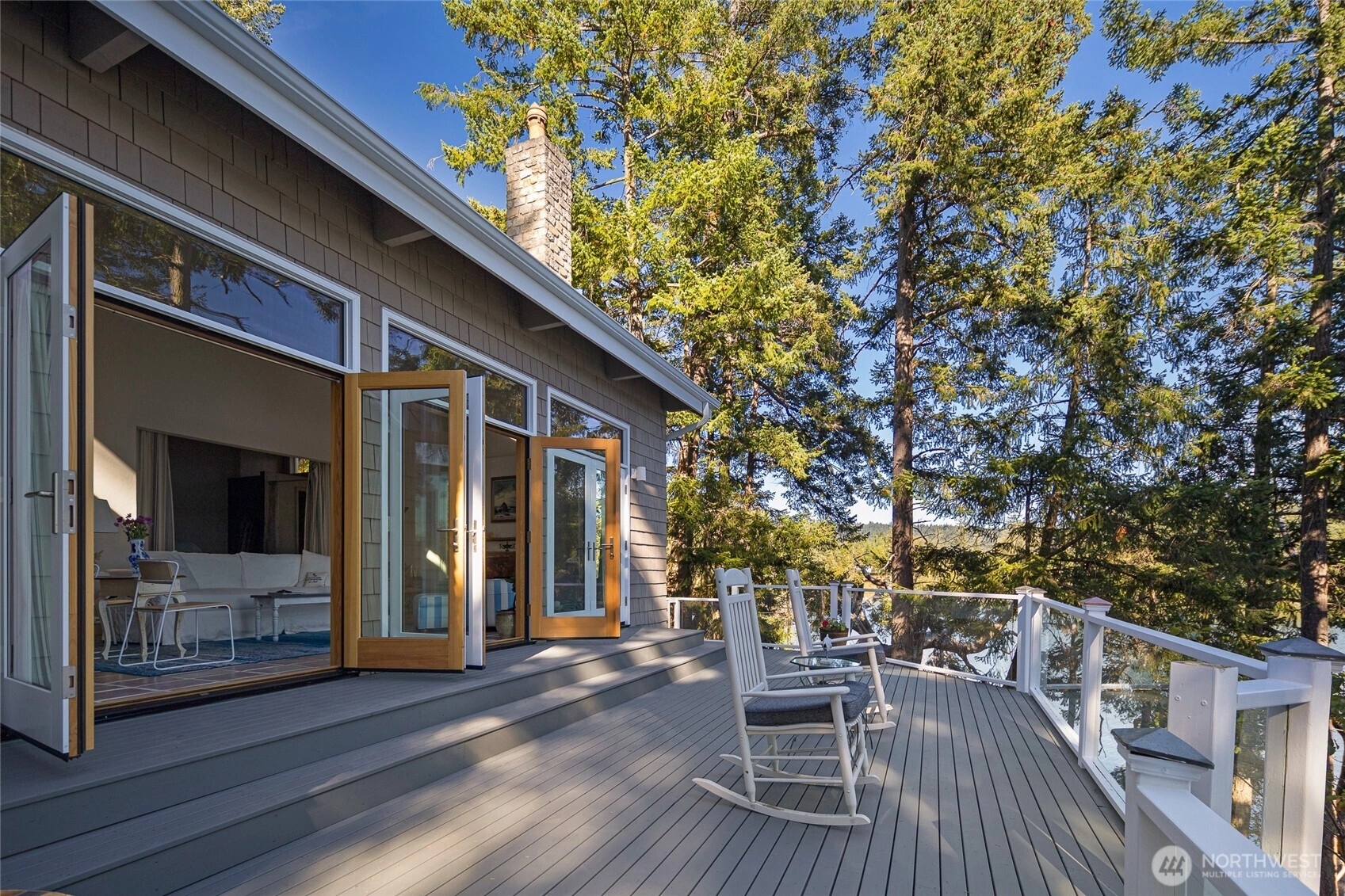 Waterfront home on Mitchell Bay offers charm, comfort, and stunning views. The main house features two primary bedrooms with en-suites, high ceilings, a kitchen with dining nook, and French doors that open to a spacious deck overlooking calming tidelands. Enjoy modern updates including a newer roof, fiber internet, and a sophisticated rainwater catchment system. A detached guest studio with sleeping loft provides additional space for visitors or creative use. Property includes tidelands, making this an ideal retreat to relax and take in the serene bay setting.