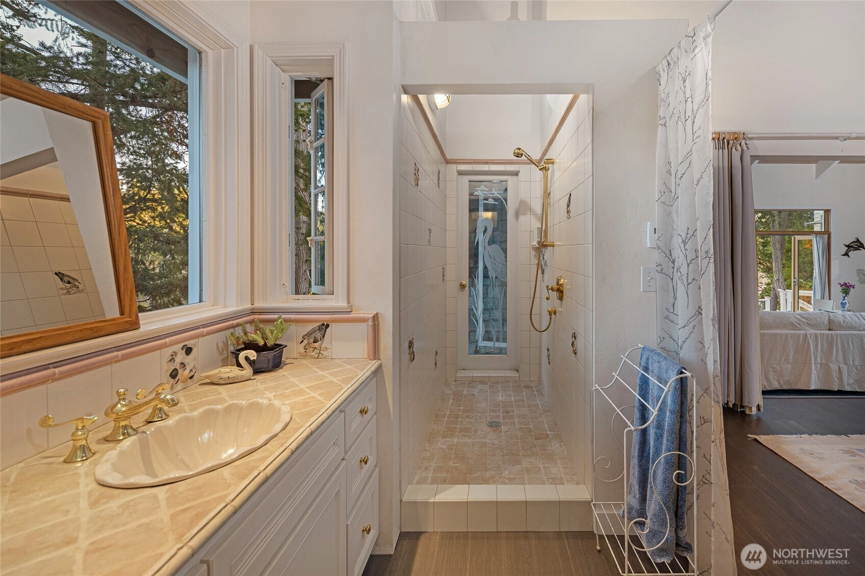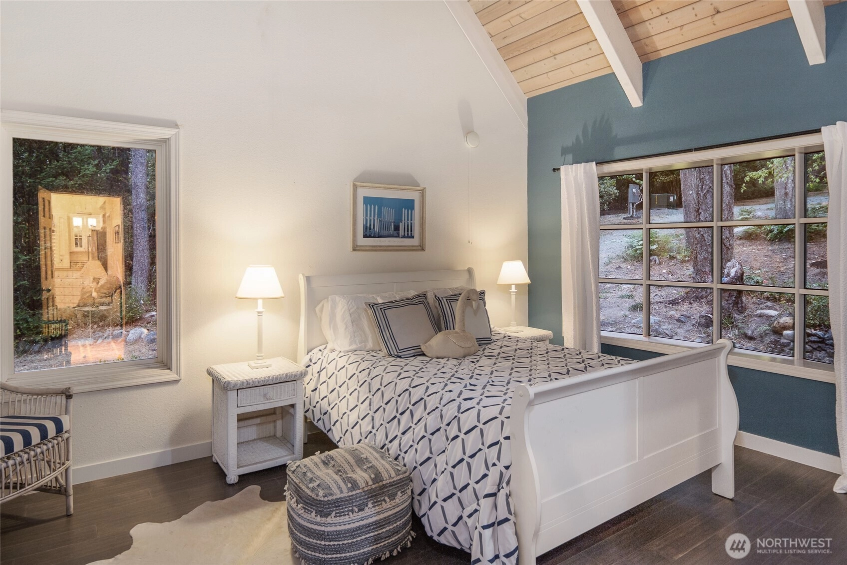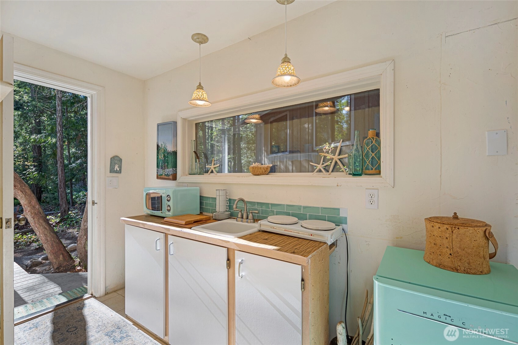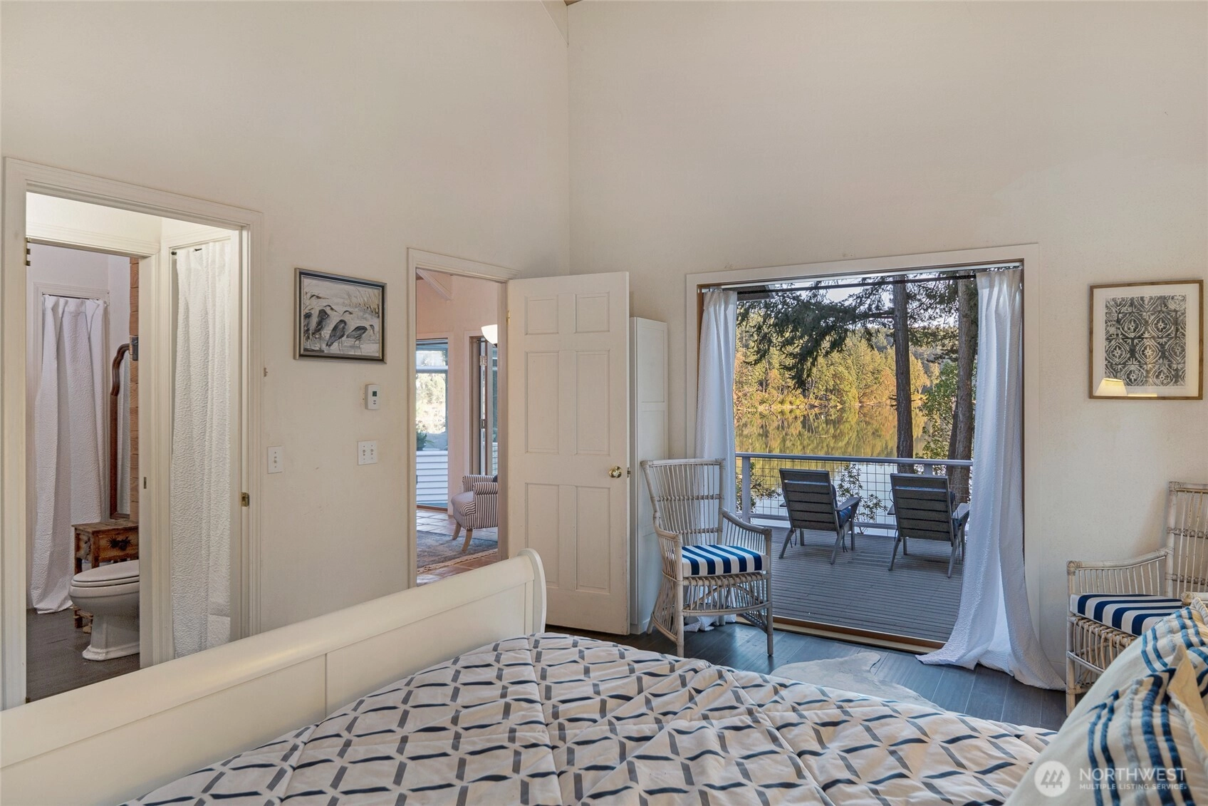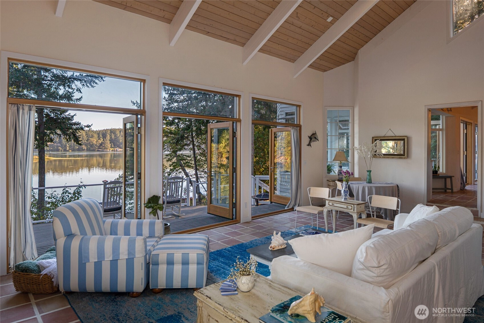 Waterfront home on Mitchell Bay offers charm, comfort, and stunning views. The main house features two primary bedrooms with en-suites, high ceilings, a kitchen with dining nook, and French doors that open to a spacious deck overlooking calming tidelands. Enjoy modern updates including a newer roof, fiber internet, and a sophisticated rainwater catchment system. A detached guest studio with sleeping loft provides additional space for visitors or creative use. Property includes tidelands, making this an ideal retreat to relax and take in the serene bay setting.