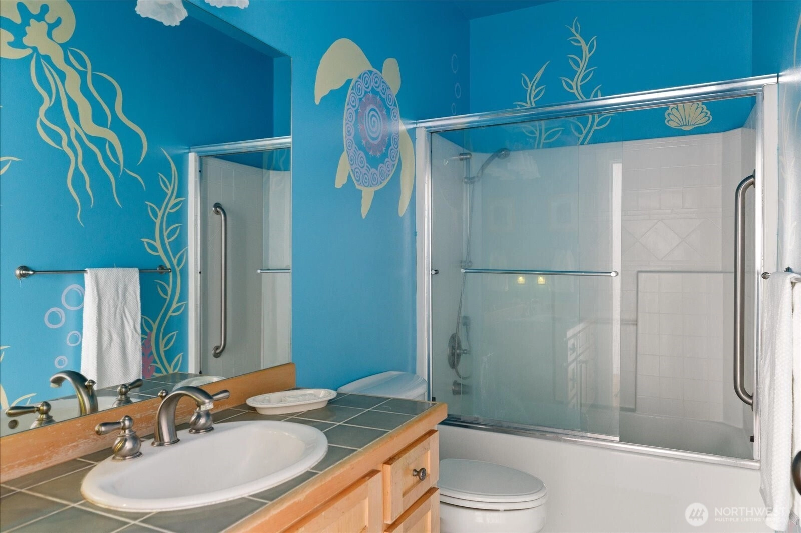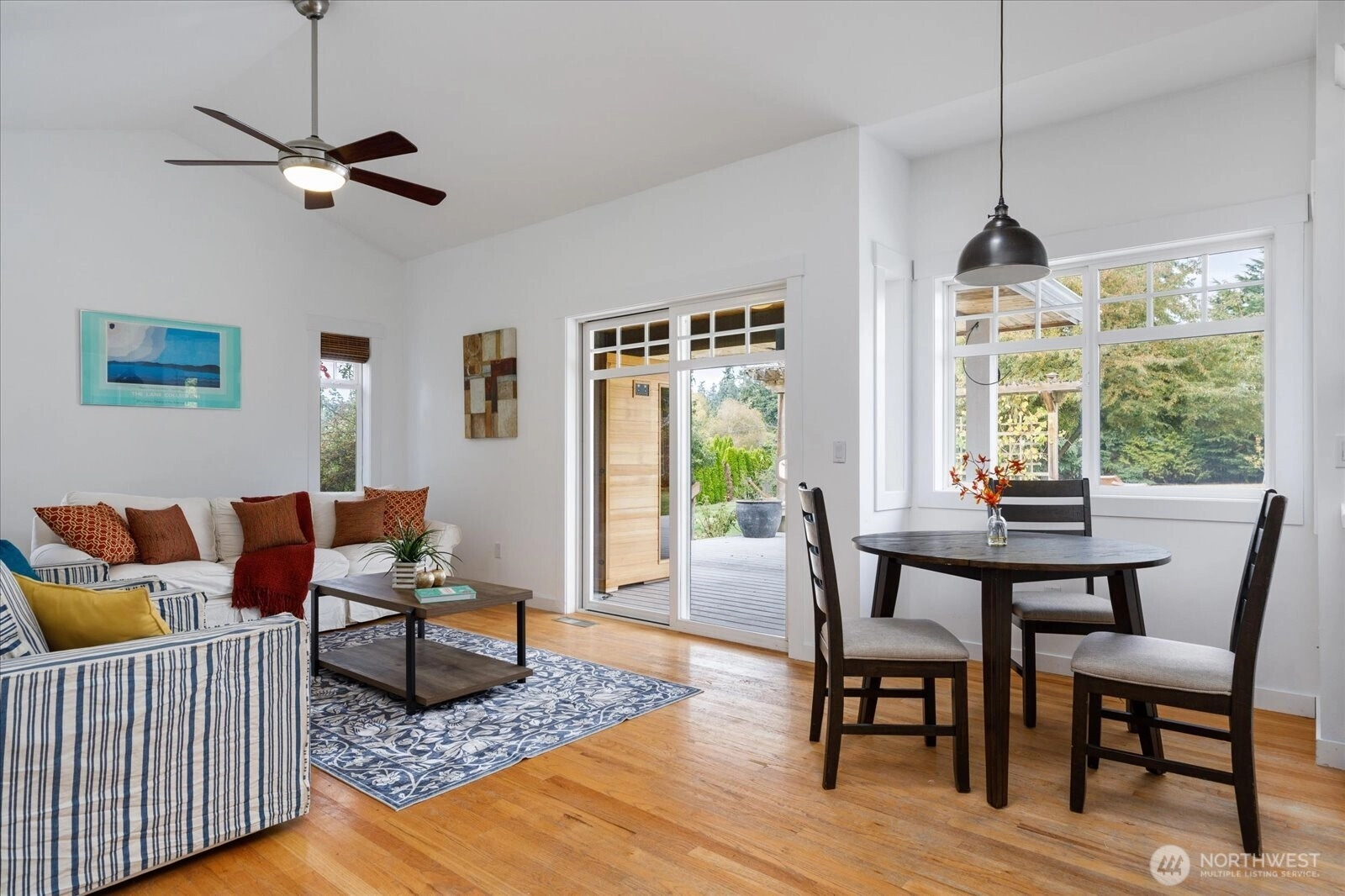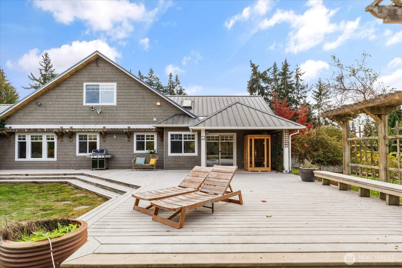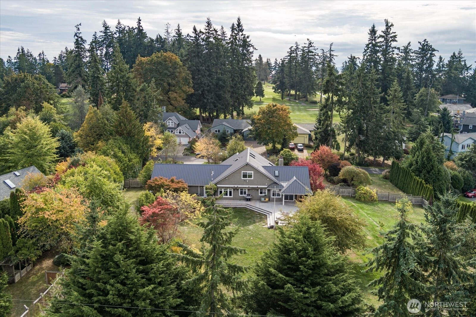 FIND YOUR HAPPY PLACE! on over an acre within the Useless Bay Golf and Country Club Community. Newer Metal roof! Desirable floorplan. Large Primary on the Main with 5-piece ensuite bath and plenty of closet space. Well placed skylights bring in the light. Ready for Fall and Winter, home equipped with newer generator. Beautifully situated on a sunny fruit tree lined acre! Enjoy the over-sized deck overlooking the fully fenced large yard and garden. Upstairs you'll find a library and large bonus room. A beautiful home with so much additional potential to be your dream home, don't overlook this active listing, worth the visit. Private beach access, community pool, clubhouse, tennis courts and more.