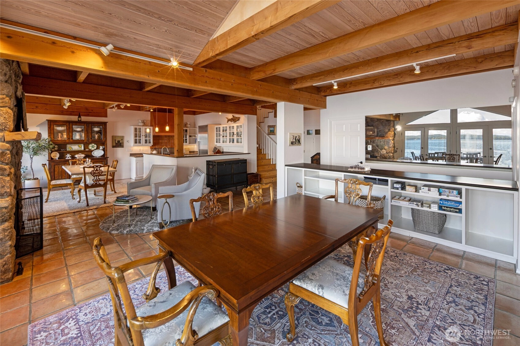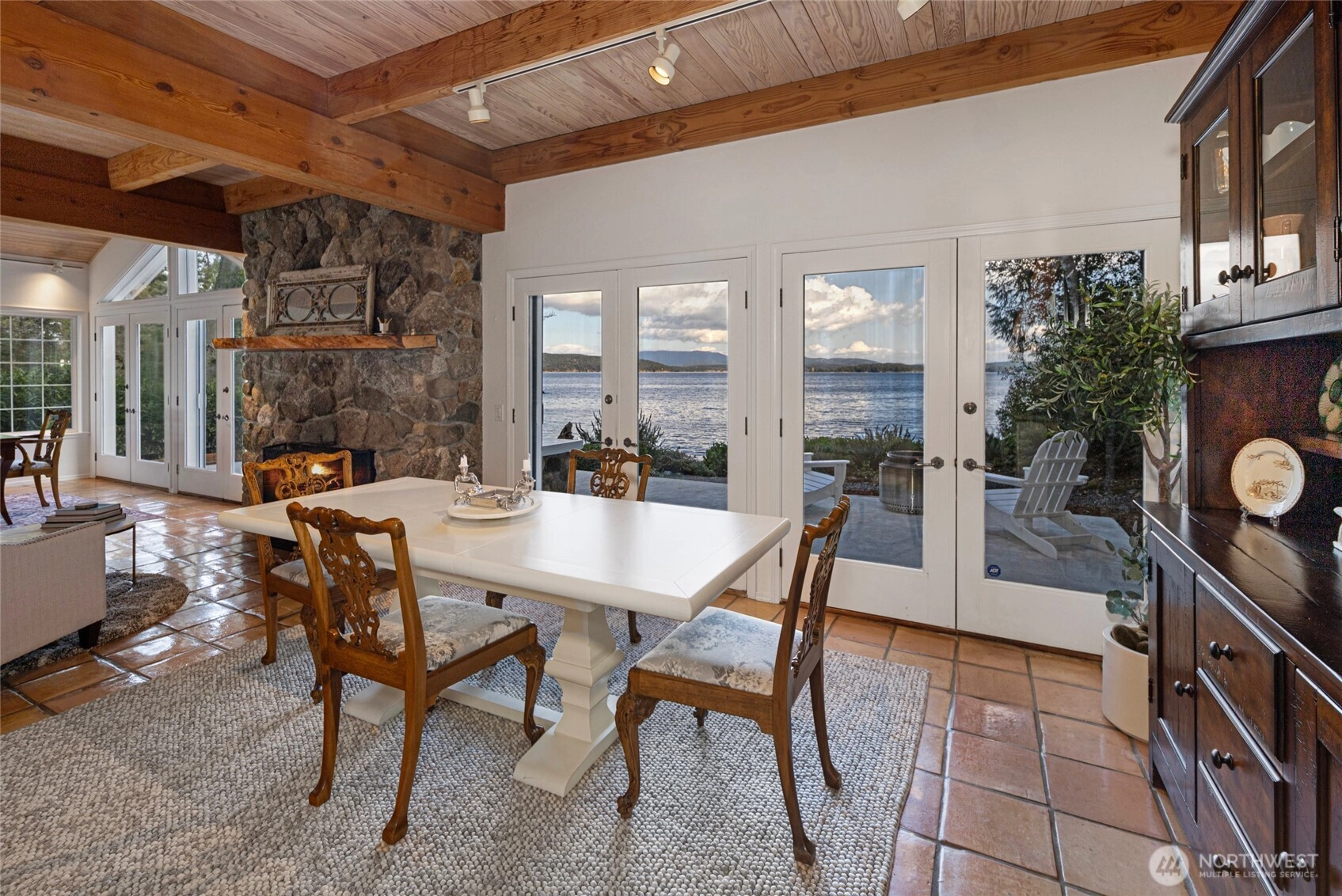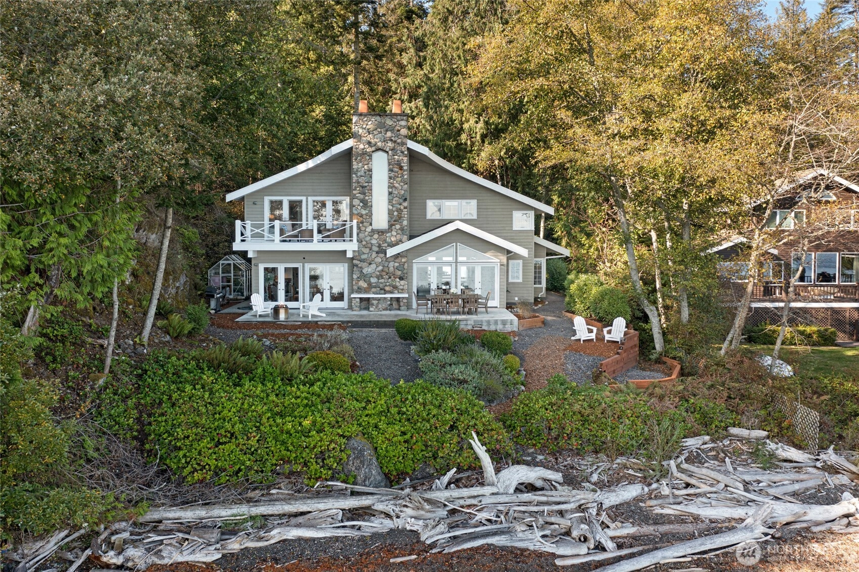Experience refined waterfront living in Mineral Point, where elegance meets island tranquility. This east-facing, low-bank property with a private beach offers easy access, just steps from your patio to the shoreline for kayaking or beach combing. The main residence features three bedrooms and sophisticated living spaces designed for comfort and style. A one-bedroom guest house sits above the three-car garage, complemented by two versatile studio spaces ideal for art, woodworking, or recreation. Sold turnkey furnished with high-end pieces, this exceptional estate is currently in the process of permitting a mooring buoy and is perfectly situated between Roche Harbor and Friday Harbor for the ultimate island lifestyle.