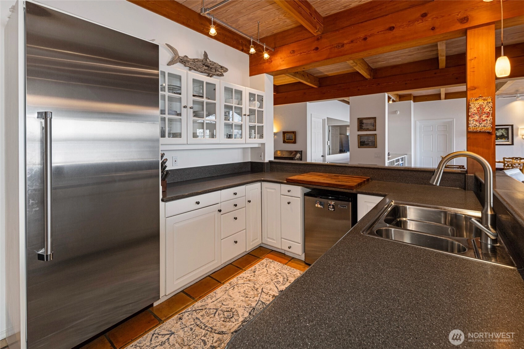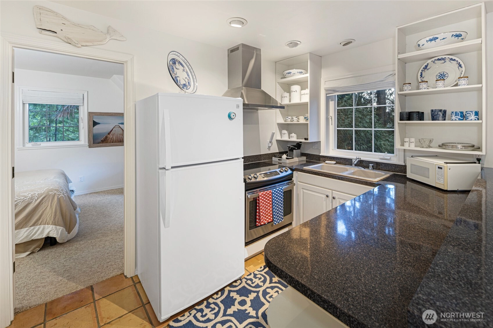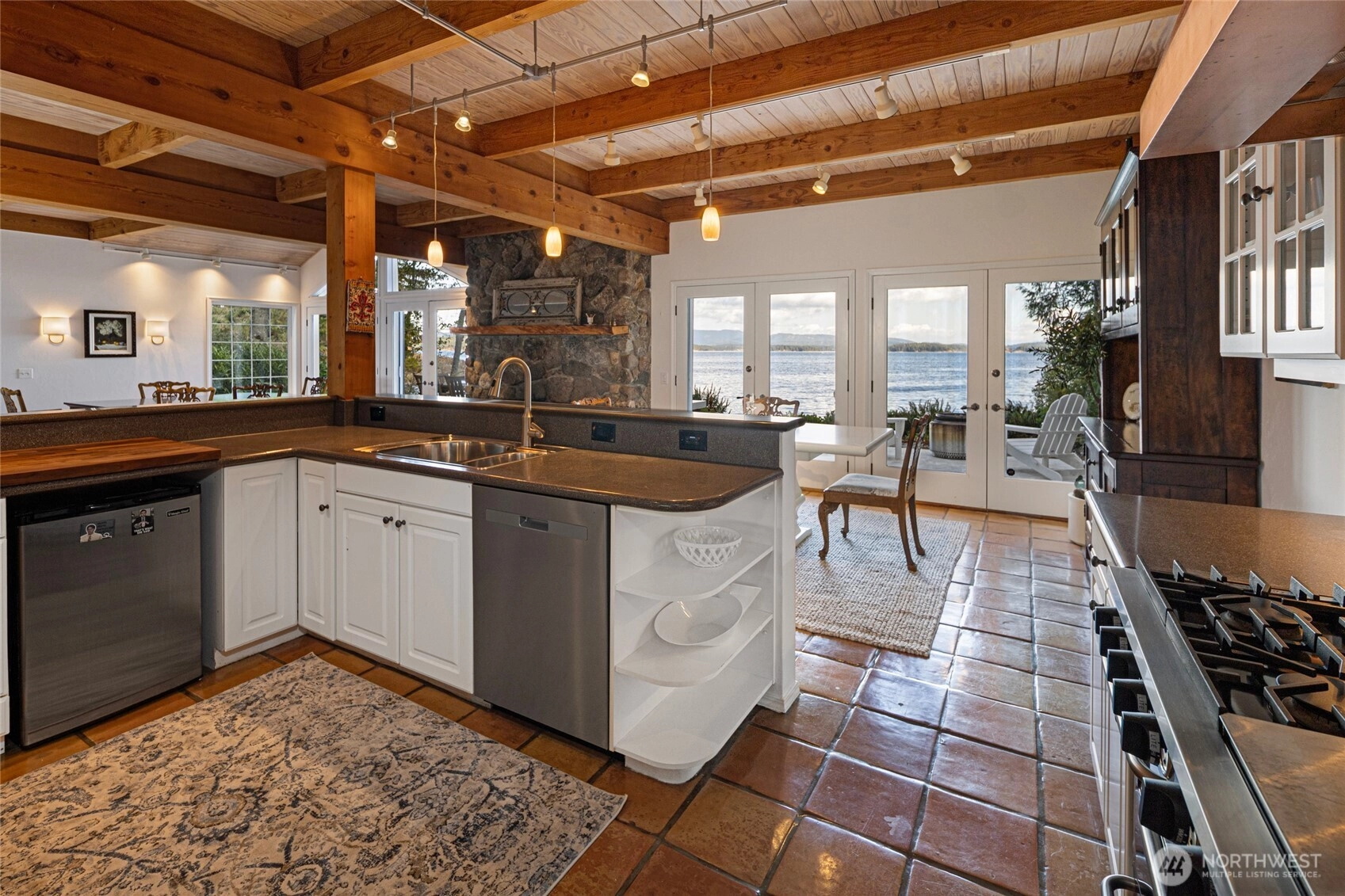 Experience refined waterfront living in Mineral Point, where elegance meets island tranquility. This east-facing, low-bank property with a private beach offers easy access, just steps from your patio to the shoreline for kayaking or beach combing. The main residence features three bedrooms and sophisticated living spaces designed for comfort and style. A one-bedroom guest house sits above the three-car garage, complemented by two versatile studio spaces ideal for art, woodworking, or recreation. Sold turnkey furnished with high-end pieces, this exceptional estate is currently in the process of permitting a mooring buoy and is perfectly situated between Roche Harbor and Friday Harbor for the ultimate island lifestyle.
