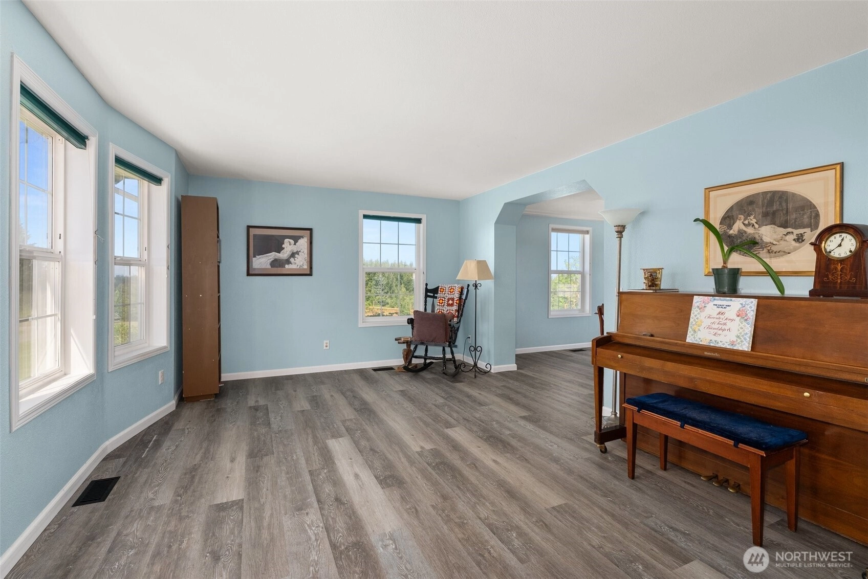 Breathtaking mountain views on just under 5 acres! This spacious 3 bed, 3 bath home includes a den, two living areas, and a bright, beautiful kitchen perfect for entertaining. Enjoy brand-new flooring throughout and mature landscaping that offers privacy and charm. The property features a two car detached garage plus a large shop with a lean-to, ideal for hobbyists or professionals—equipped with a 9,000 lb 2-post lift, 2-stage air compressor, insulated walls, and RV hookups. A rare find with room to live, work, and play in one stunning location!