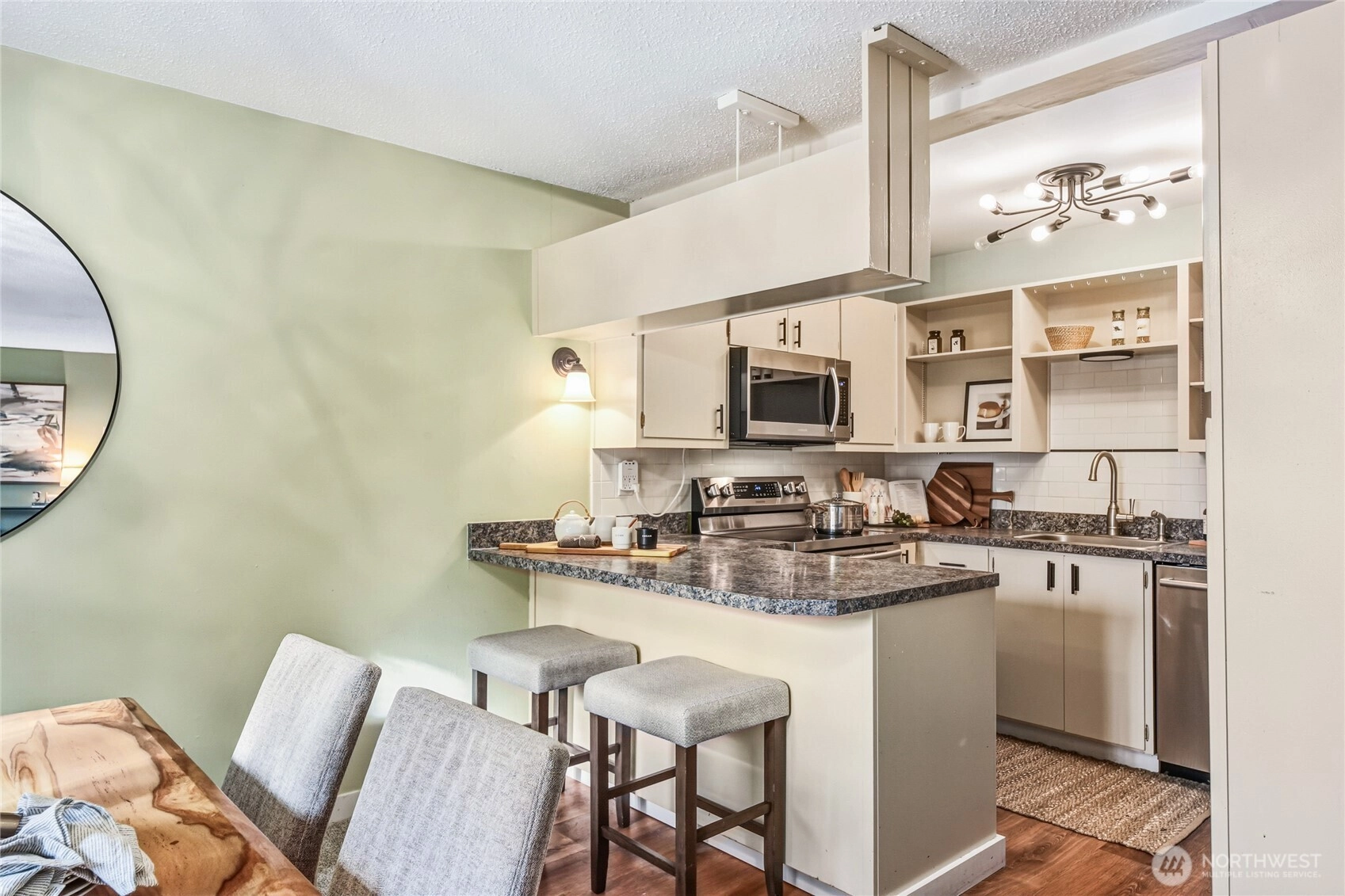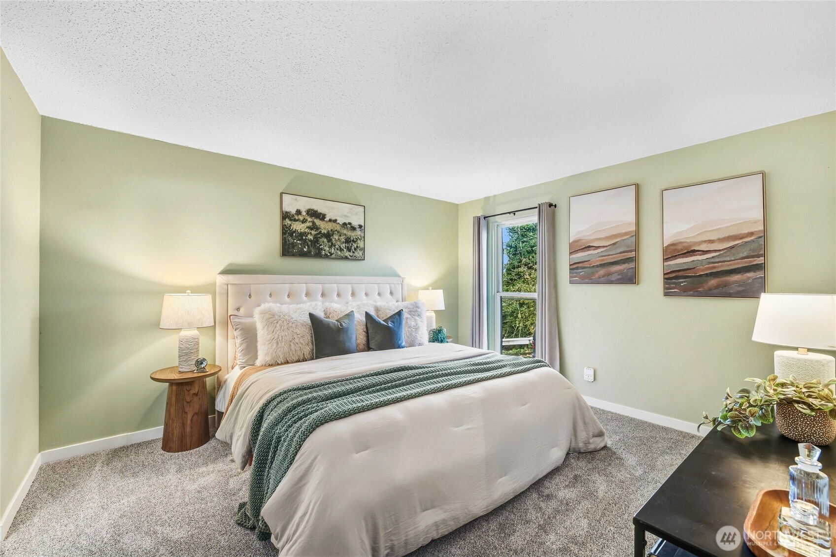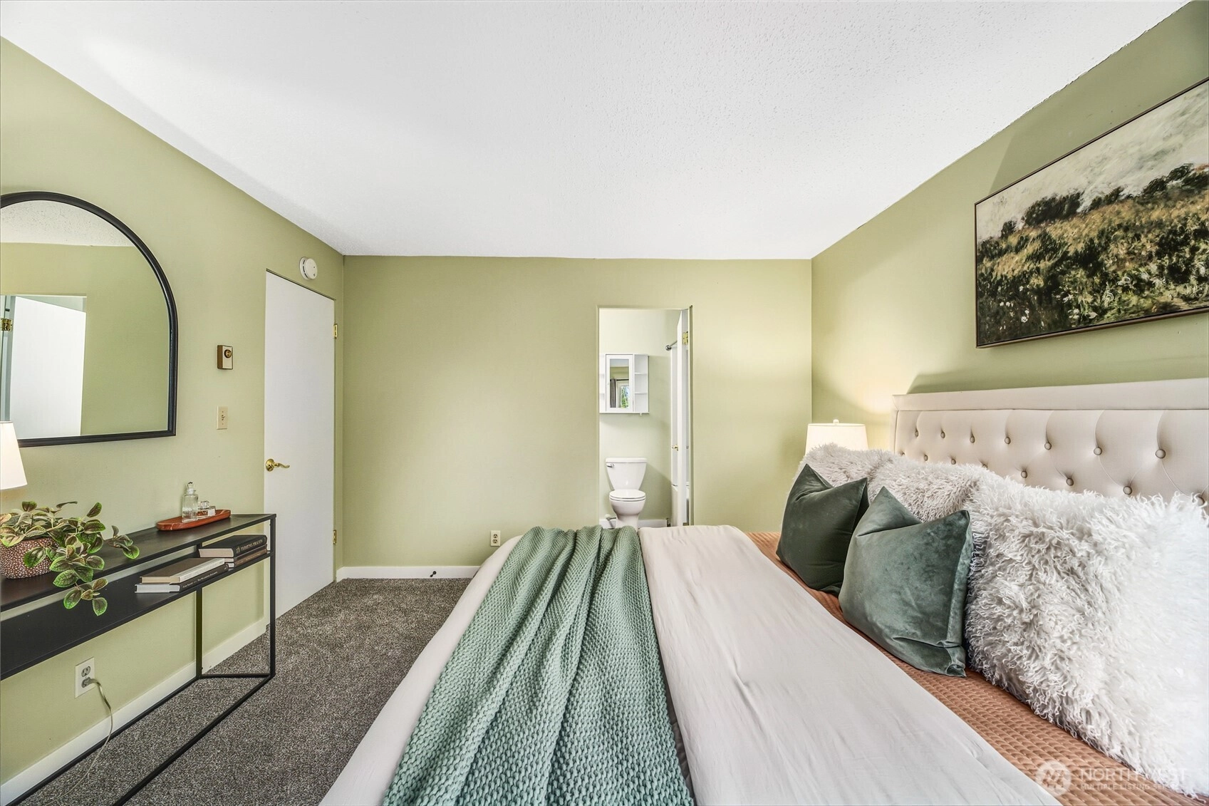 Welcome home to this spacious, turn-key 1 bedroom, 1.5 bath retreat! Enjoy an open living and dining area that flows to a private, tree-lined balcony—perfect for relaxing outdoors. Freshly updated with brand-new carpet in the living room and bedroom. Community amenities include a pool, clubhouse, and athletic courts, with HOA dues covering water, sewer, and garbage. Conveniently located just 15 minutes to SeaTac and downtown Bellevue, with quick access to I-5, I-405, and Hwy 167. Ideal for first-time buyers, downsizers, or investors—pet-friendly, no rental cap, and FHA approved! Comes with a private parking spot, shared laundry in-building, plus plenty of guest parking.