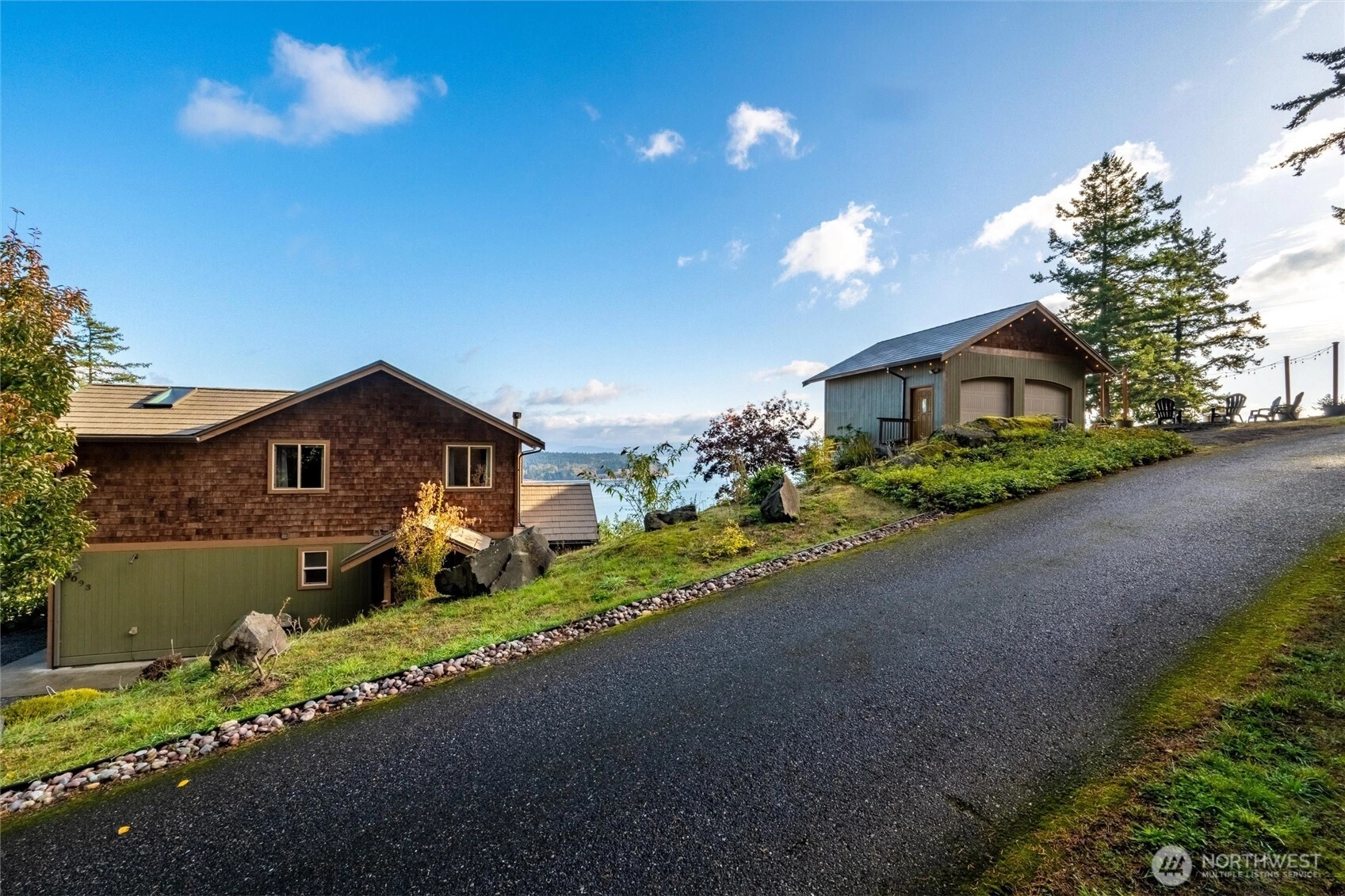 For those who treasure nature and admire true craftsmanship. This rare find is perfectly positioned with breathtaking views of Mt. Baker, the Sisters, Portage Island, Hales Passage, and Canadian Coastal Range peaks—offering a scenic masterpiece. Meticulously cared for, 3bd, 2ba radiates pride of ownership. Soaring ceilings & clerestory windows frame panoramic vistas, filling home with ever-changing light & natural beauty. Enjoy newer appliances and cozy wood stove, under sturdy metal roof built to last. Nearly an acre of native landscape, sculpted stone outcroppings and tranquil privacy, detached two-car garage with workspace adds function and flexibility. A haven for those who seek lasting quality and the serenity of extraordinary views.