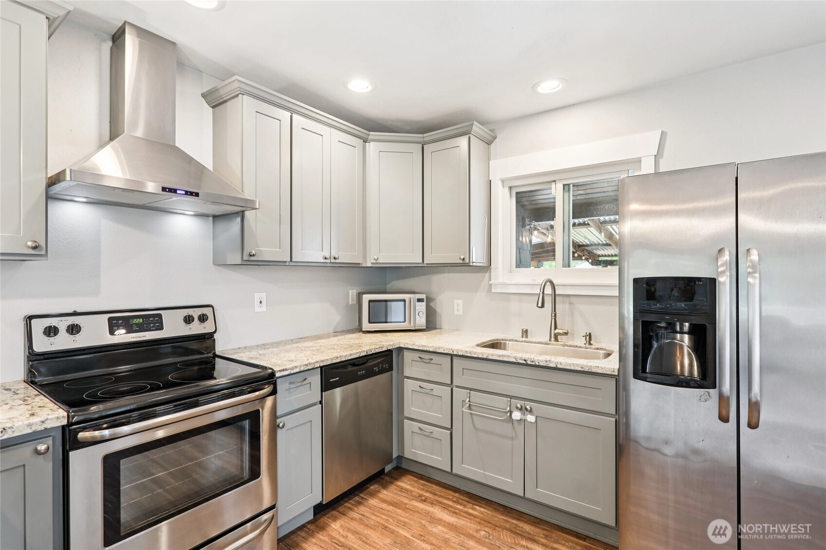 Extensively remodeled historic Craftsman on shy 1/4-acre in DT Sumner—1 block to the train station or river trail & 3 blocks to charming Main St. Timeless character shines through built-in china/curio cabinets & a cozy kitchen seating nook. Main floor primary suite boasts clawfoot tub, dual sinks, & massive walk-in shower. Full 2016 remodel incl. updated plumbing & electrical. Since 2022: new ext. paint, $85K Renewal by Andersen windows, & efficient mini-splits. Huge laundry/utility room & lower-level family room/den add flexibility. Outdoors: sports court, covered deck, level backyard, detached pass-thru garage, & extra parking. Award-winning Sumner schools. Carpet allowance and mortgage savings may be available for buyers of this listing