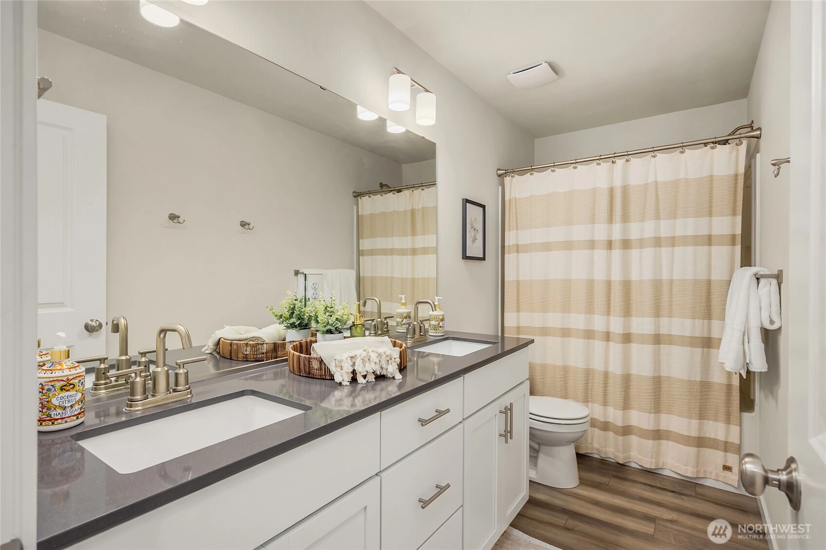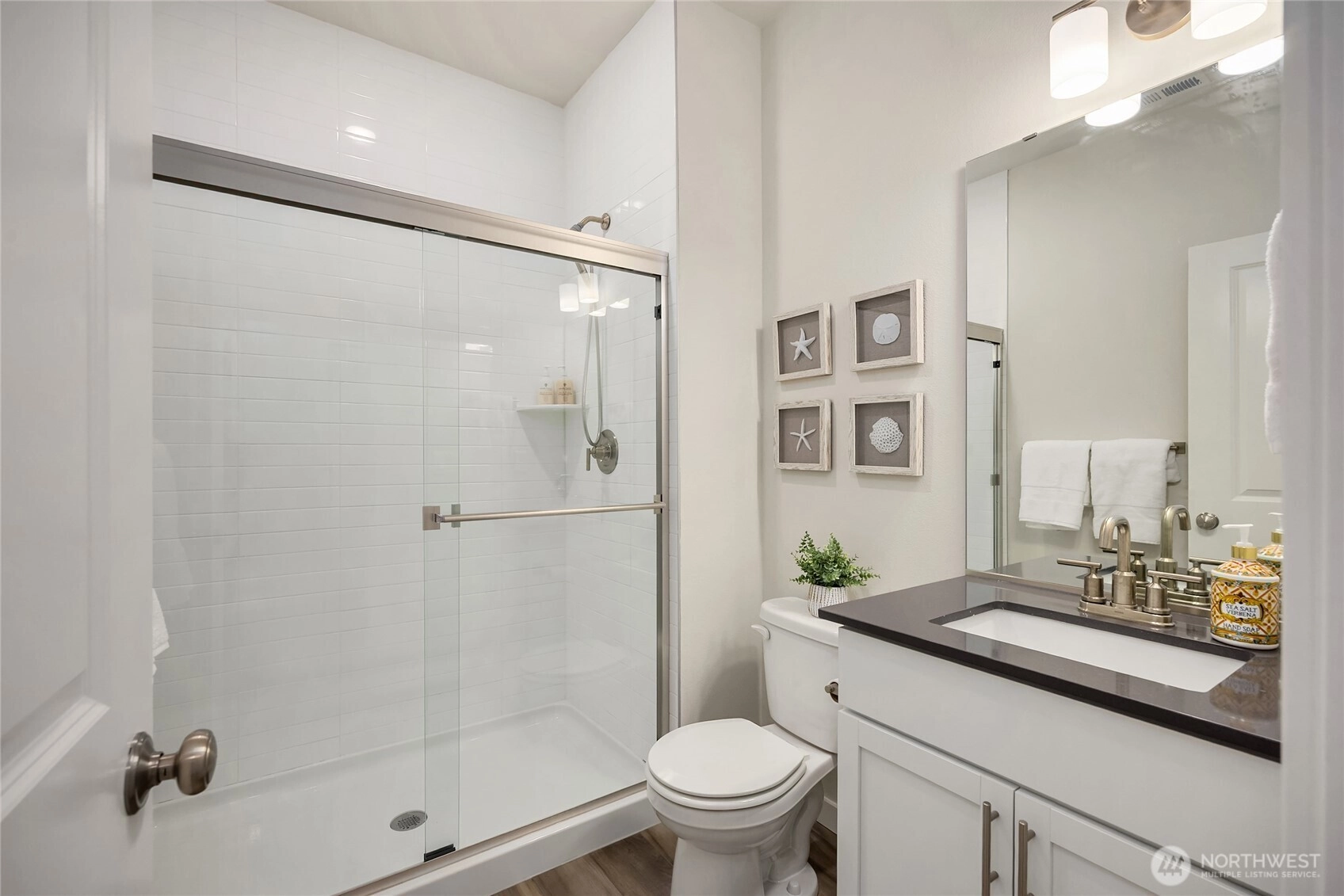 Better than new, this lightly lived-in 4-bedroom, 3-bath home in the Glennwood neighborhood features the popular Bennett plan with a main-floor bedroom and bath—ideal for guests or an office. Owner upgrades include custom closet systems, kitchen roll-out drawers, and a 600 sq ft deck overlooking the fully fenced yard. A living room with gas fireplace flows into the open kitchen and dining. The kitchen shines with quartz counters, stainless appliances, white maple cabinets, and a walk-in pantry. Upstairs offers three bedrooms, including a primary suite with dual sinks, plus a spacious bonus/family room. A SMART home with security sytem and a 2 car garage. Easy walk to elementary school! Major price reduction and some furniture included!
