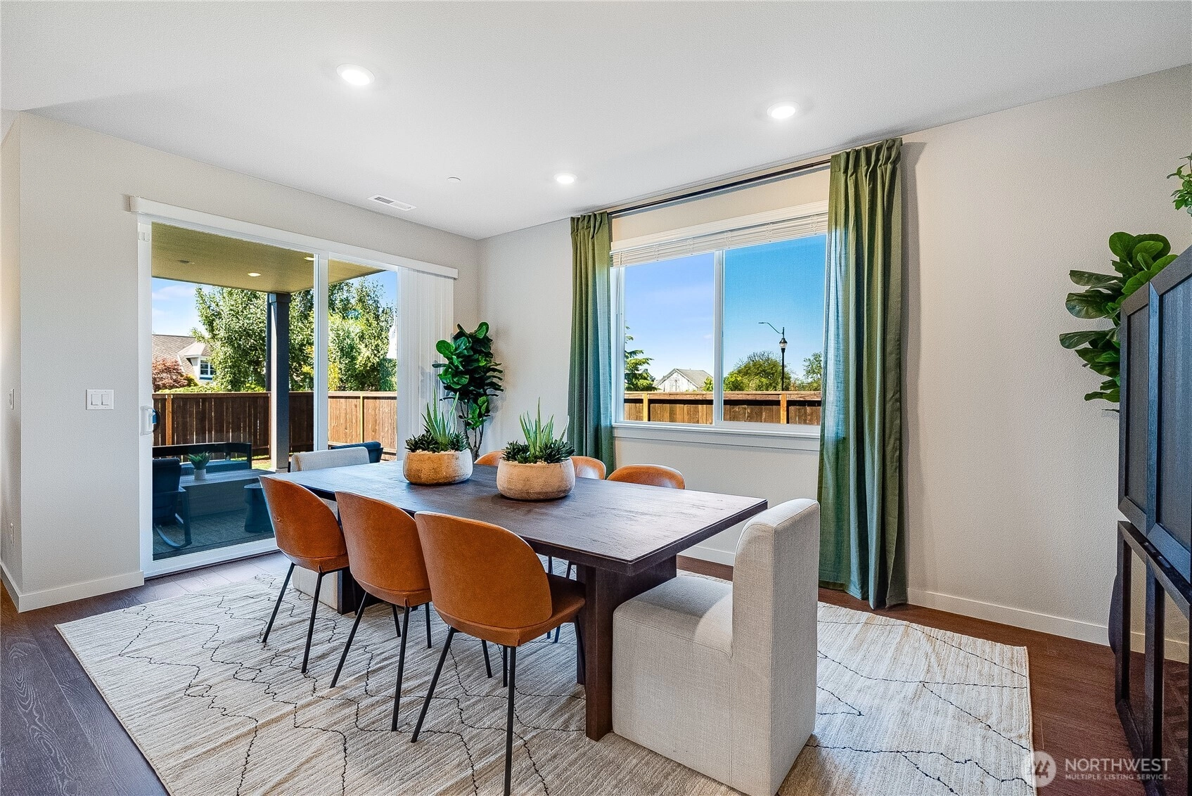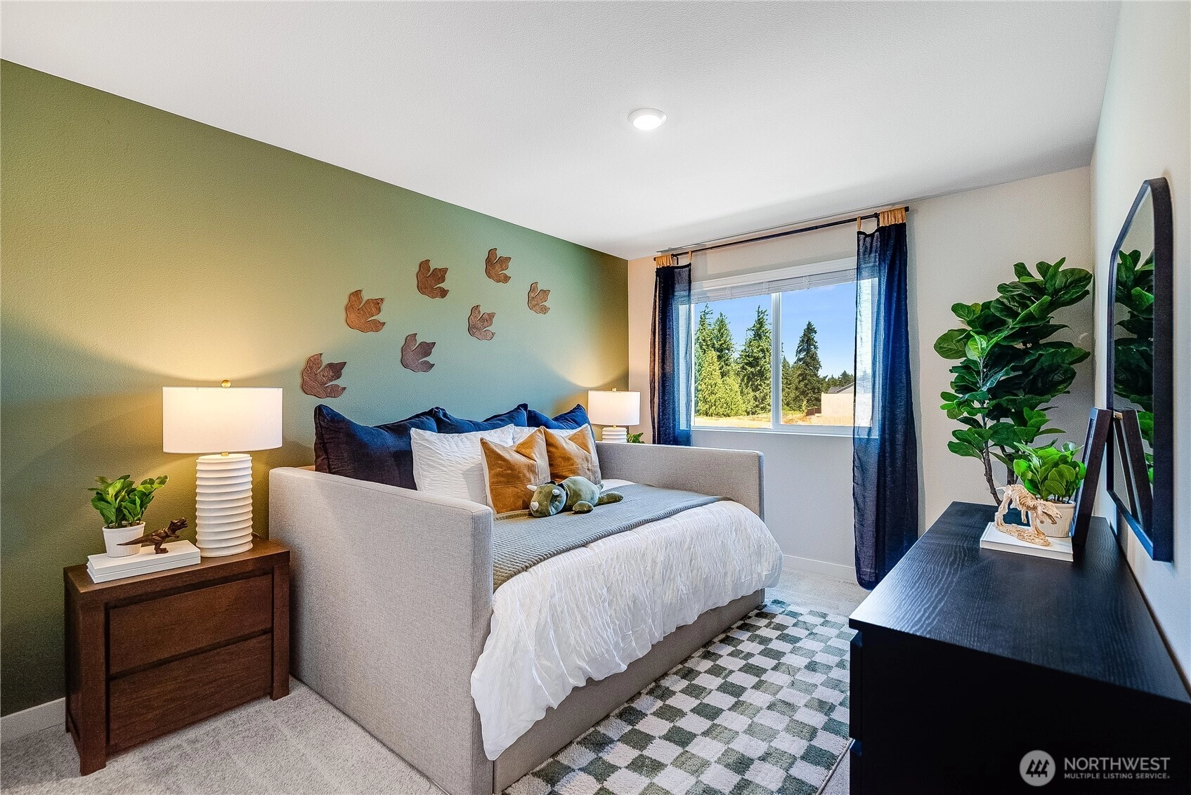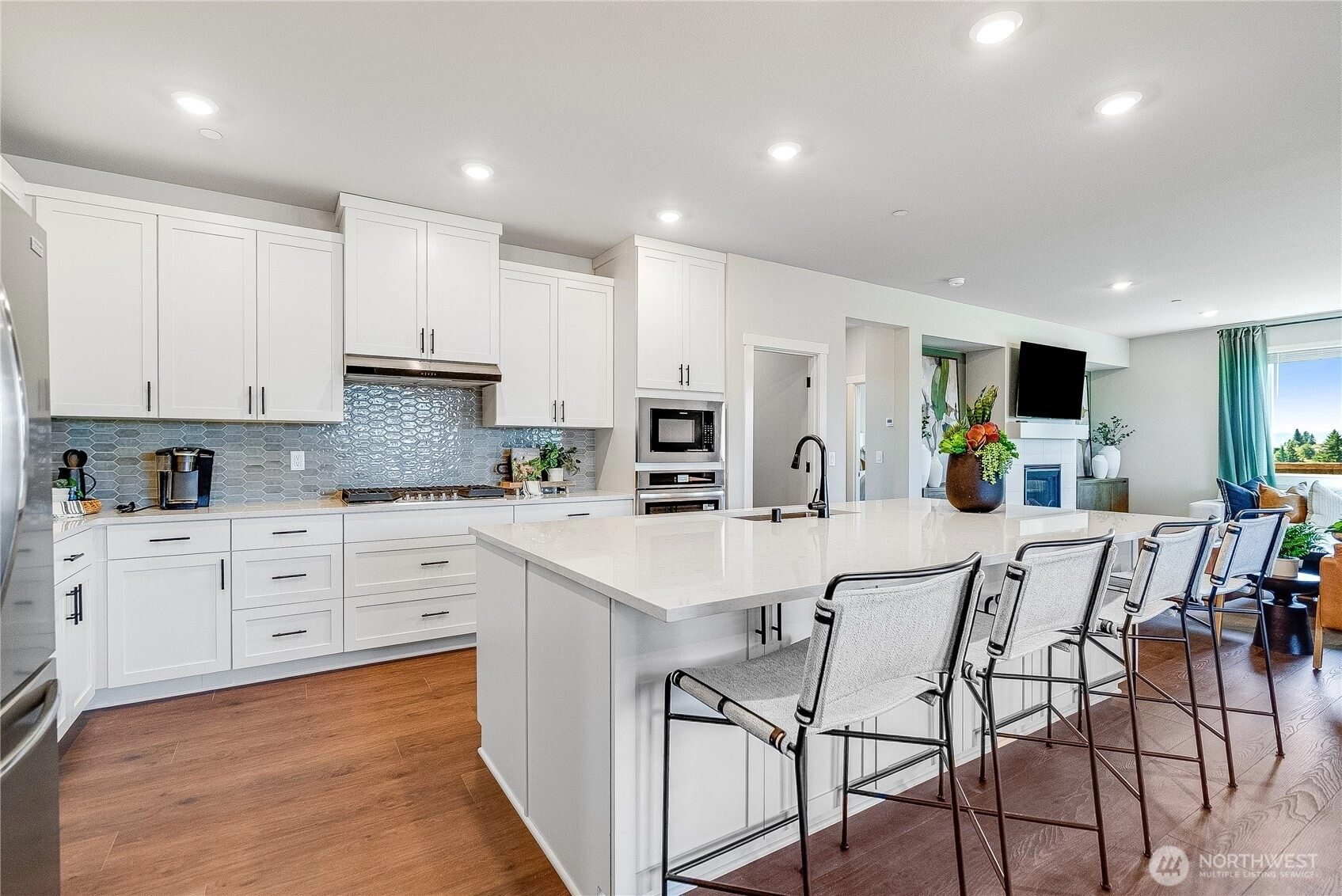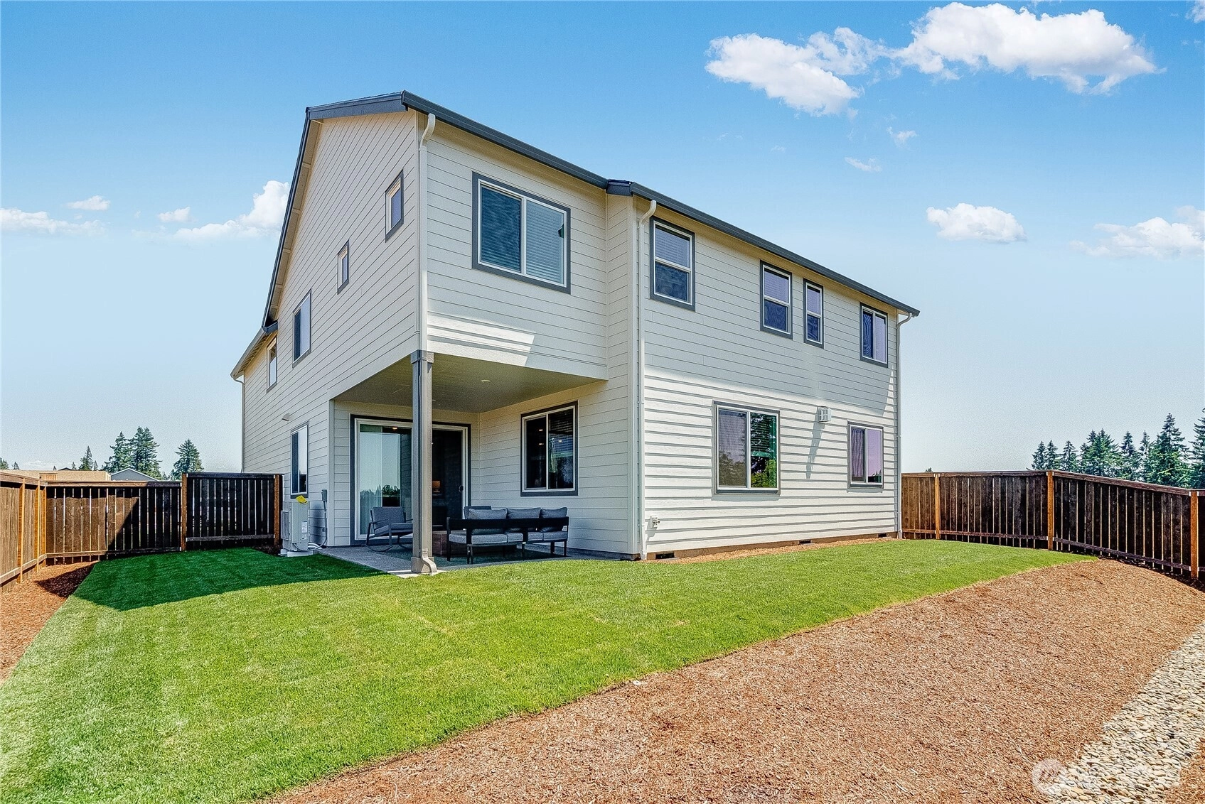 Entertainer's dream home kitchen features a huge quartz island with shaker cabinets, convection oven, induction cooktop, built in microwave and SS refrigerator. Expansive LVP floors extend through the entry, dining, kitchen & Great Room areas. There is a den and a guest bedroom with a full bath on the main level.Primary includes sitting room, tiled shower, tiled soak tub, LVT, and quartz counters. Enjoy the sunny south facing backyard home with a covered back patio overlooking fully landscaped yard on a southern view homesite.Home includes, Washer and Dryer, Refrigerator, and blinds.Just 25 mins to PDX.Model home photos, finishes may vary. Incentives available when financing with preferred lender! Homesite #22, est completion February2026