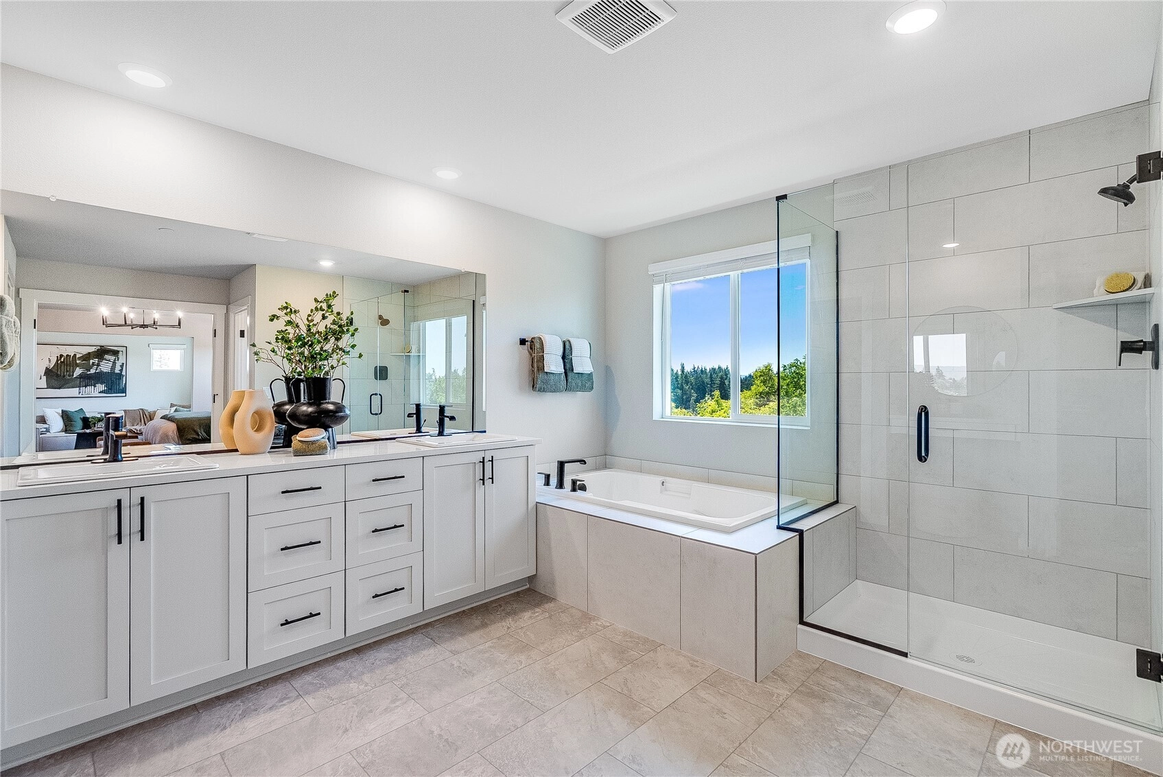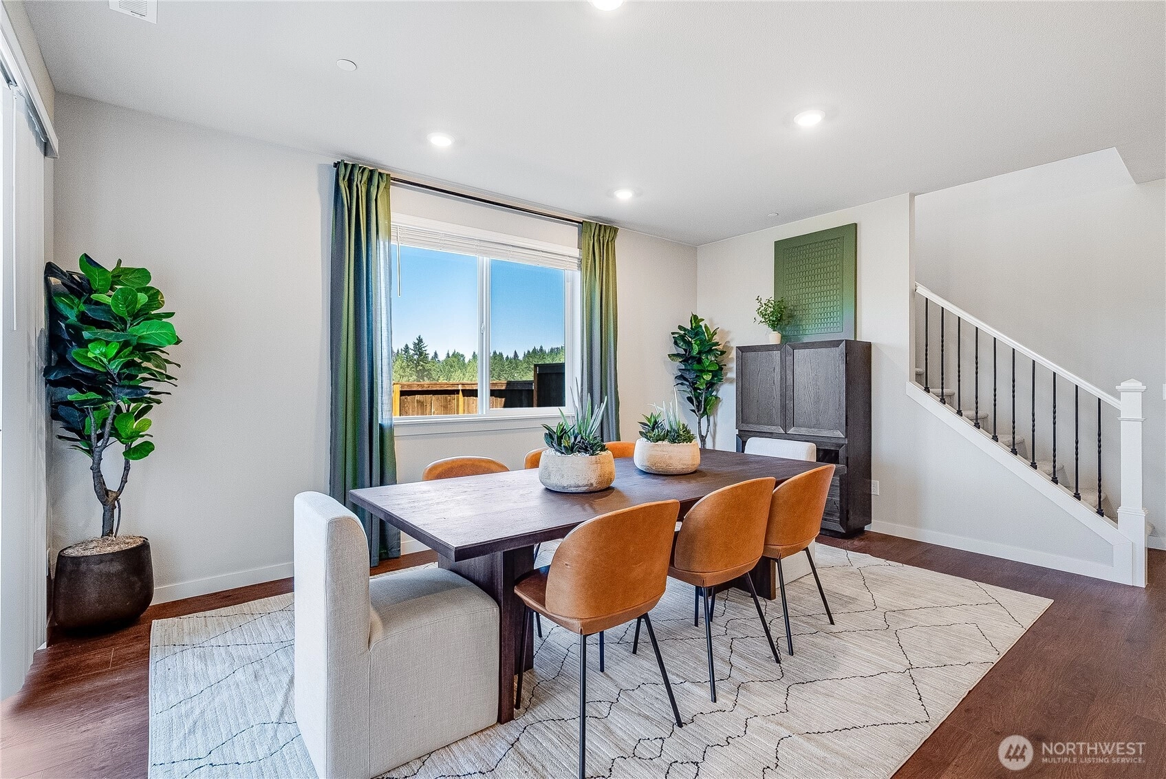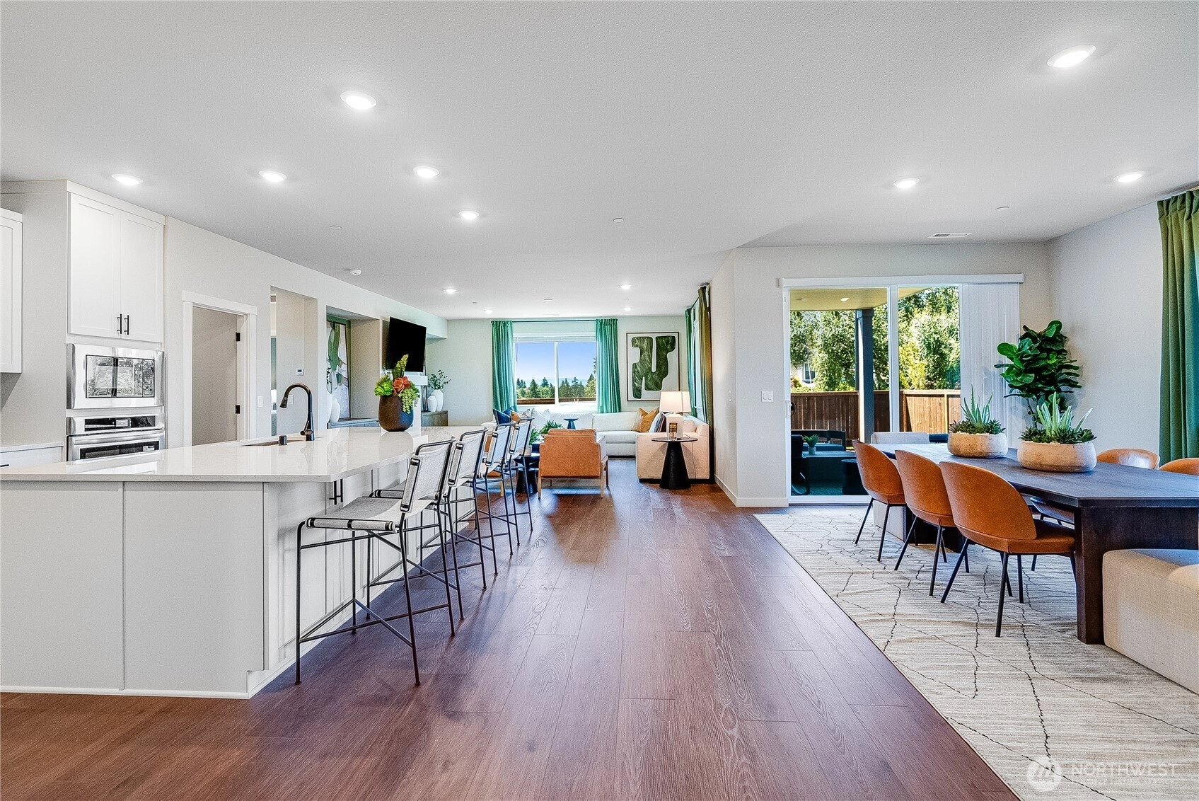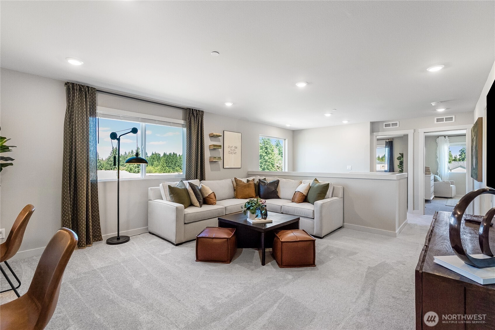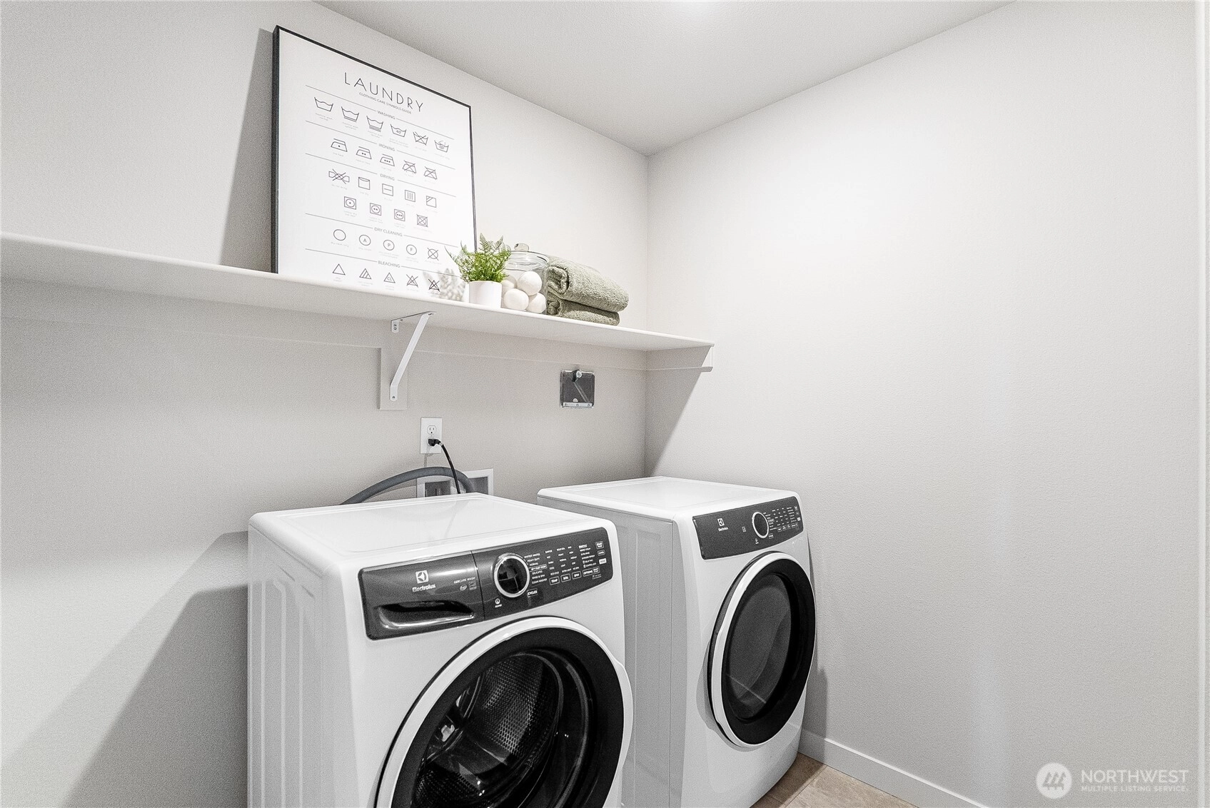 Entertainer's dream home kitchen features a huge quartz island with shaker cabinets, convection oven, induction cooktop, built in microwave and SS refrigerator. Expansive LVP floors extend through the entry, dining, kitchen & Great Room areas. There is a den and a guest bedroom with a full bath on the main level.Primary includes sitting room, tiled shower, tiled soak tub, LVT, and quartz counters. Enjoy the sunny south facing backyard home with a covered back patio overlooking fully landscaped yard on a southern view homesite.Home includes, Washer and Dryer, Refrigerator, and blinds.Just 25 mins to PDX.Model home photos, finishes may vary. Incentives available when financing with preferred lender! Homesite #22, est completion February2026