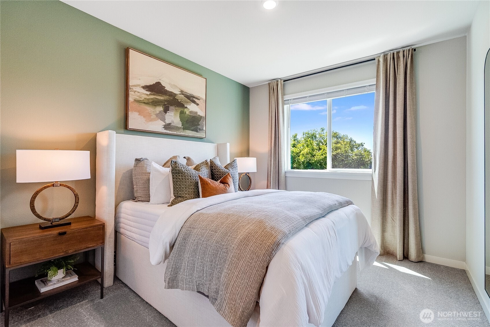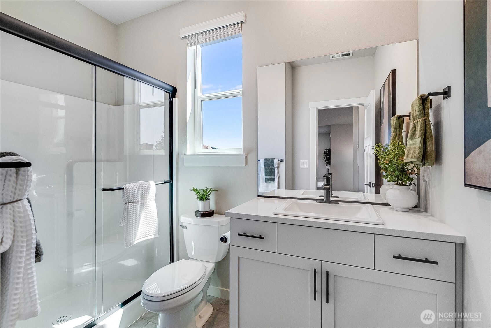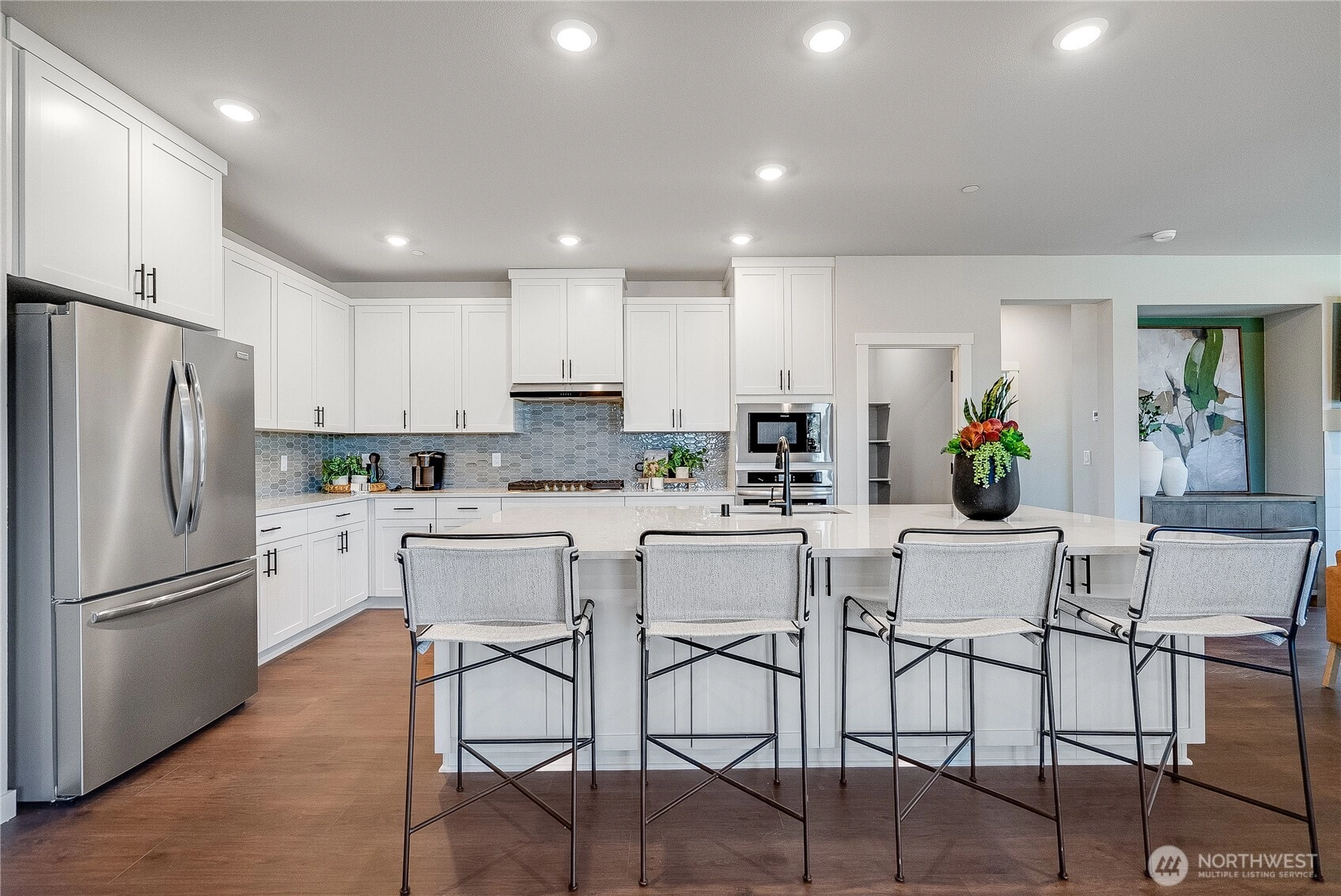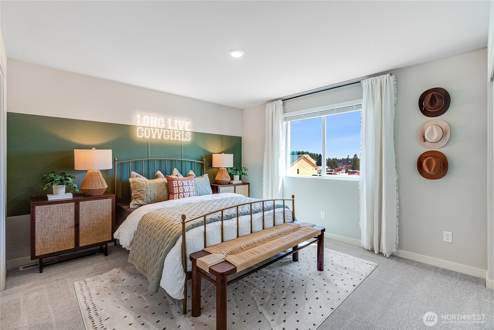 Entertainer's dream home kitchen features a huge quartz island with shaker cabinets, convection oven, induction cooktop, built in microwave and SS refrigerator. Expansive LVP floors extend through the entry, dining, kitchen & Great Room areas. There is a den and a guest bedroom with a full bath on the main level.Primary includes sitting room, tiled shower, tiled soak tub, LVT, and quartz counters. Enjoy the sunny south facing backyard home with a covered back patio overlooking fully landscaped yard on a southern view homesite.Home includes, Washer and Dryer, Refrigerator, and blinds.Just 25 mins to PDX.Model home photos, finishes may vary. Incentives available when financing with preferred lender! Homesite #22, est completion February2026
