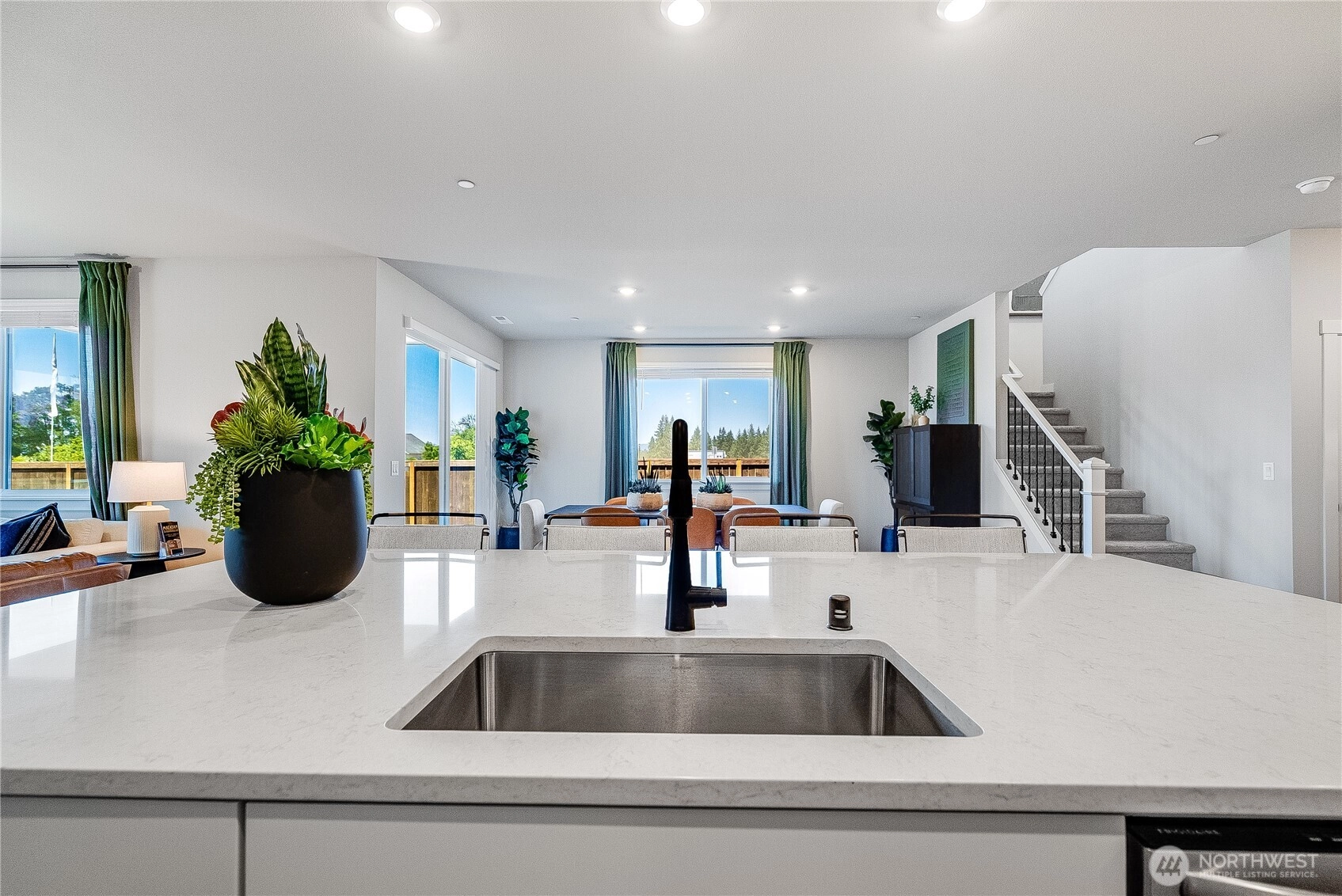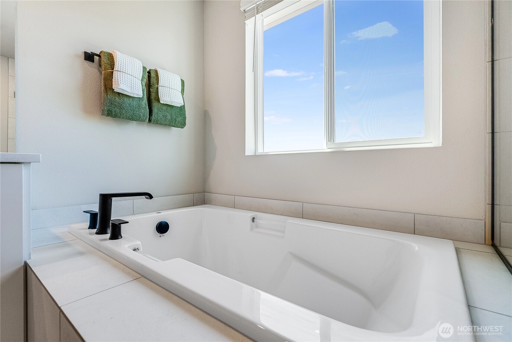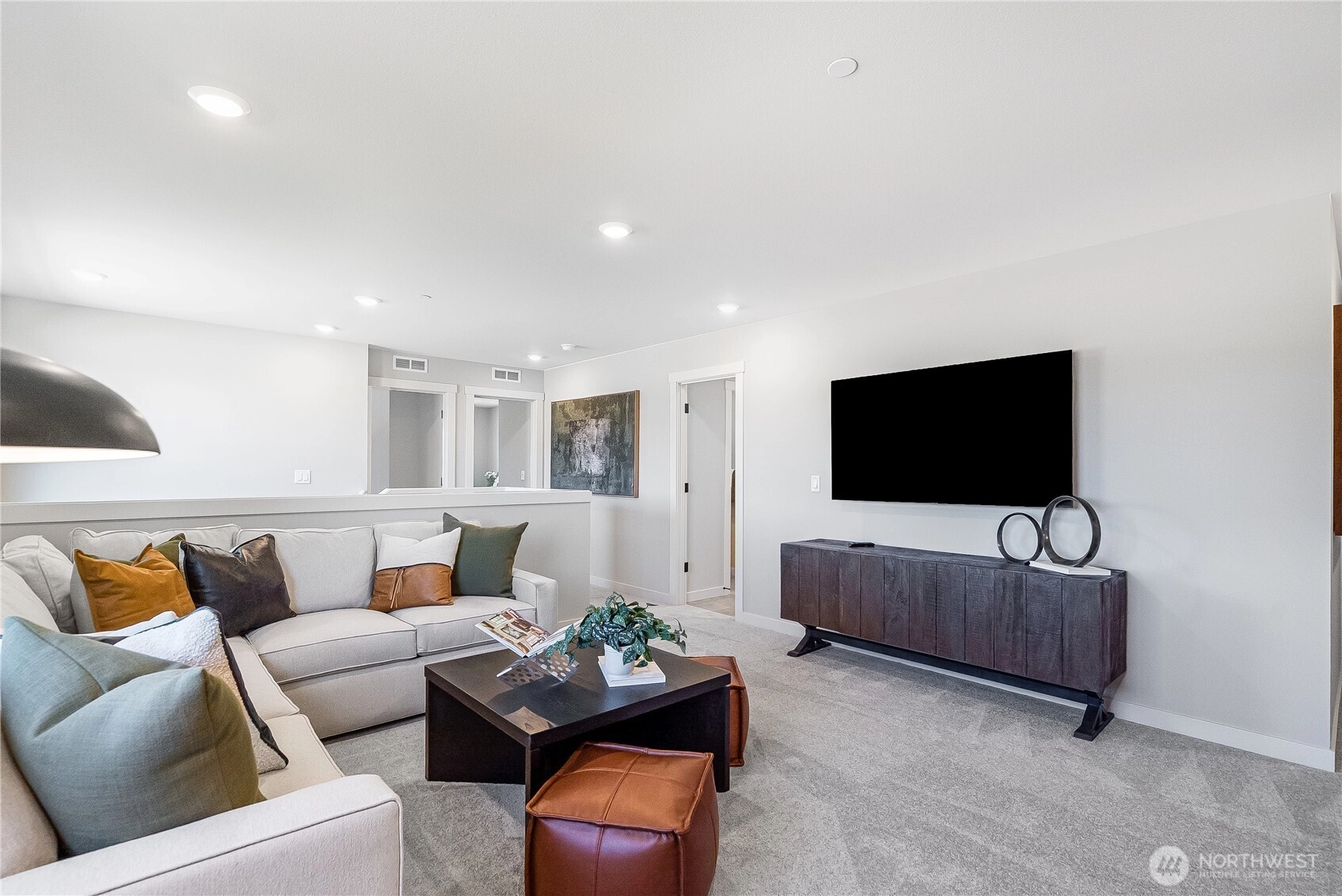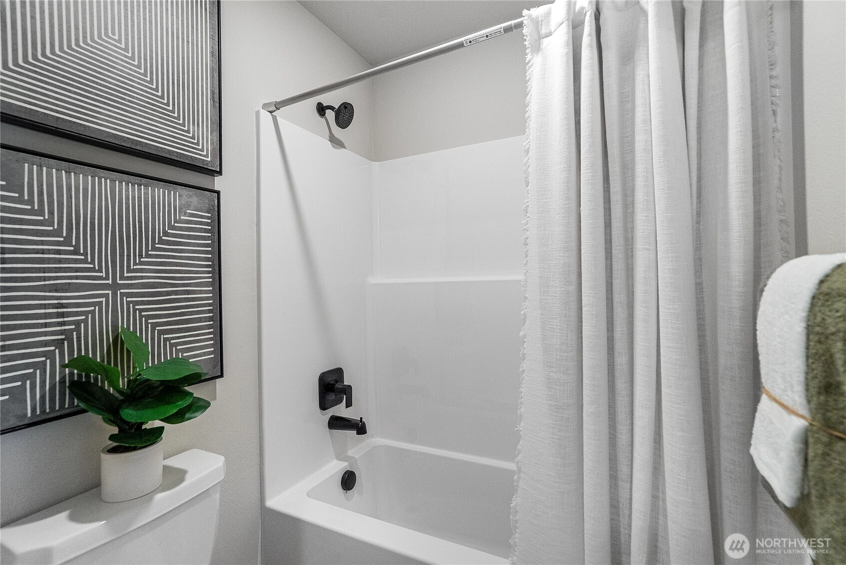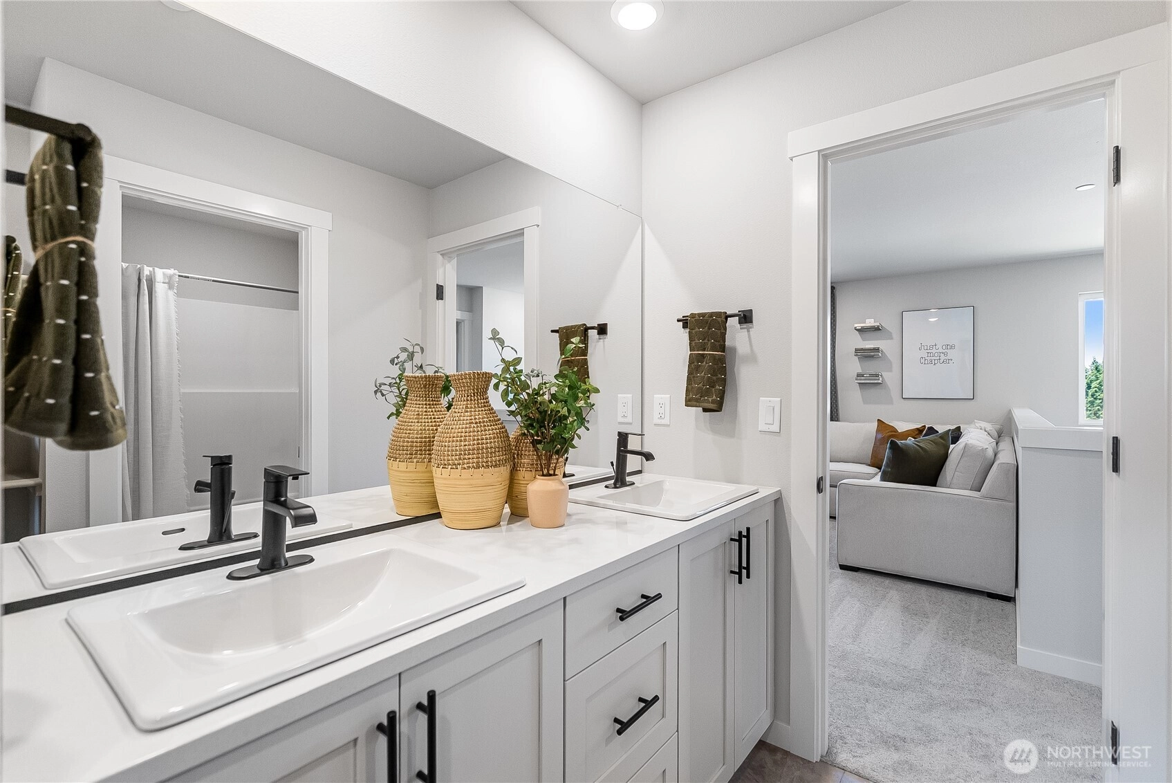 Entertainer's dream home kitchen features a huge quartz island with shaker cabinets, convection oven, induction cooktop, built in microwave and SS refrigerator. Expansive LVP floors extend through the entry, dining, kitchen & Great Room areas. There is a den and a guest bedroom with a full bath on the main level.Primary includes sitting room, tiled shower, tiled soak tub, LVT, and quartz counters. Enjoy the sunny south facing backyard home with a covered back patio overlooking fully landscaped yard on a southern view homesite.Home includes, Washer and Dryer, Refrigerator, and blinds.Just 25 mins to PDX.Model home photos, finishes may vary. Incentives available when financing with preferred lender! Homesite #22, est completion February2026