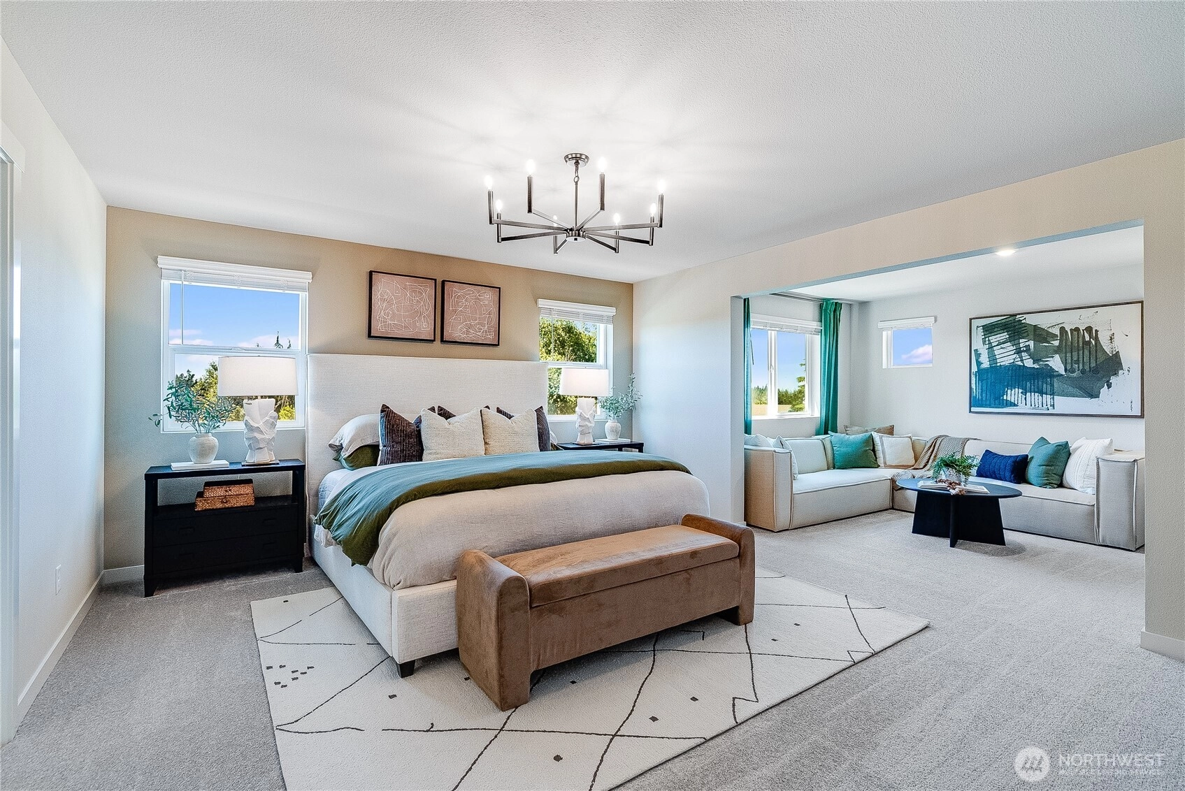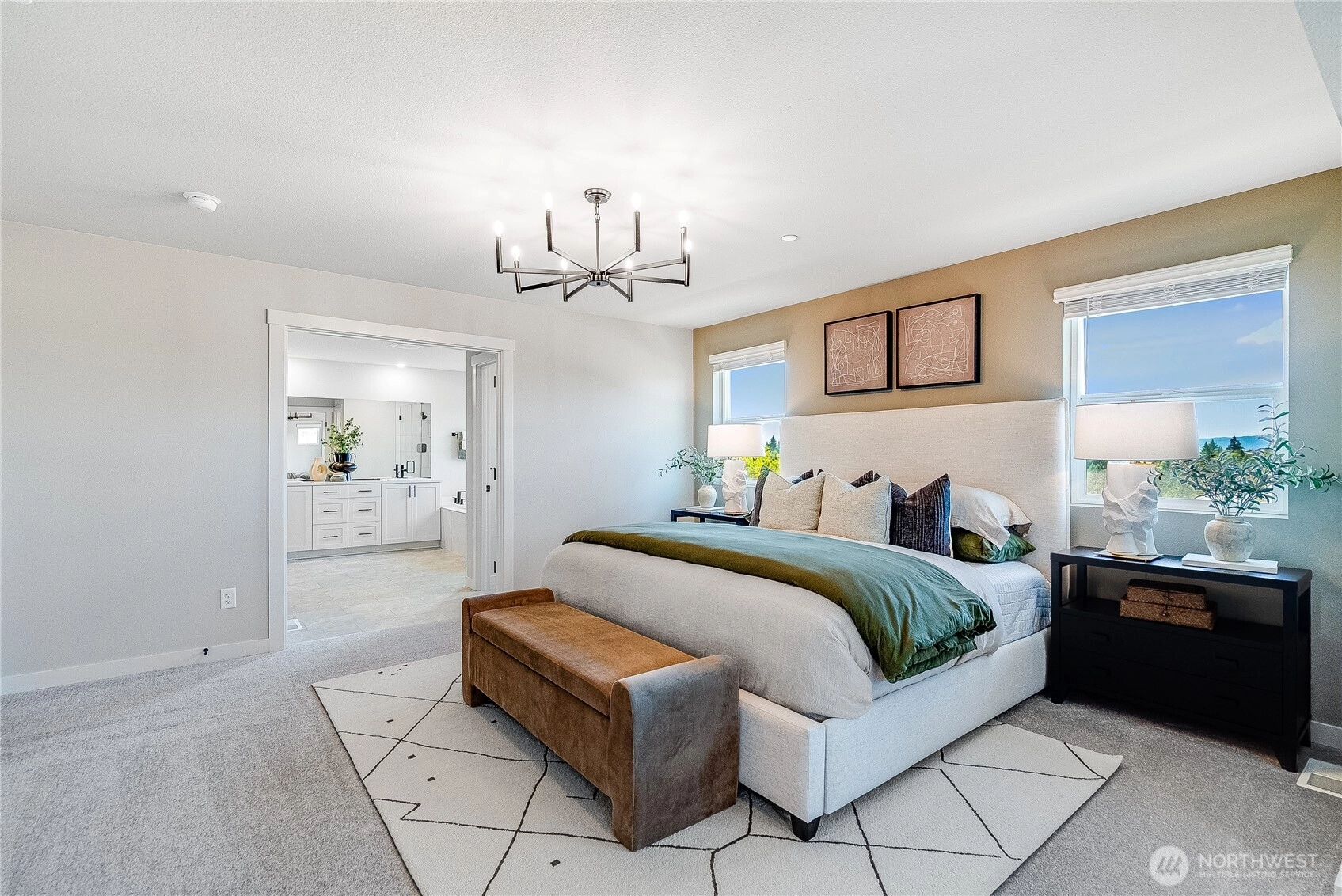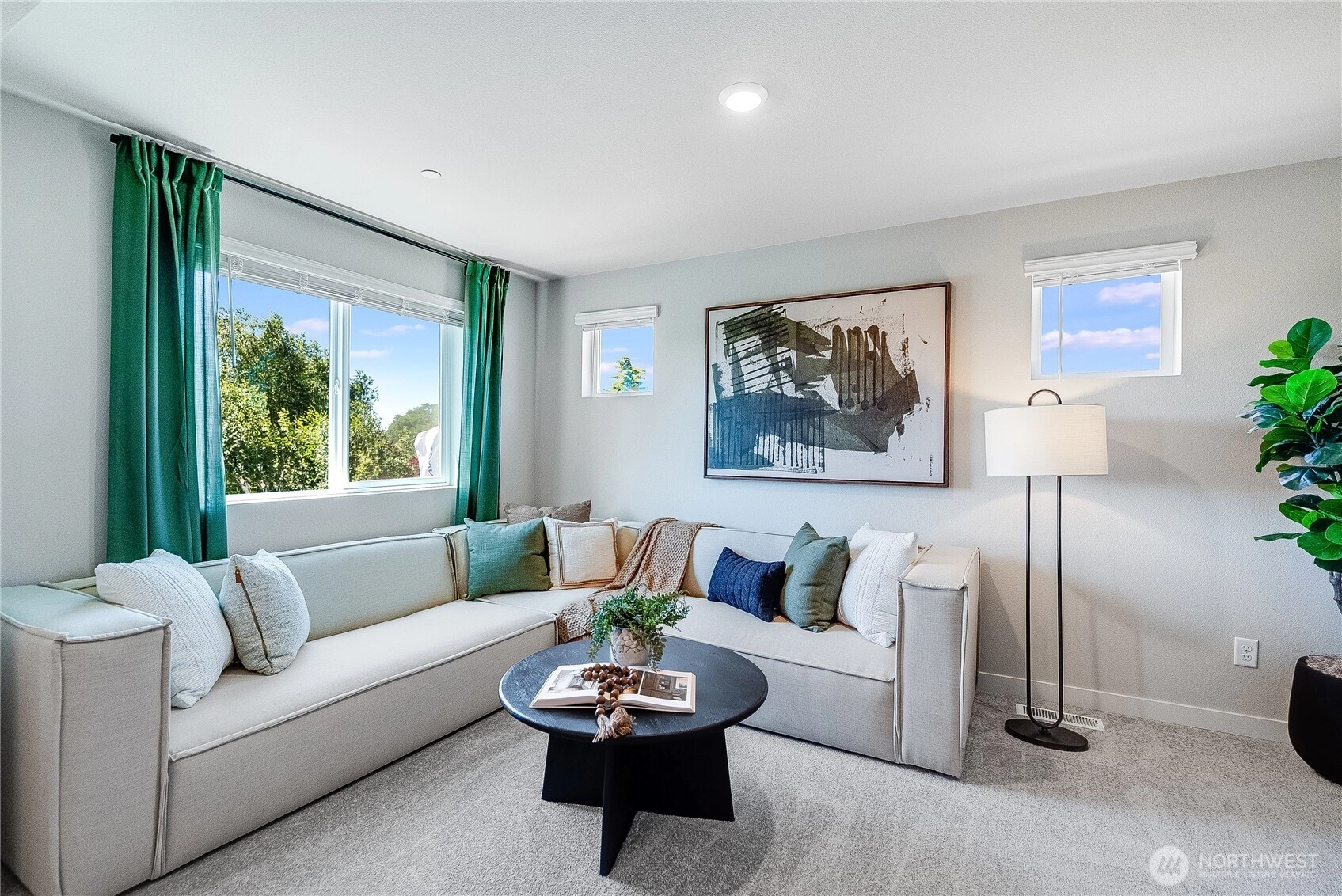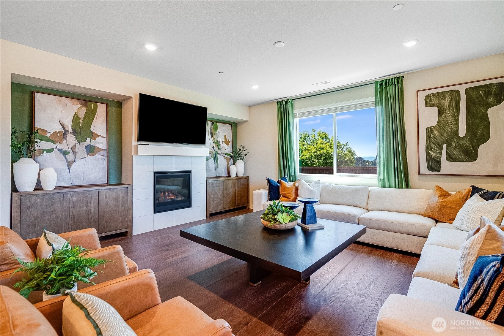 Entertainer's dream home kitchen features a huge quartz island with shaker cabinets, convection oven, induction cooktop, built in microwave and SS refrigerator. Expansive LVP floors extend through the entry, dining, kitchen & Great Room areas. There is a den and a guest bedroom with a full bath on the main level.Primary includes sitting room, tiled shower, tiled soak tub, LVT, and quartz counters. Enjoy the sunny south facing backyard home with a covered back patio overlooking fully landscaped yard on a southern view homesite.Home includes, Washer and Dryer, Refrigerator, and blinds.Just 25 mins to PDX.Model home photos, finishes may vary. Incentives available when financing with preferred lender! Homesite #22, est completion February2026