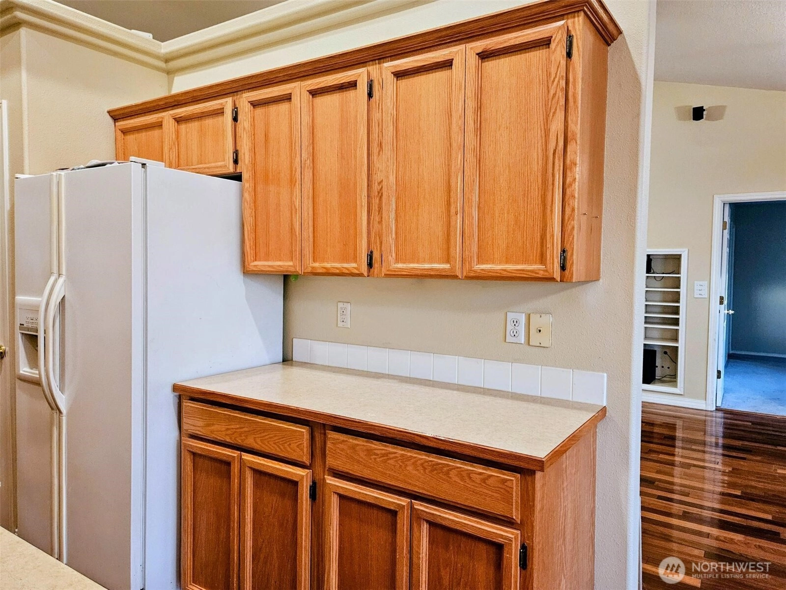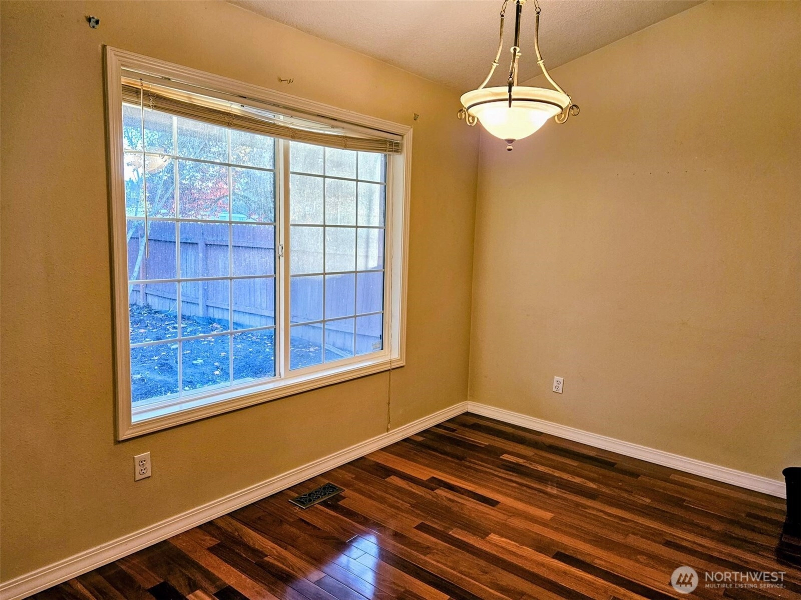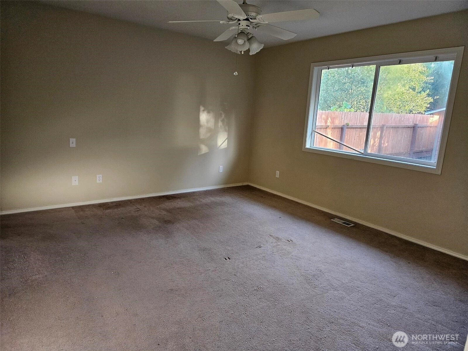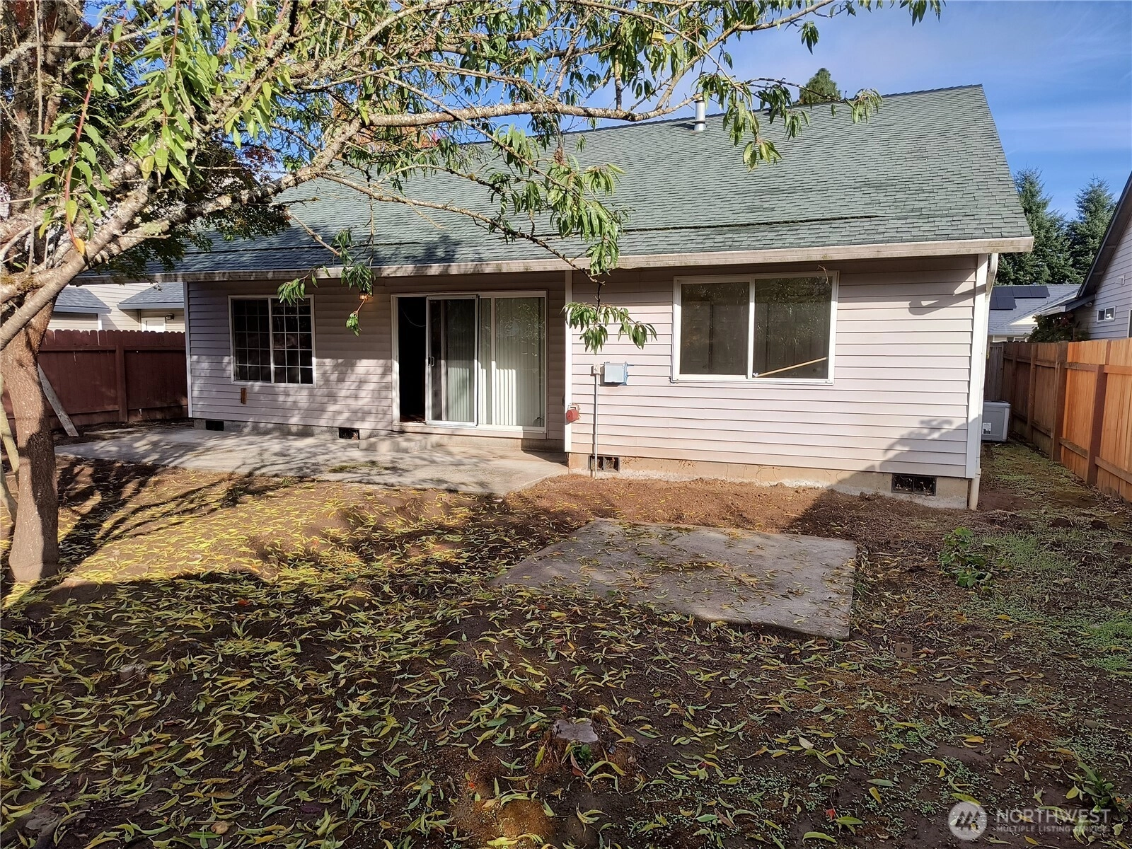 One story home in quiet nieghborhood near shopping and I-5. Entry leads to great room with gas fireplace, dining area and slider to patio/rear yard. Well appointed kitchen has ample cabinet and counter space. Large pantry just off kitchen. Three bedrooms, primary with walk-in shower and double closets. Hallway leads to utility room and garage with storage shelfs and electric door opener. Front yard has been freashly seeded. Fully fenced rear yard with large patio and storage shed.