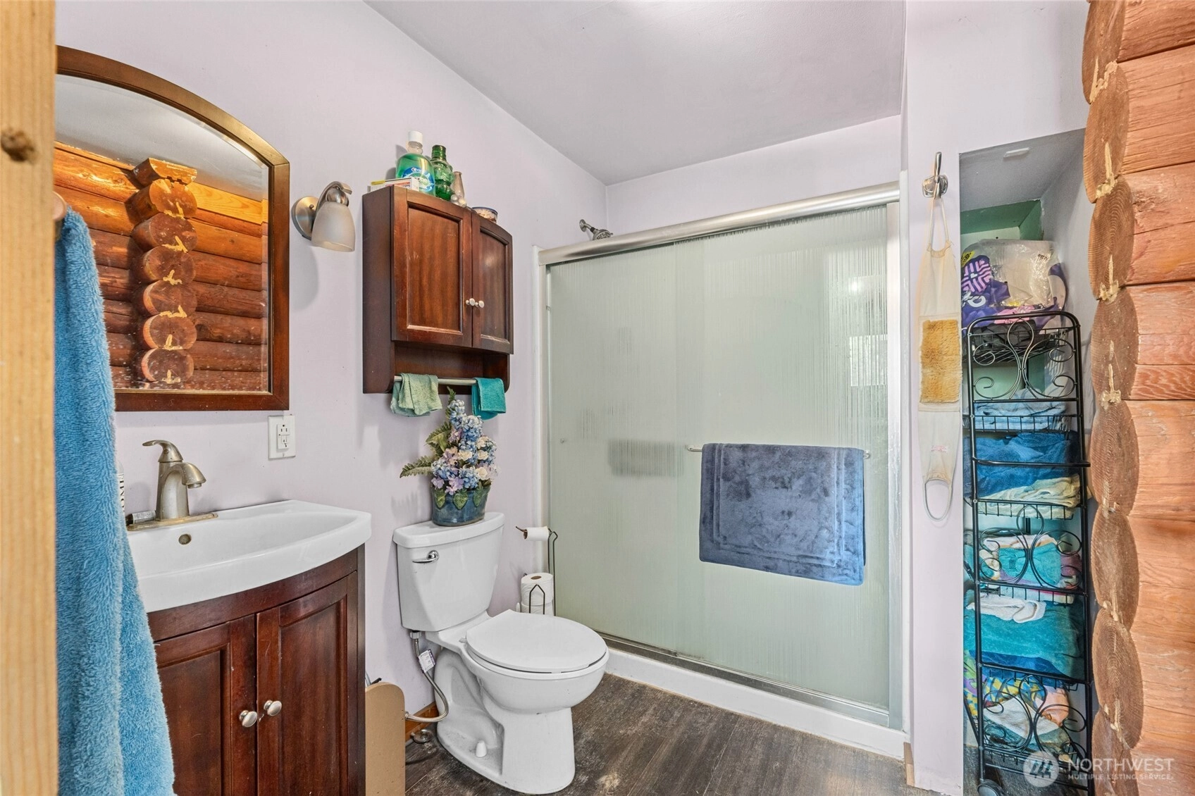 Here is your chance at a cabin in the woods! Beautiful log cabin nestled on 25 acres with potential to be demised into 5 acre lots. Home offers an open layout on the main level with 2 generous size bedrooms, bathroom, wood stove, a deck off the hall and patio off the kitchen. The finished daylight basement offers 1 bedroom, 2 bonus rooms, bathroom and a large family/rec room. Property offers plenty of room to roam, a chicken coop, fenced yard area, a large 30' x 40' shop, solar panels and leased propane tank. This is secluded living at its best while staying close to plenty of recreational destinations and towns.
