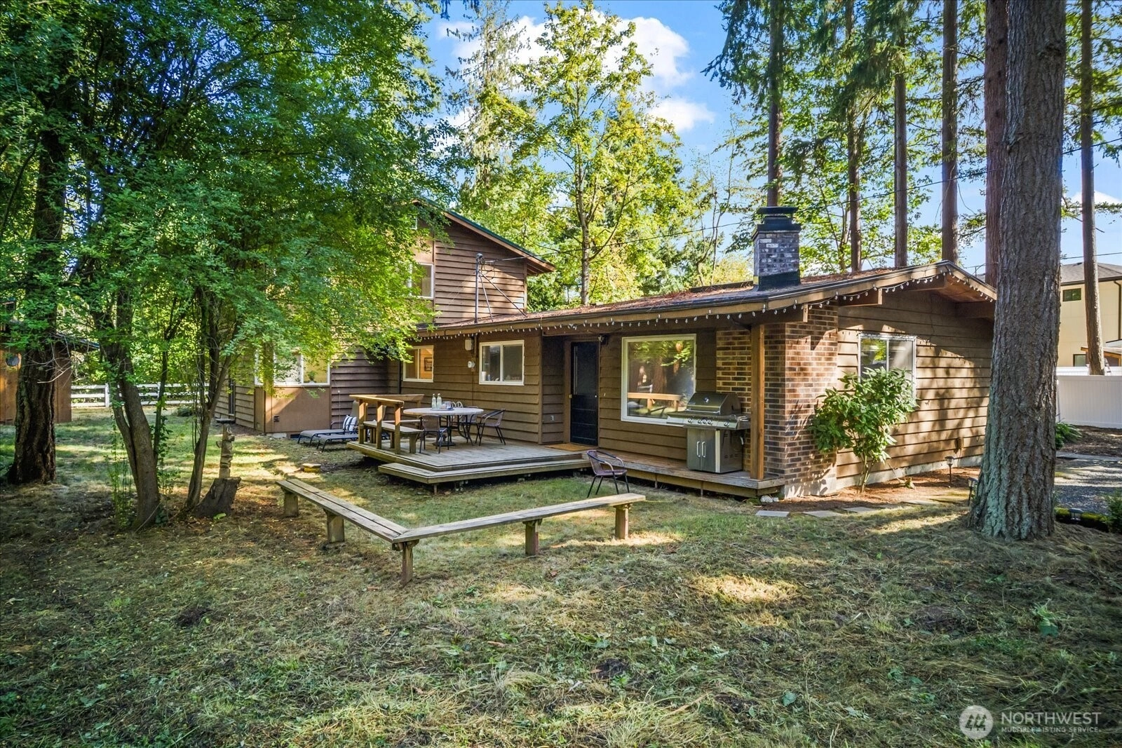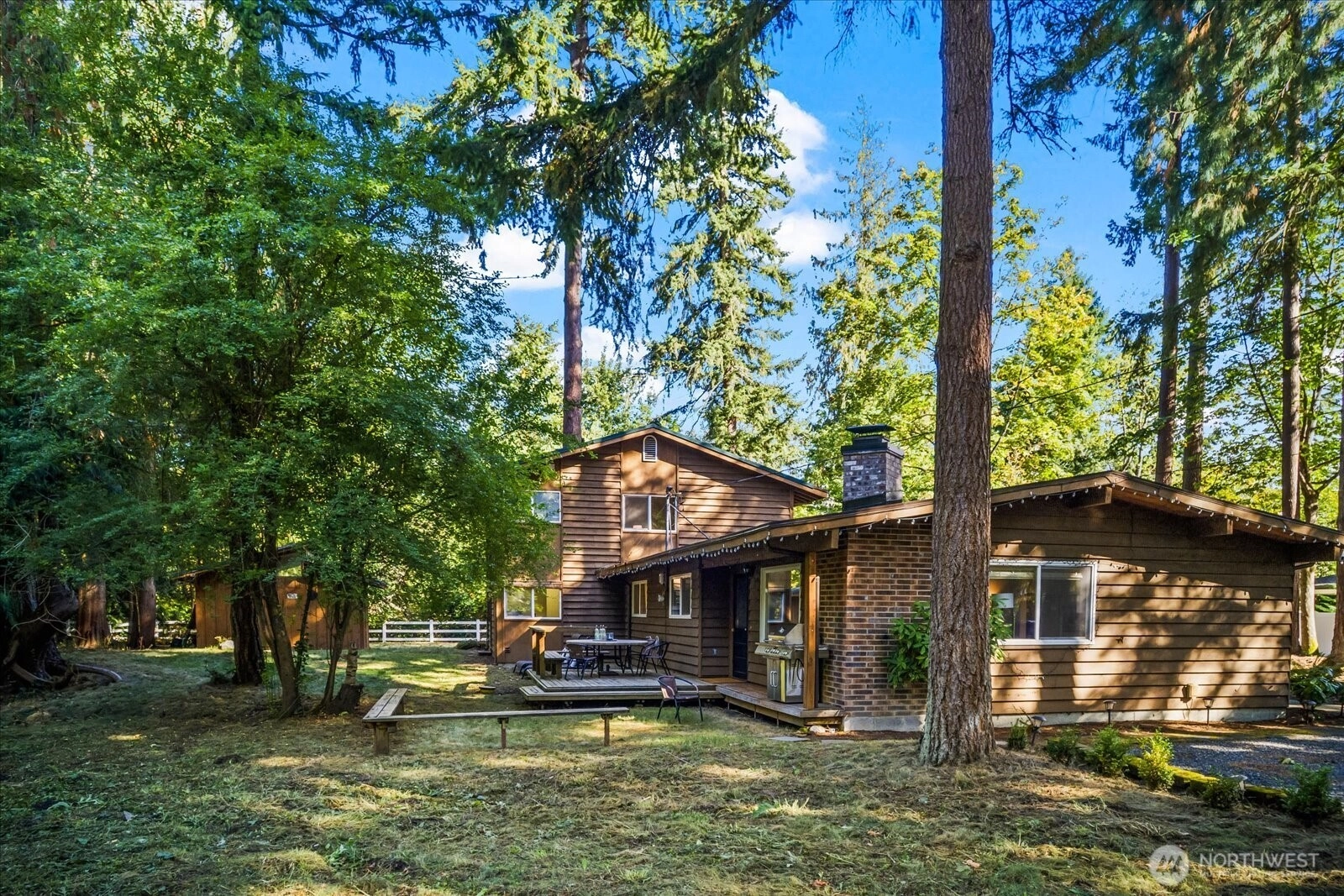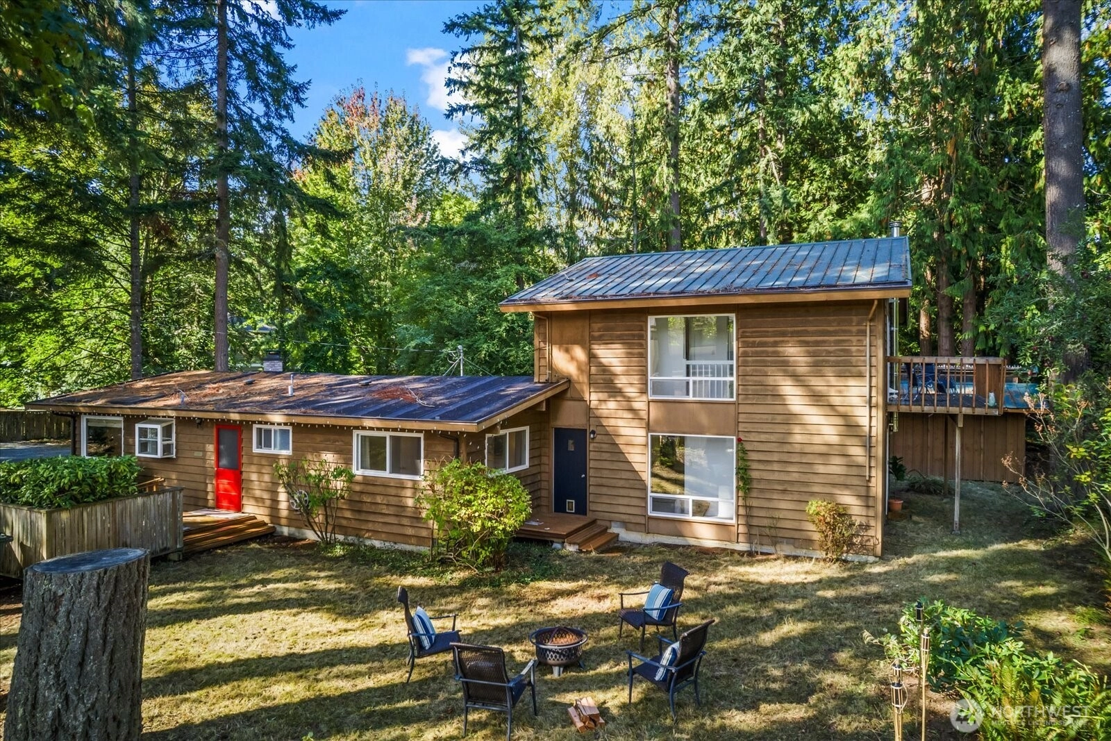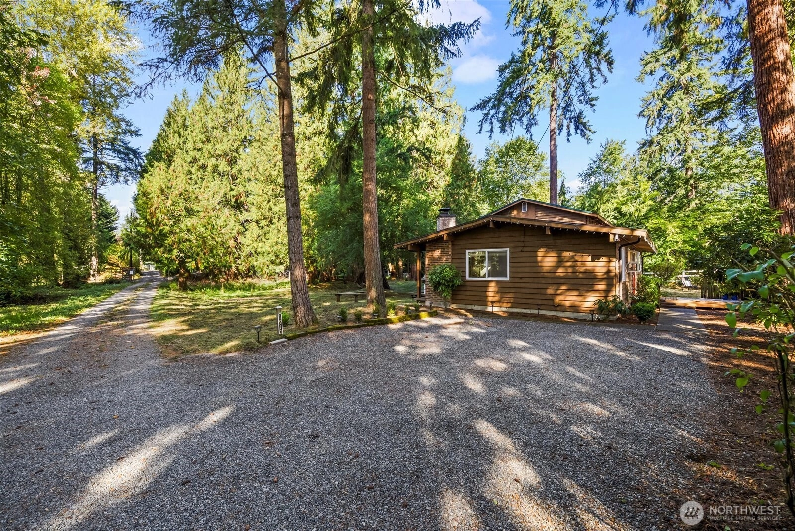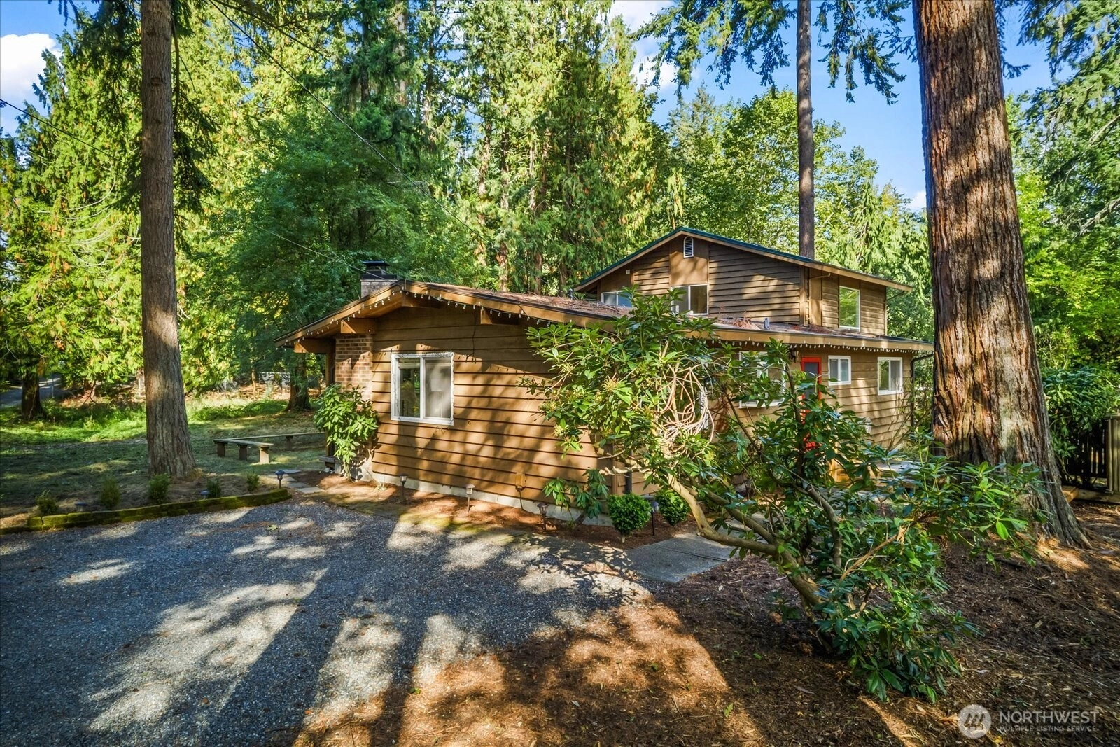 Pine Lake area living at its finest! This 1½-story retreat rests on a private .8-acre lot surrounded by mature trees and open green space. The main level offers inviting living areas, two bedrooms, an office, laundry room, and an oversized rec room with abundant storage. Upstairs, the primary suite features a private balcony, full bath, and an additional bedroom. Outside, enjoy a level yard, heated outbuilding, and woodshed. Located on a quiet private drive with ample parking. Minutes to Pine Lake, trails, parks, and shopping, within the coveted Issaquah School District. R-4 zoning provides future flexibility.