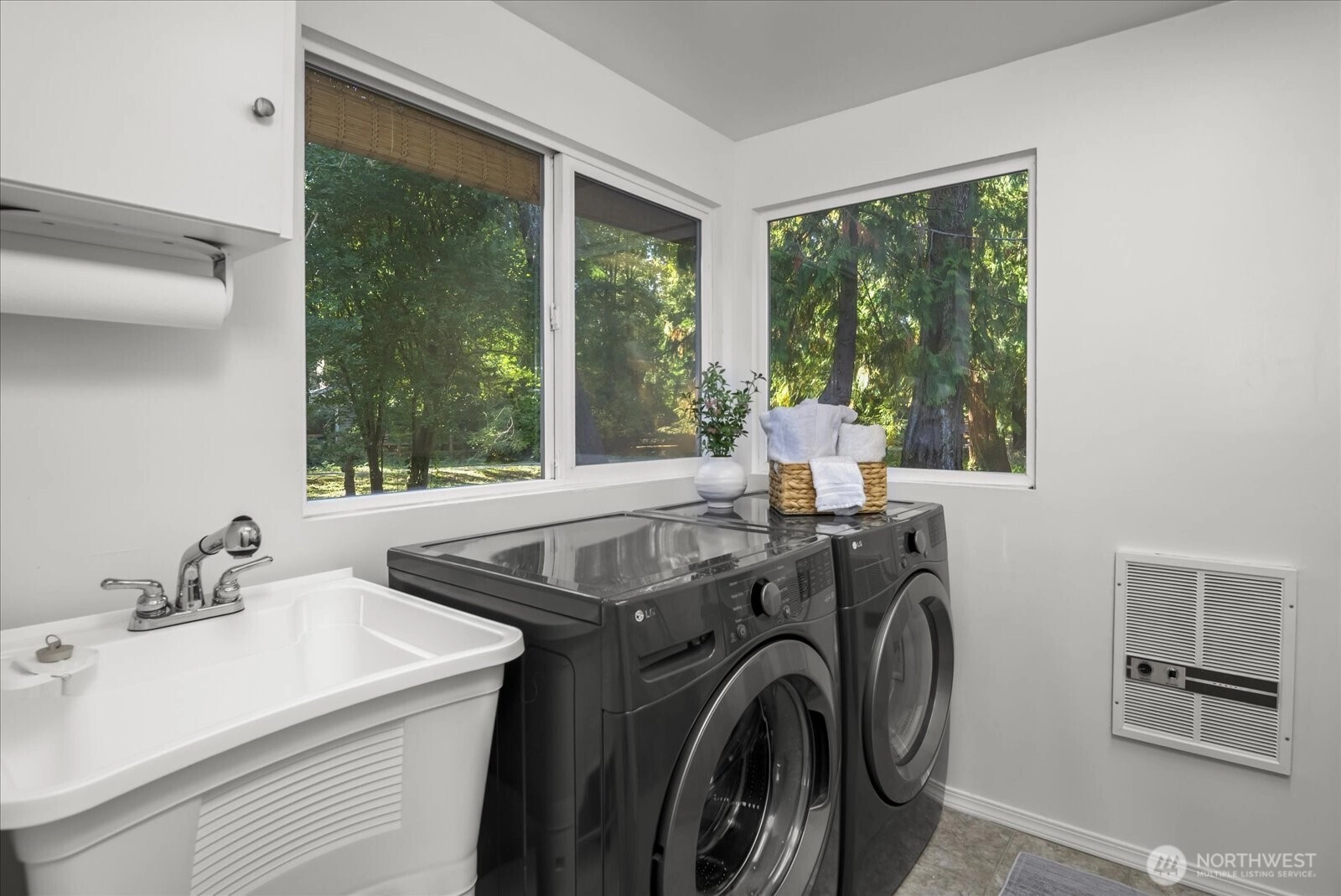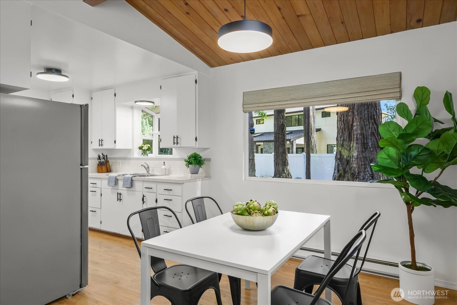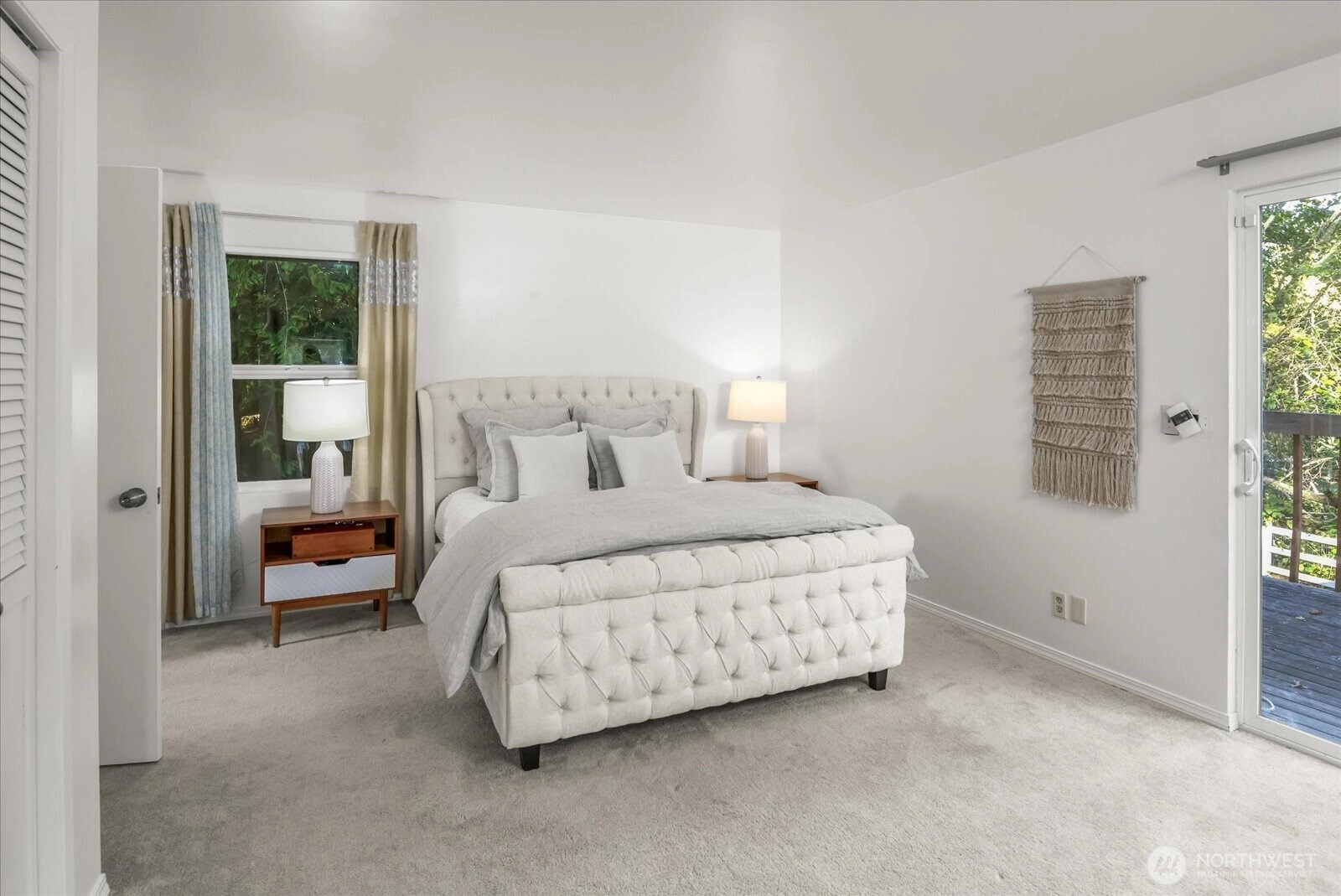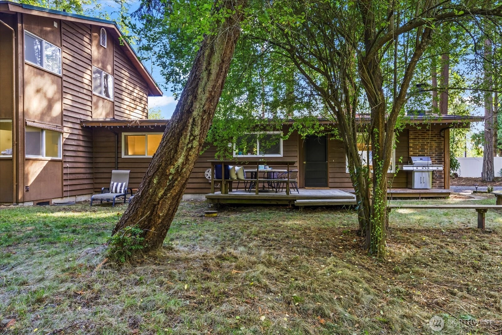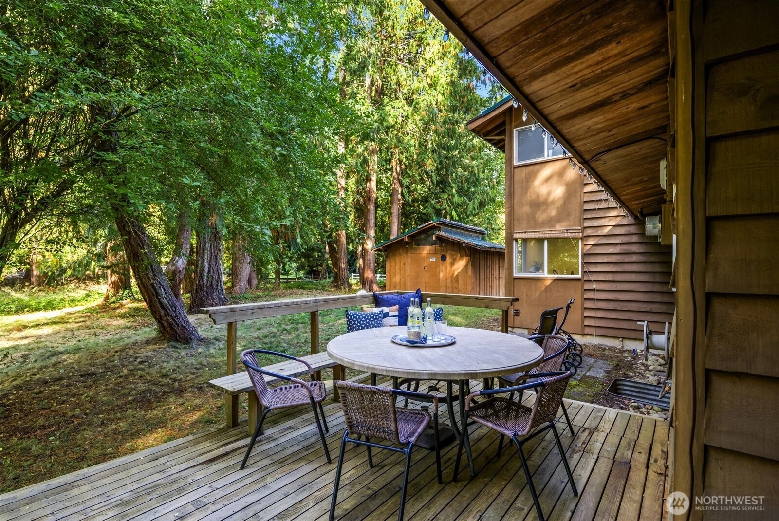Pine Lake area living at its finest! This 1½-story retreat rests on a private .8-acre lot surrounded by mature trees and open green space. The main level offers inviting living areas, two bedrooms, an office, laundry room, and an oversized rec room with abundant storage. Upstairs, the primary suite features a private balcony, full bath, and an additional bedroom. Outside, enjoy a level yard, heated outbuilding, and woodshed. Located on a quiet private drive with ample parking. Minutes to Pine Lake, trails, parks, and shopping, within the coveted Issaquah School District. R-4 zoning provides future flexibility.