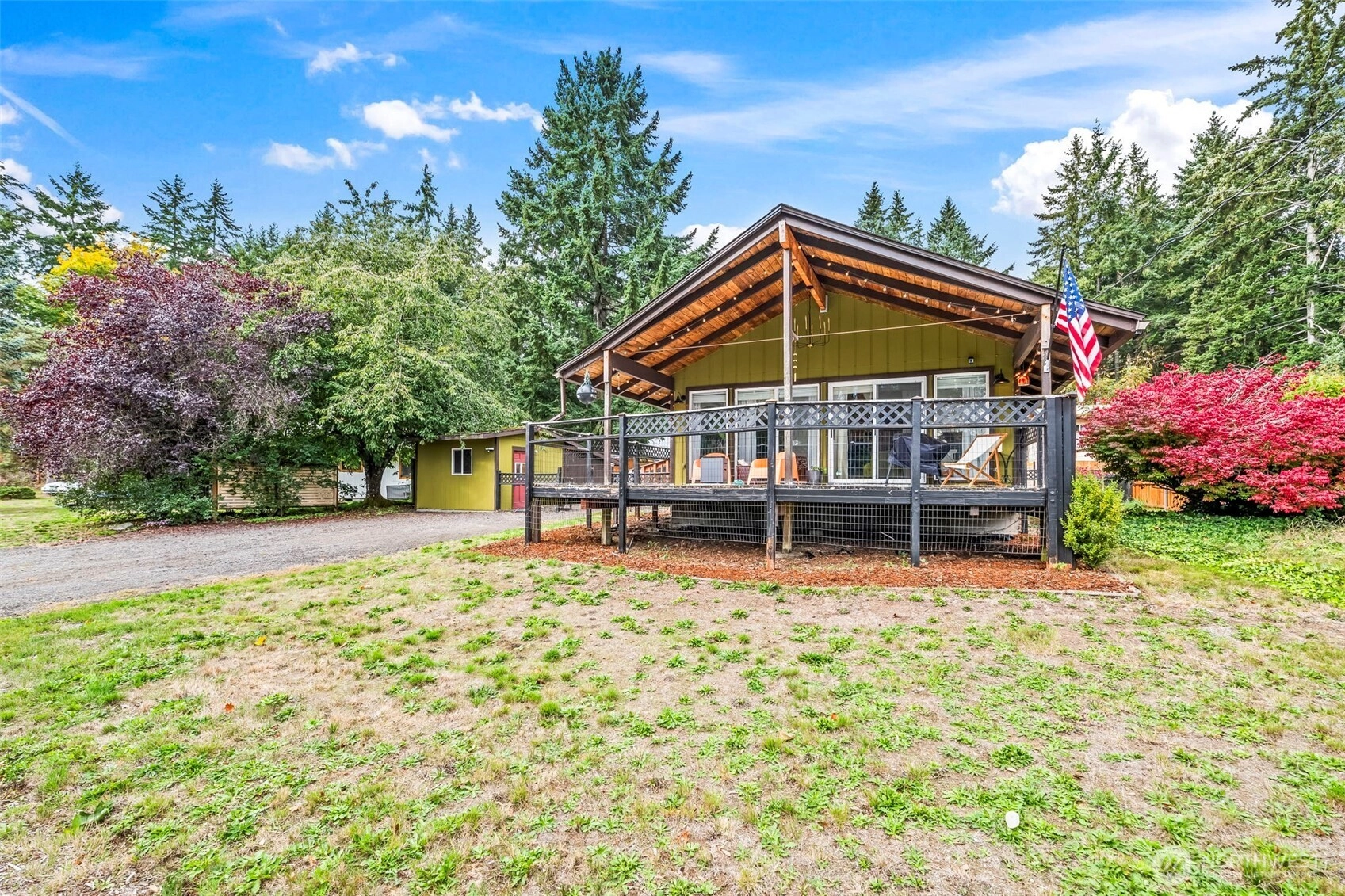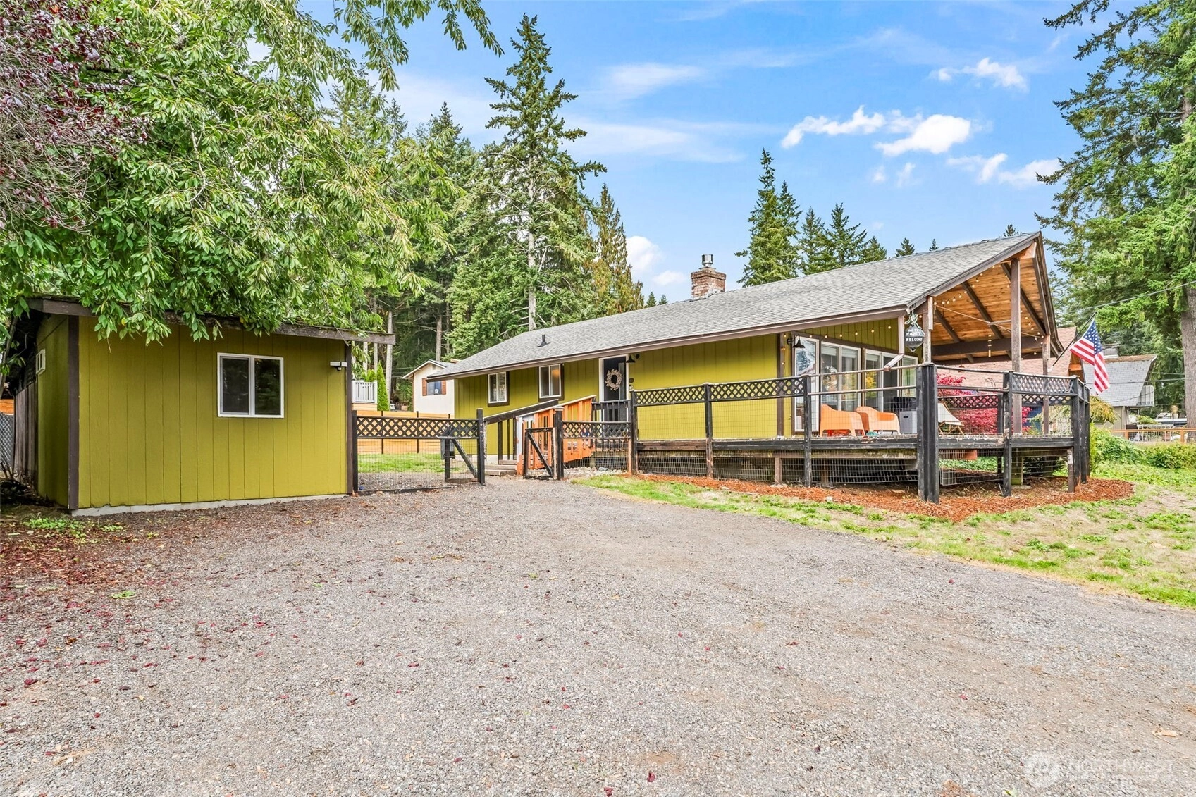 Charming Hood Canal rambler just steps from the water! This cabin-like 2-bedroom, 1-bath home features vaulted ceilings and a wall of windows that open to a spacious covered porch, perfect for relaxing year-round. Cozy up by the propane fireplace in the living room or enjoy the outdoors in the fully fenced backyard. A large outbuilding offers great potential for a home office or shop, and there’s plenty of parking for your RV or boat. Located in Lynch Cove, where HOA dues include access to a 3.75-acre waterfront park, clubhouse, boat launch, and outdoor pool. Just minutes to Belfair State Park and about a 25-minute commute to PSNS.