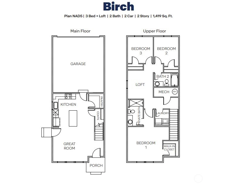 Discover the Birch at Glacier Pointe—1,419 sq ft of purposeful design. Covered porch opens to sunlit great room, dining and quartz kitchen with stainless appliances, with Refrigerator, island seating and walk-in pantry. Rear alley-load 2-car garage keeps the streetscape clean and connects to a private patio. Upstairs, a loft links handy laundry, two secondary bedrooms and a private primary suite with walk-in closet and oversized shower. Enjoy Bonney Lake schools plus 40+ miles of Tehaleh trails and Mount Rainier views.Built by America’s Home Builder, D.R.Horton with Smart Home tech, energy-efficient features and a 10-year limited warranty. Buyer must register their broker on 1st visit including open houses.
