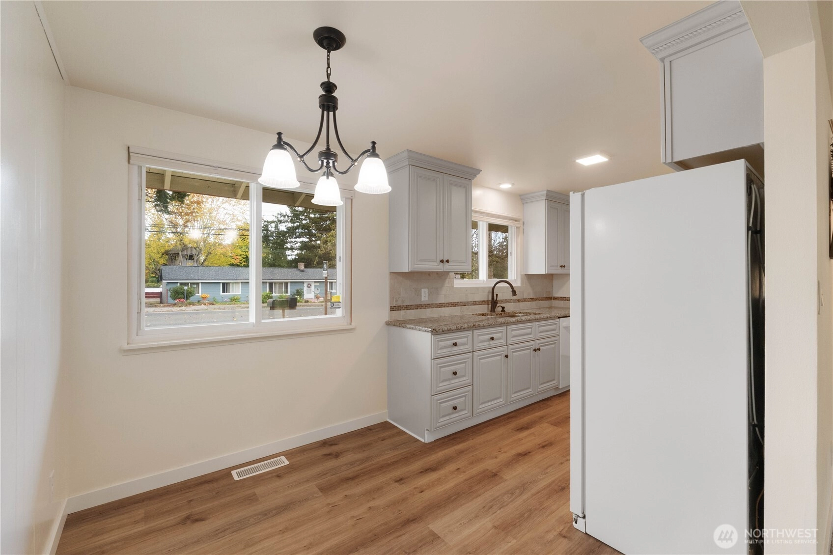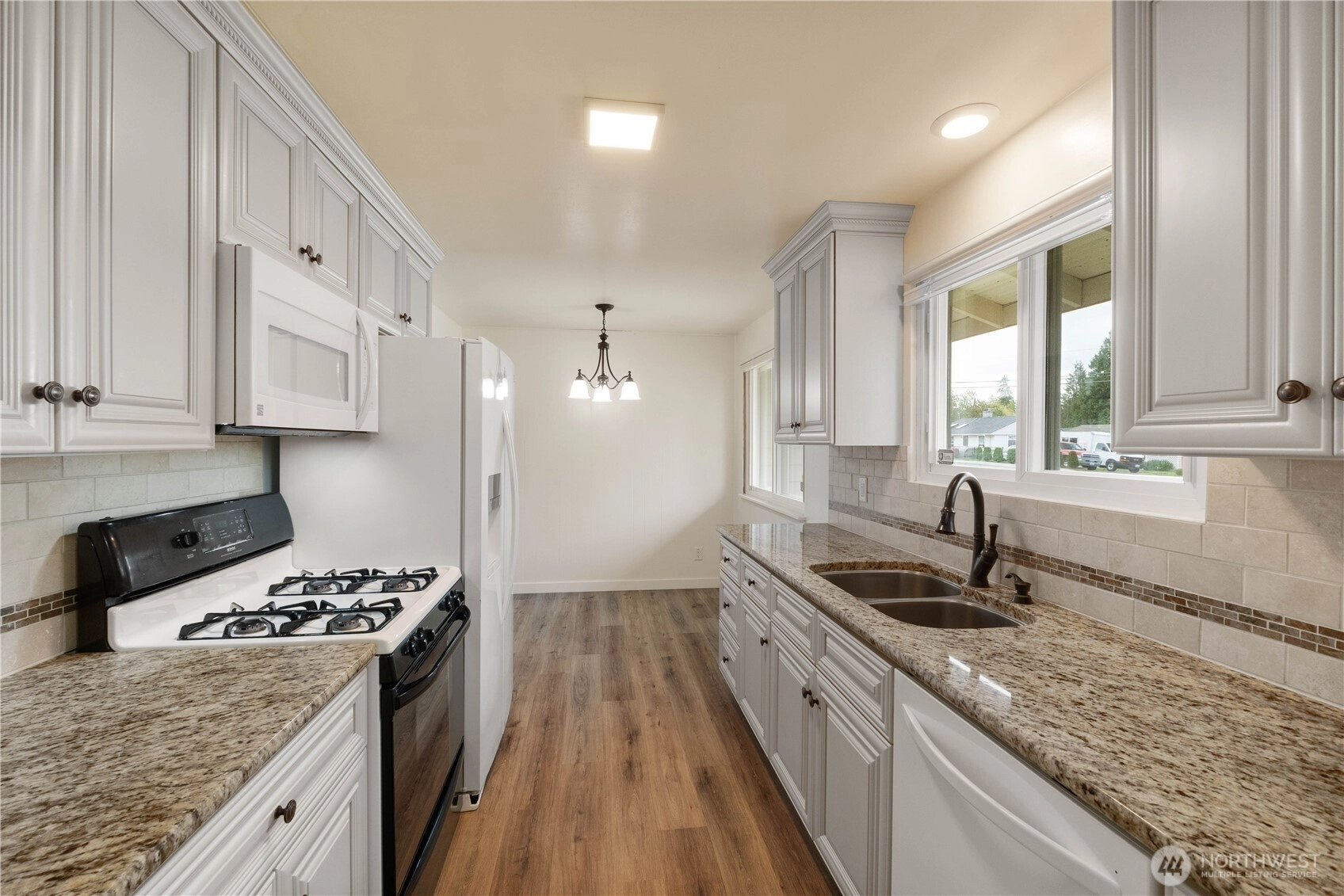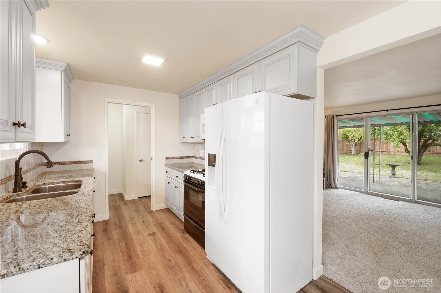 Welcome home - whether just starting or right sizing. With 4 bedrooms, plenty of space for all your needs. Primary bedroom is connected to full bath. Enjoy two living spaces including a cozy livingroom w/gas fireplace AND an large family room with plenty of room for a big screen TV and more! The updated kitchen boasts granite counters, new cabinetry, gas range/oven, luxury vinyl plank flooring. Hardwoods under carpets in original house New roof in 2019; new electrical panel in '22. Enjoy the covered patio & gas BBQ year round. The fully fenced, LEVEL, backyard boasts apple trees + room to play. Need a shop? Extra storage? Check out the insulated shop. Close to schools, Salt Water Park, shopping and, coming in December, light rail.